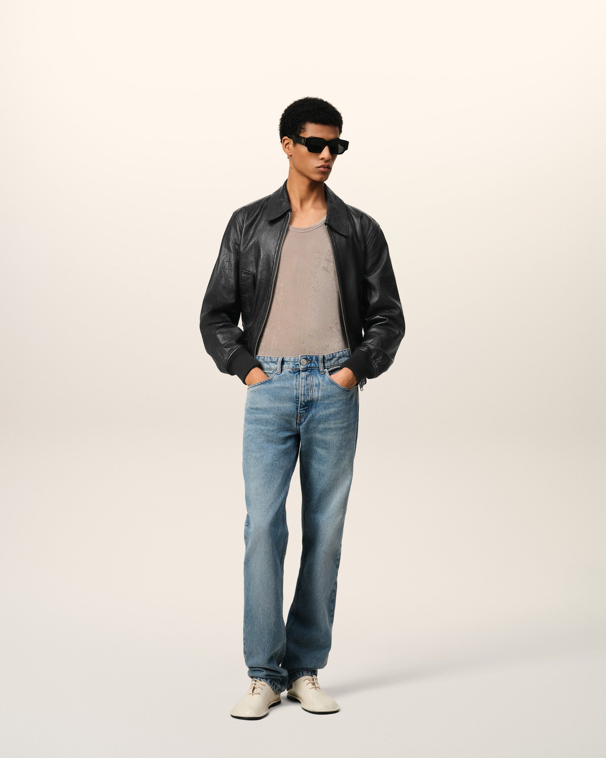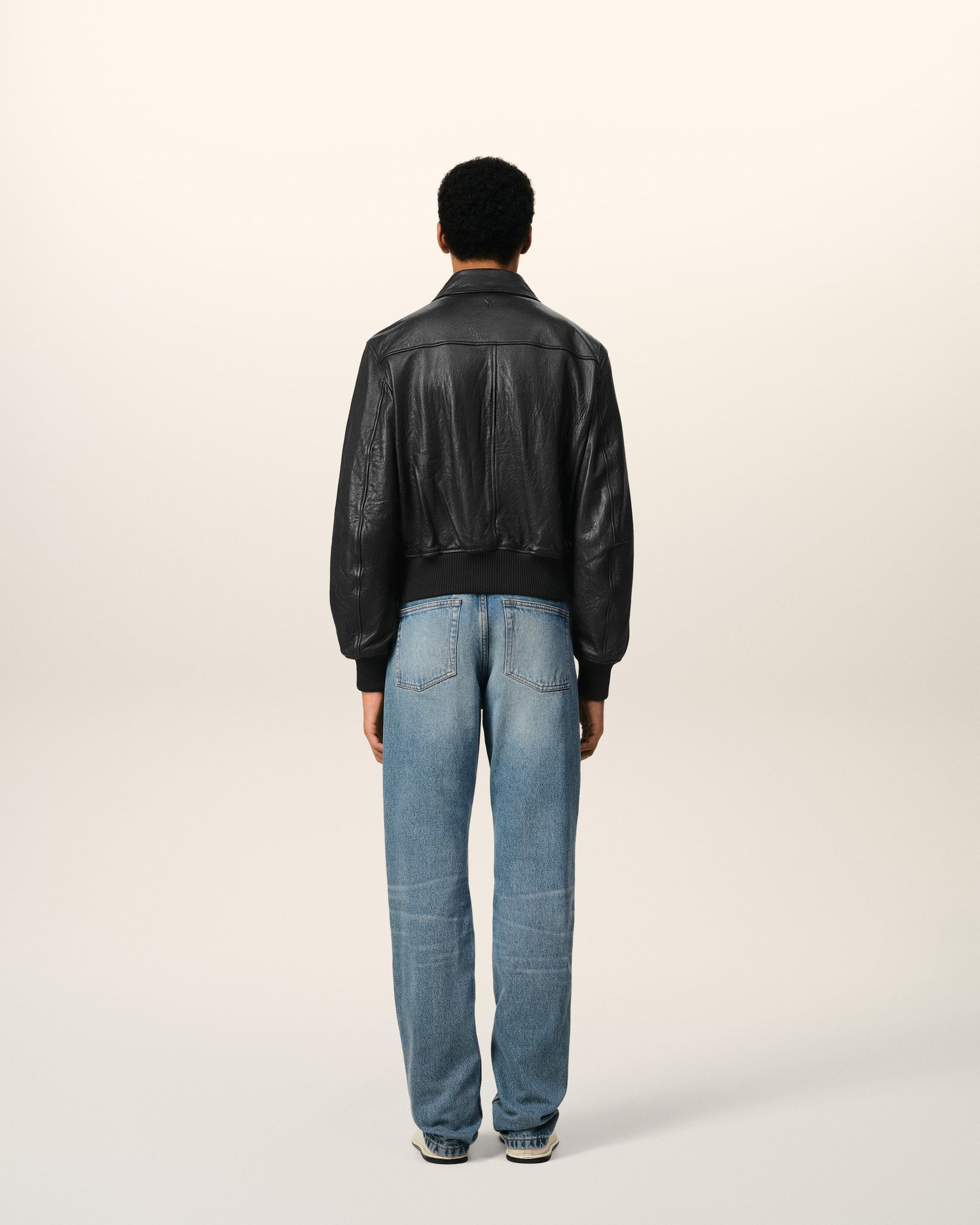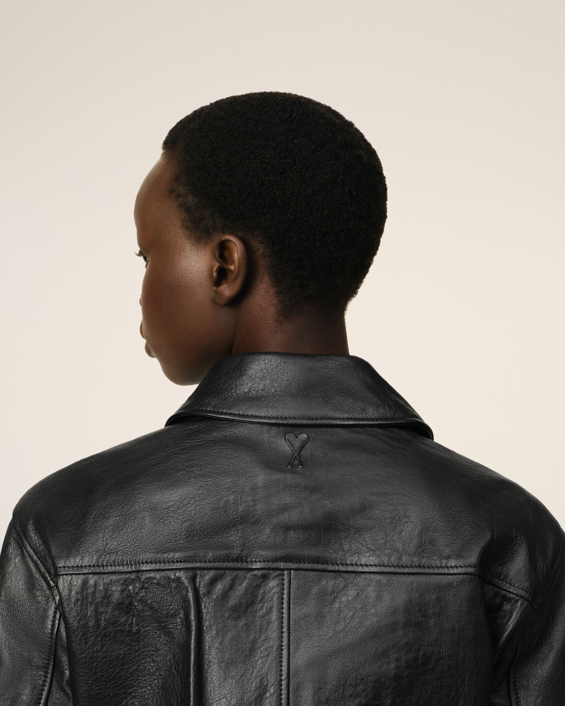 Jacket in smooth lamb leather. Unisex product Ami de Coeur embossed logo on the back under collar 59 cm center back length (size M) 55 cm center back length (size XS) Fully lined Silver metal double zipper with "Ami" and Ami de Coeur engraved pullers Side raglan pockets with invisible snap buttons engraved "Ami Paris" Made in Turkey (with love) REF : UJK038.LH0044.001