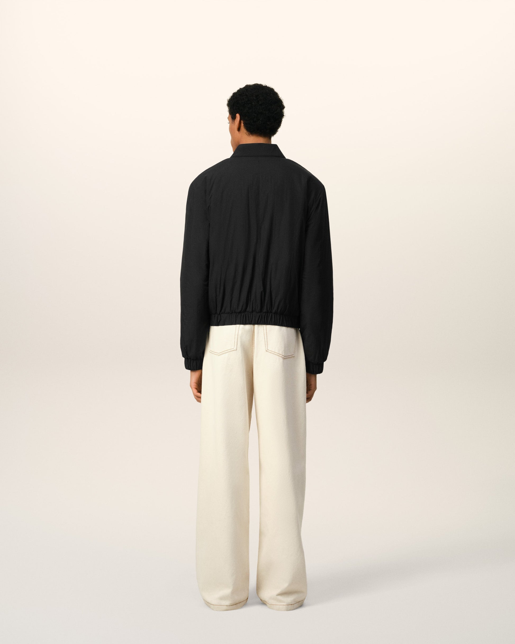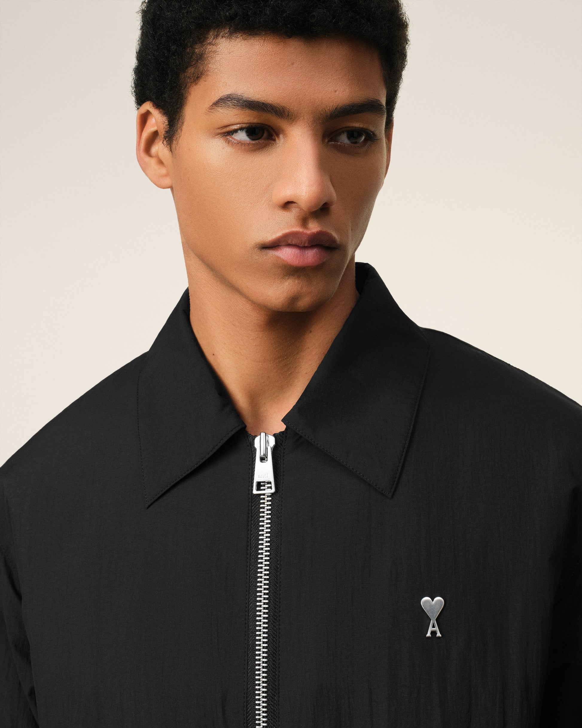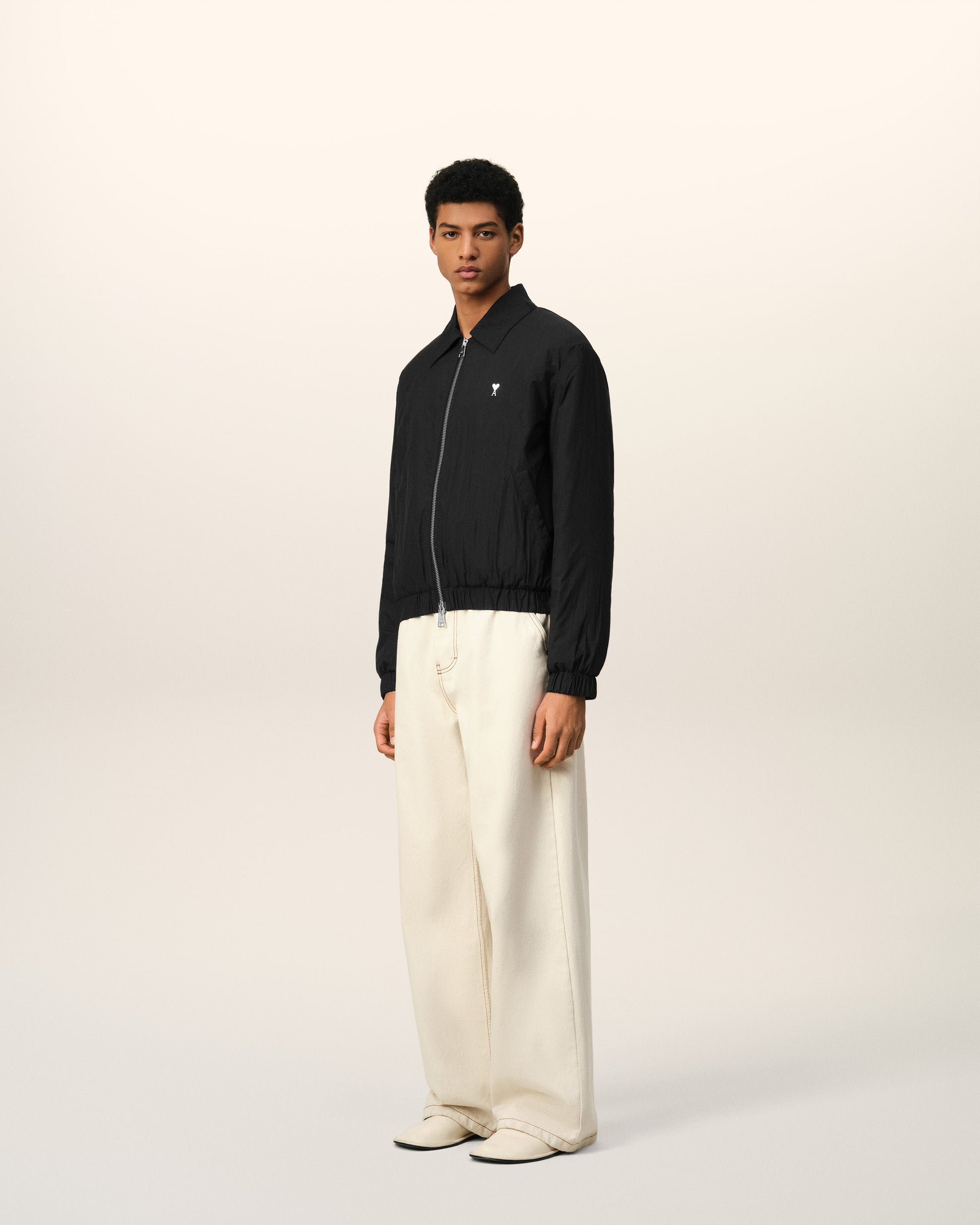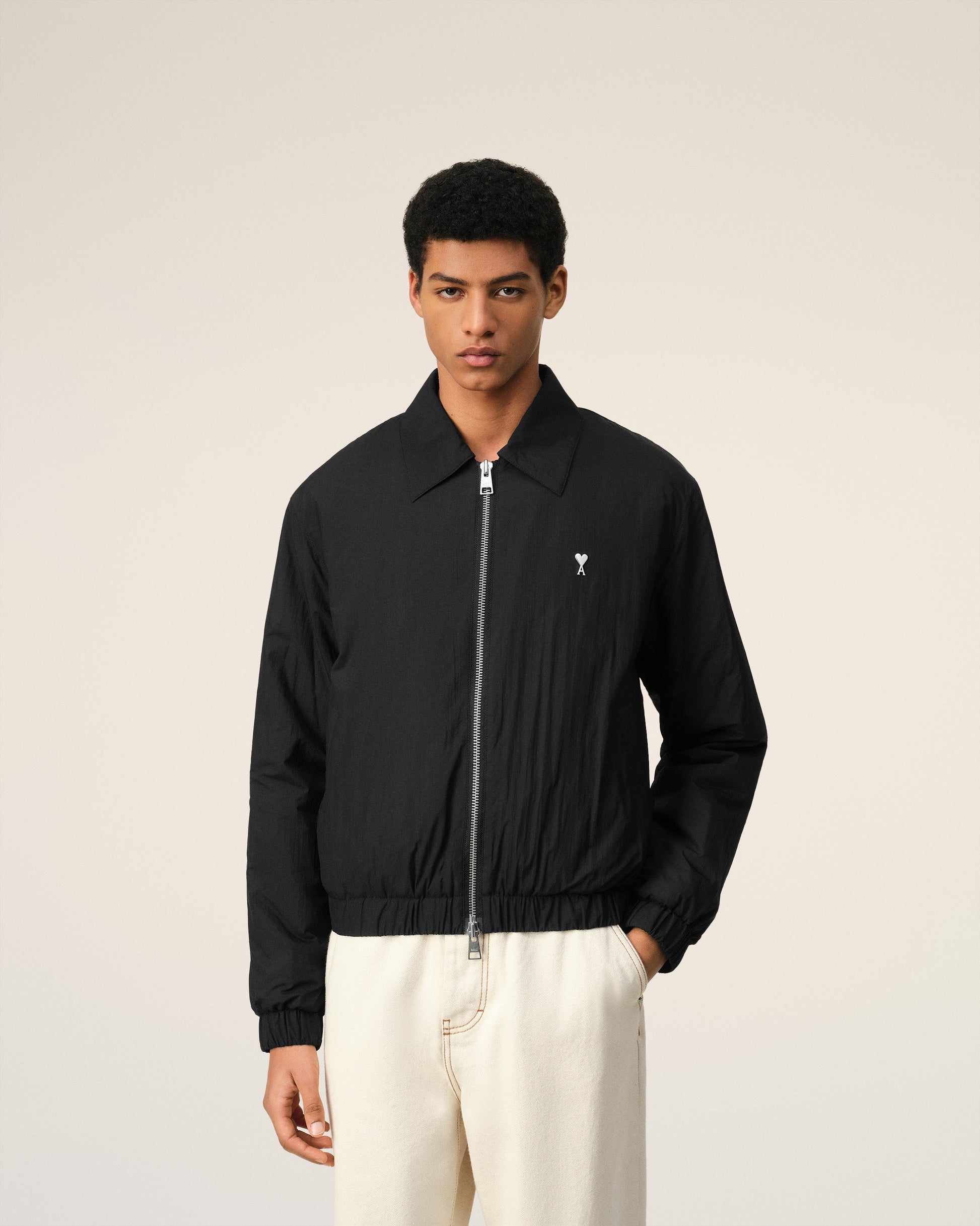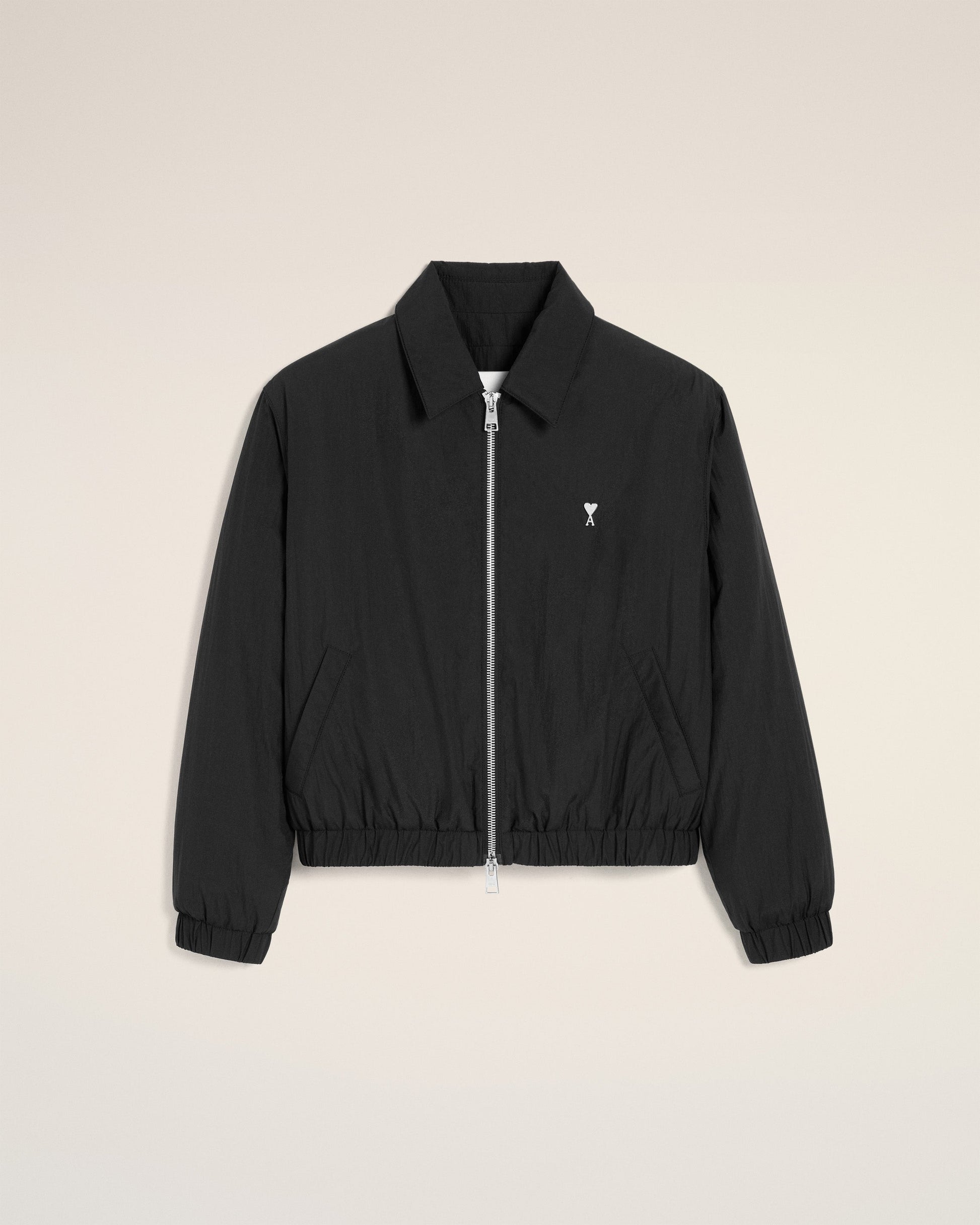 Zipped jacket in technical canvas. 62 cm center back length (size M) Lined Lightly padded Water-repellent fabric Ami de Coeur metal rivet on the chest Nickel double metal zipper with "ami" engraved pullers Welt pockets with "ami" engraved nickel snap buttons Elasticated cuffs and waist Made in Romania (with love) REF : HJK034.PA0009.001