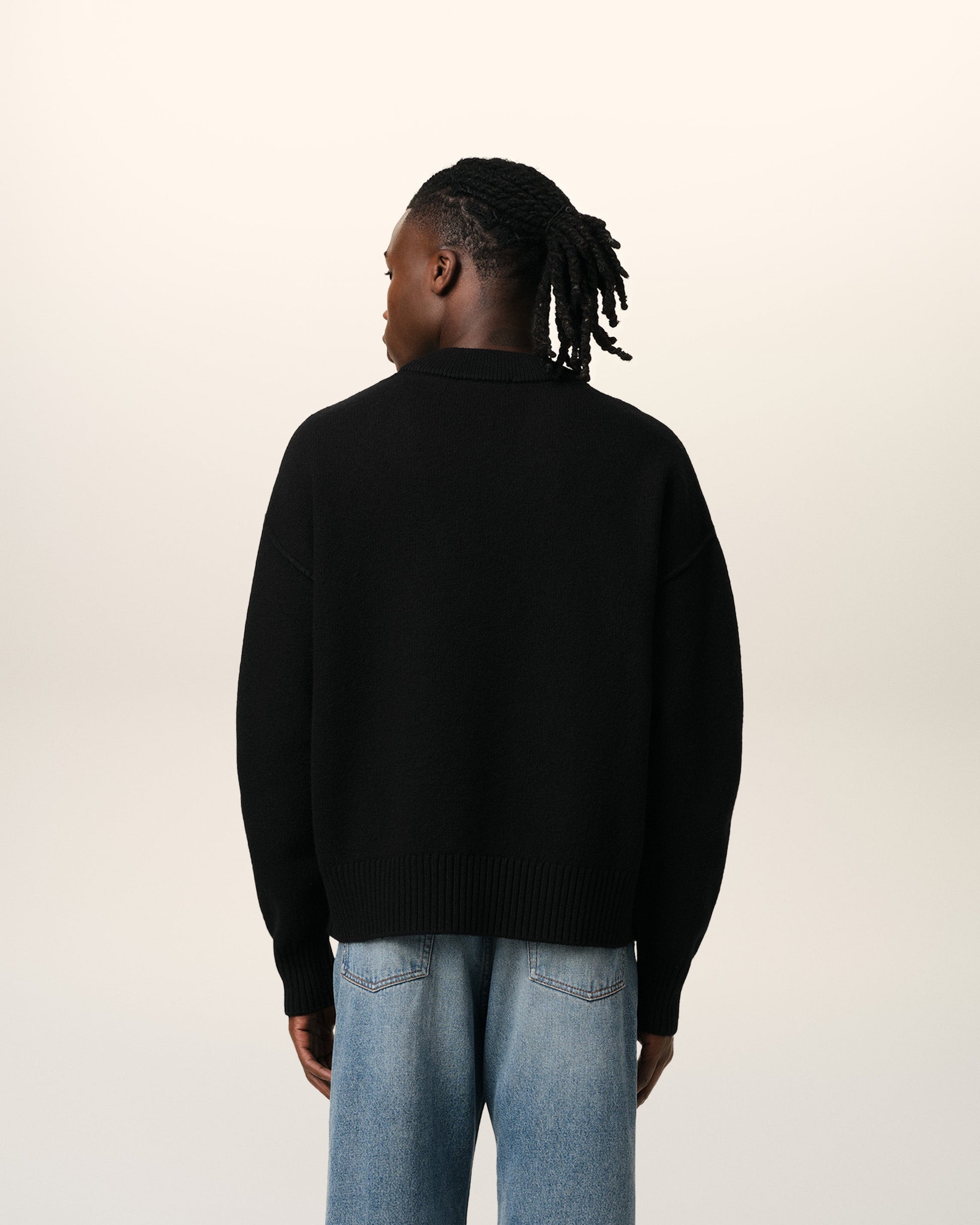 Cardigan in felted merino wool. Unisex product Jersey stitch Intarsia-knitted red Ami de Coeur on the chest Inside out seams 64 cm center back length (size M) 58 cm center back length (size XS) Made in Portugal (with love) REF: BFUKC006.018.009