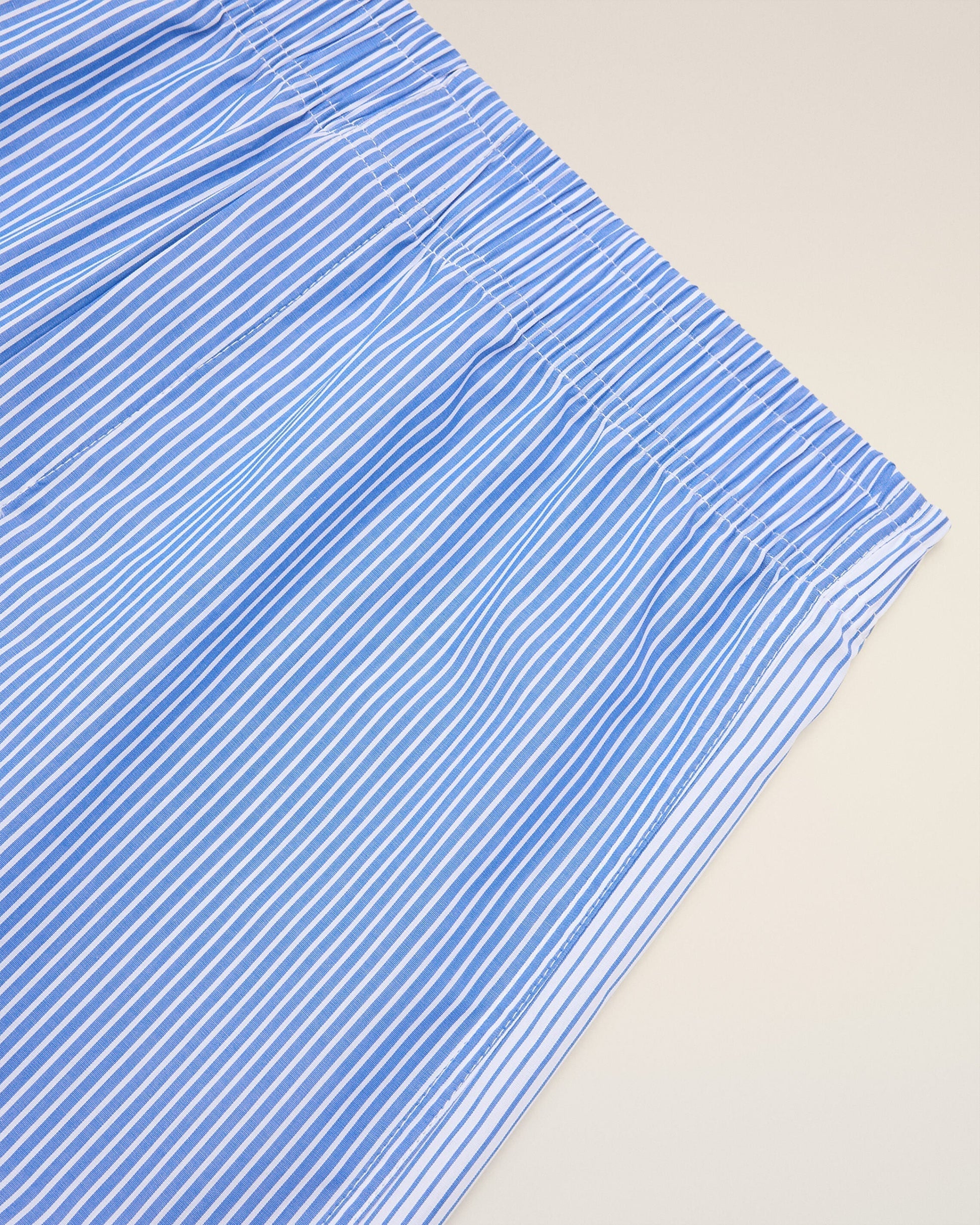 Ami de Coeur boxer in striped cotton poplin. Mix and match of stripes poplin Elasticated waist Mother-of-pearl button Off-white Ami de Coeur embroidery Made in Portugal (with love) REF: HUN009.CO0112.4521