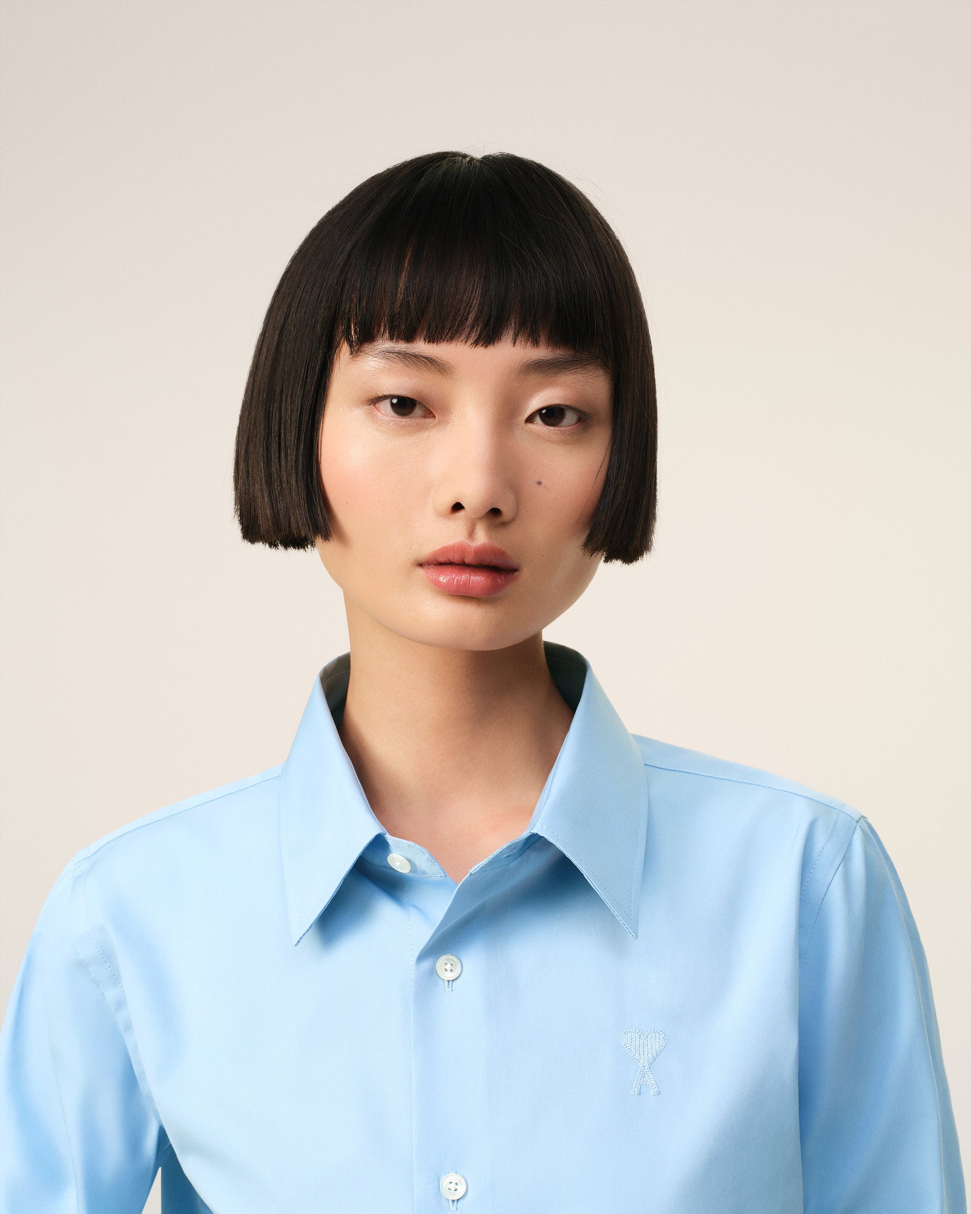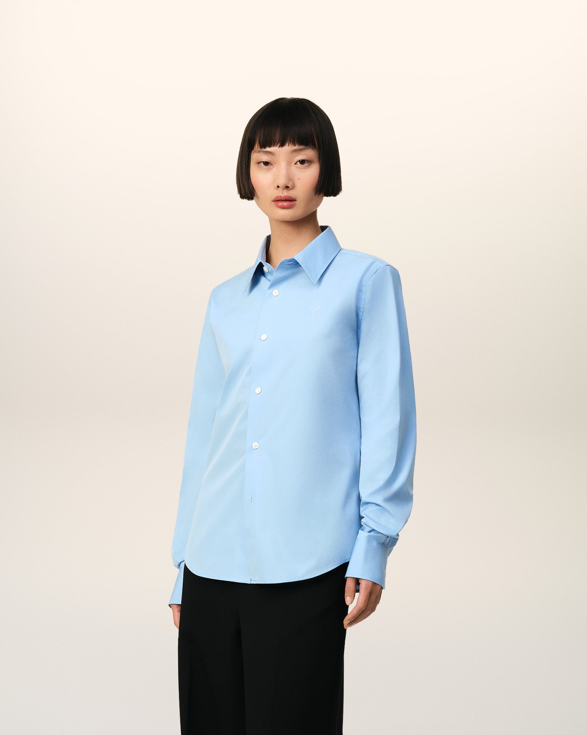 Tonal Ami de Coeur shirt in cotton poplin. Classic fit 66 cm center back length (size 36) Tonal Ami de Coeur chest embroidery Classic shirt collar Buttoned tab on front and cuffs Mother-of-pearl buttons Made in Bulgaria (with love) REF : FSH061.CO0063.484
