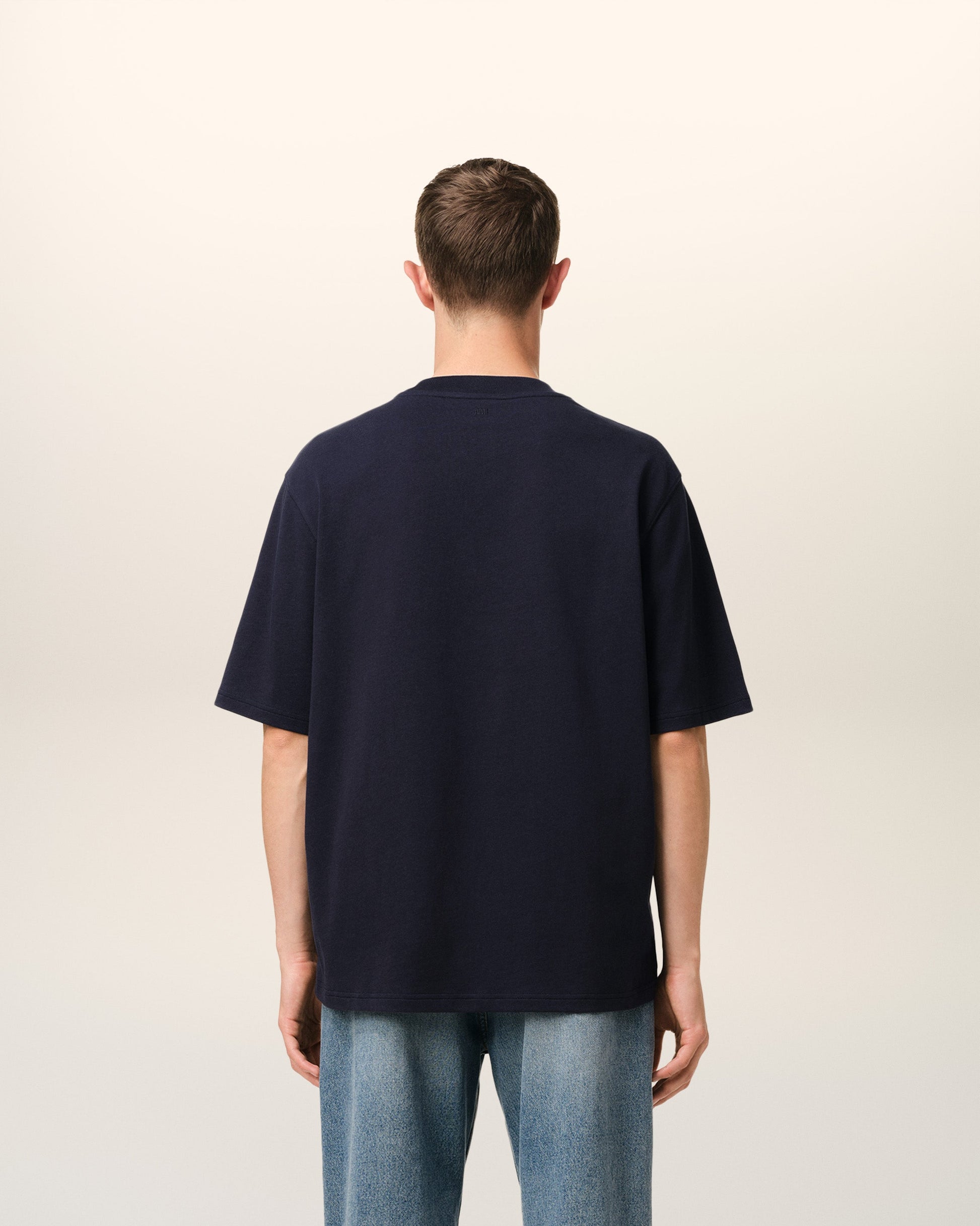 Ami de Coeur t-shirt in organic cotton jersey. Boxy fit 70 cm center back length (size M) Tonal Ami de Coeur knitted patch Tonal "AMI" embroidery under back neckline Made in Portugal (with love) REF: HTS055.726.4011