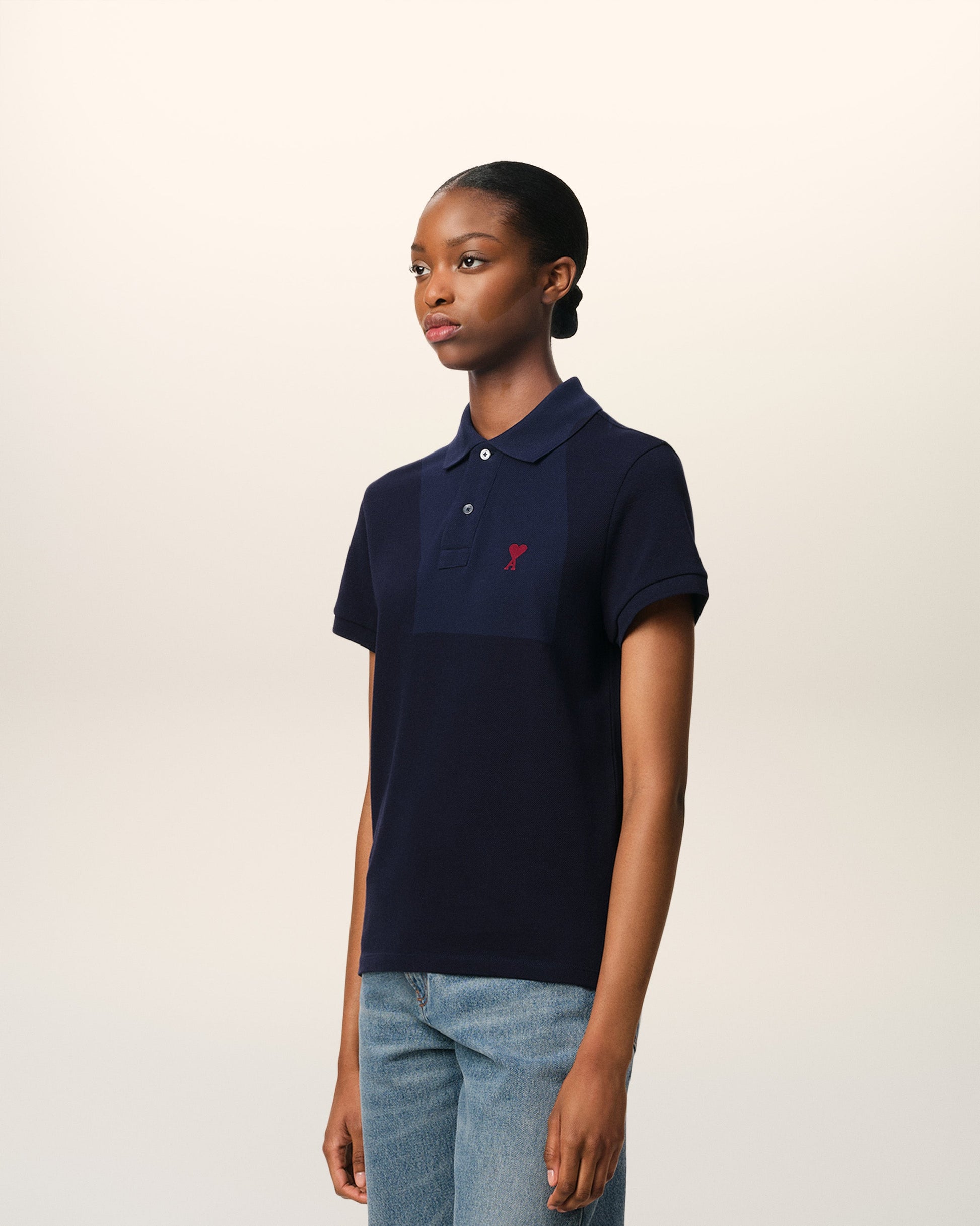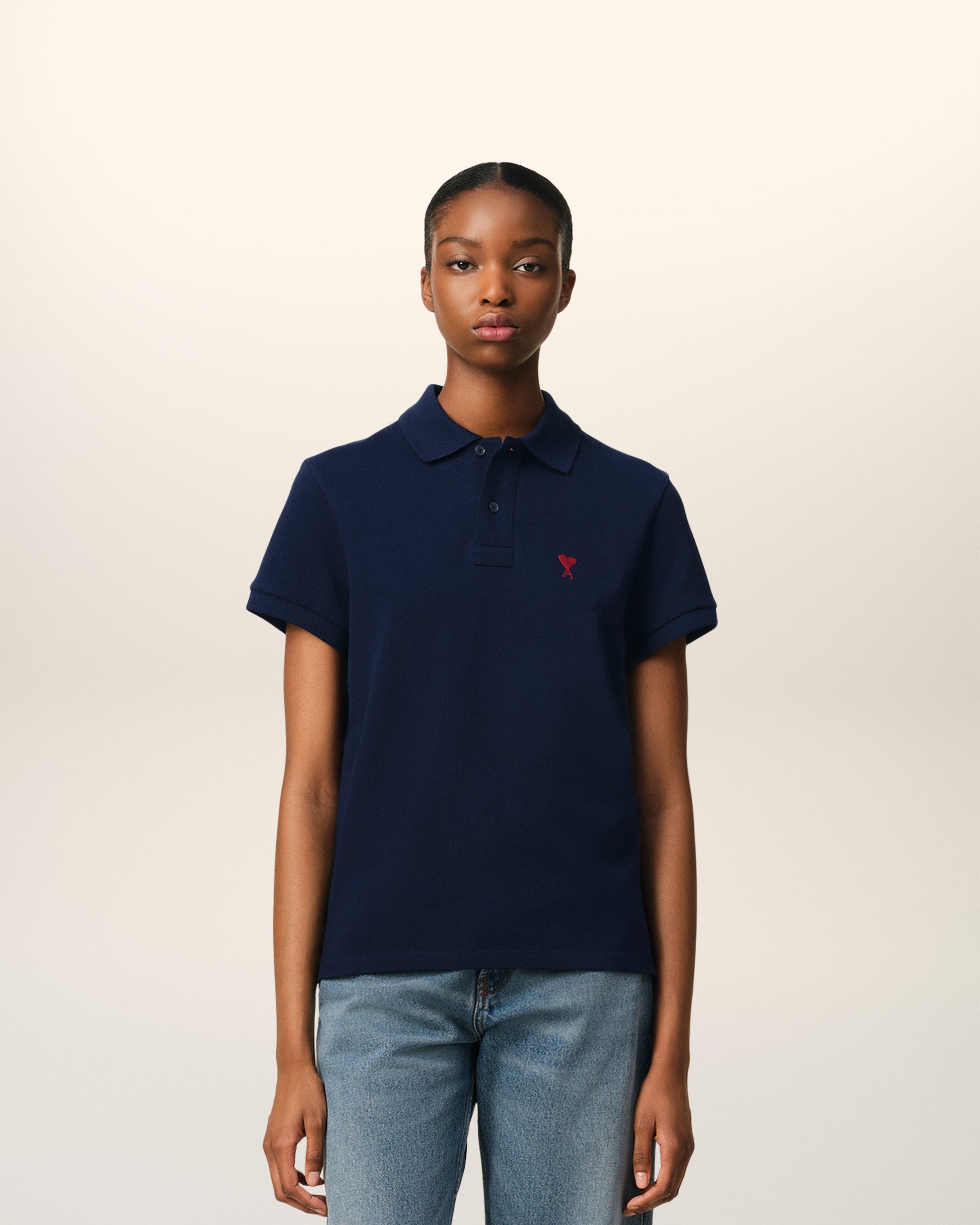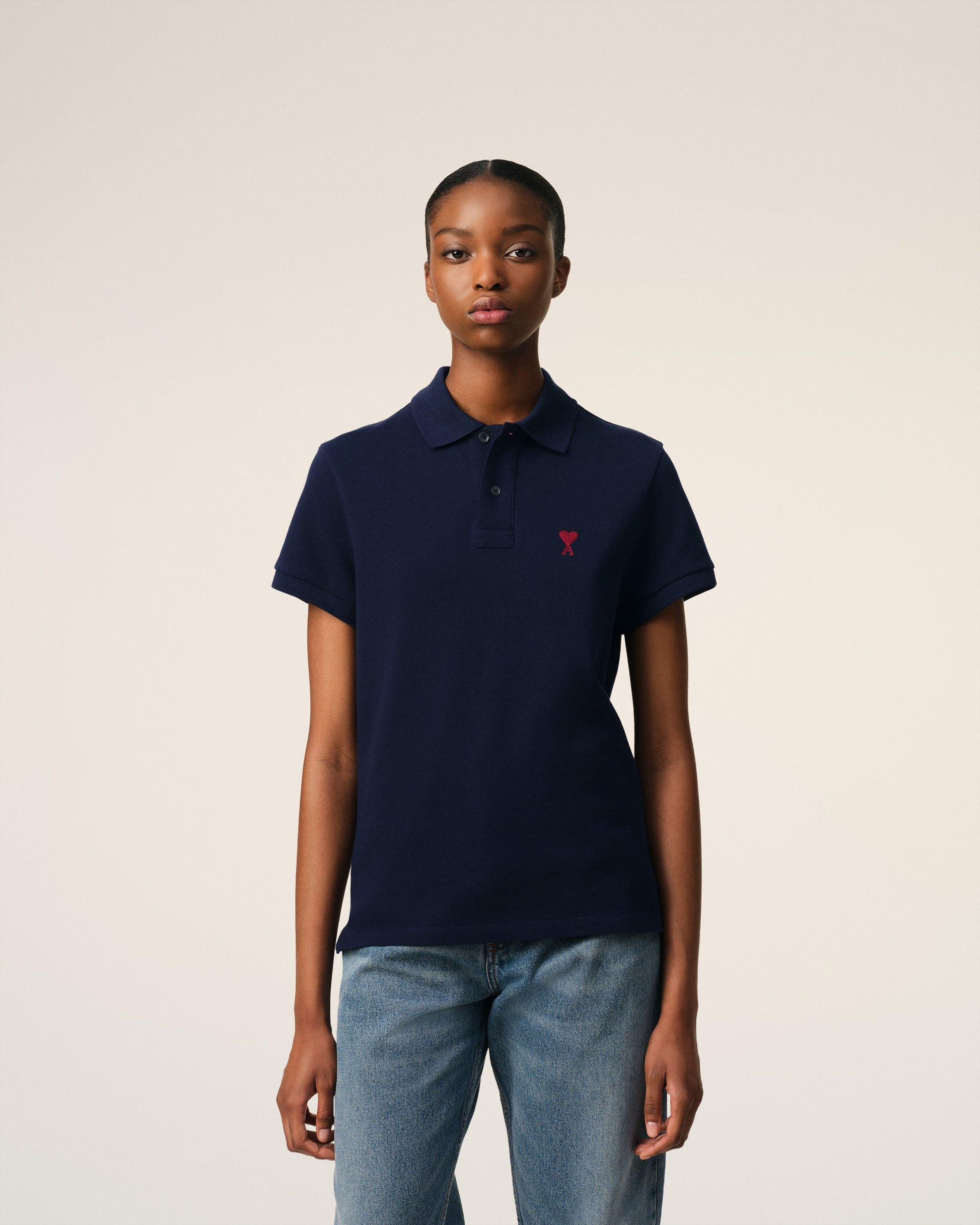 Ami de Coeur polo shirt in organic cotton pique. Unisex product Classic fit Classic collar Short sleeves Red Ami de Coeur chest embroidery Tonal Ami embroidery under back neckline 63,5 cm center back length (size XS) 67,5 cm center back length (size M) Made in Portugal (with love) REF: BFUPL001.760.430