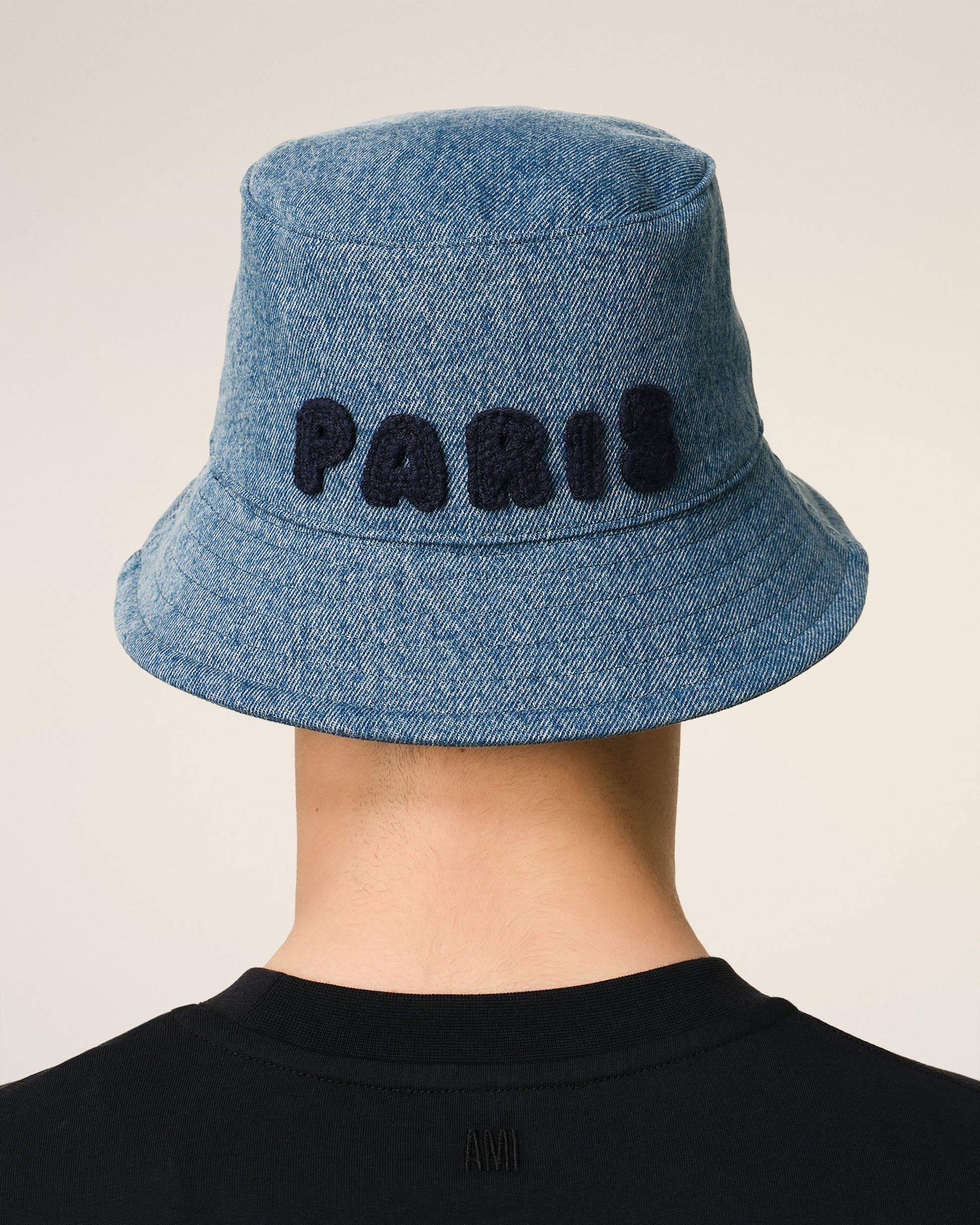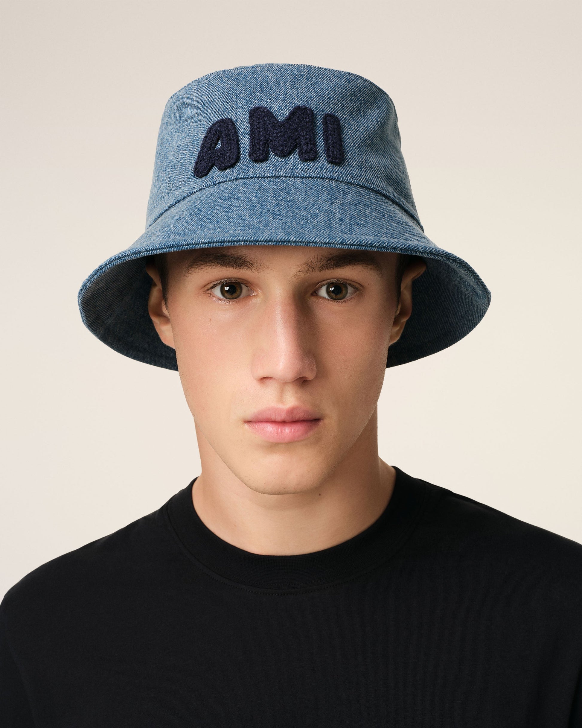 Bucket hat in used indigo denim. "Ami Paris" knitted patch Cotton lining Made in Bulgaria (with love) REF: UHA262.DE0046.480