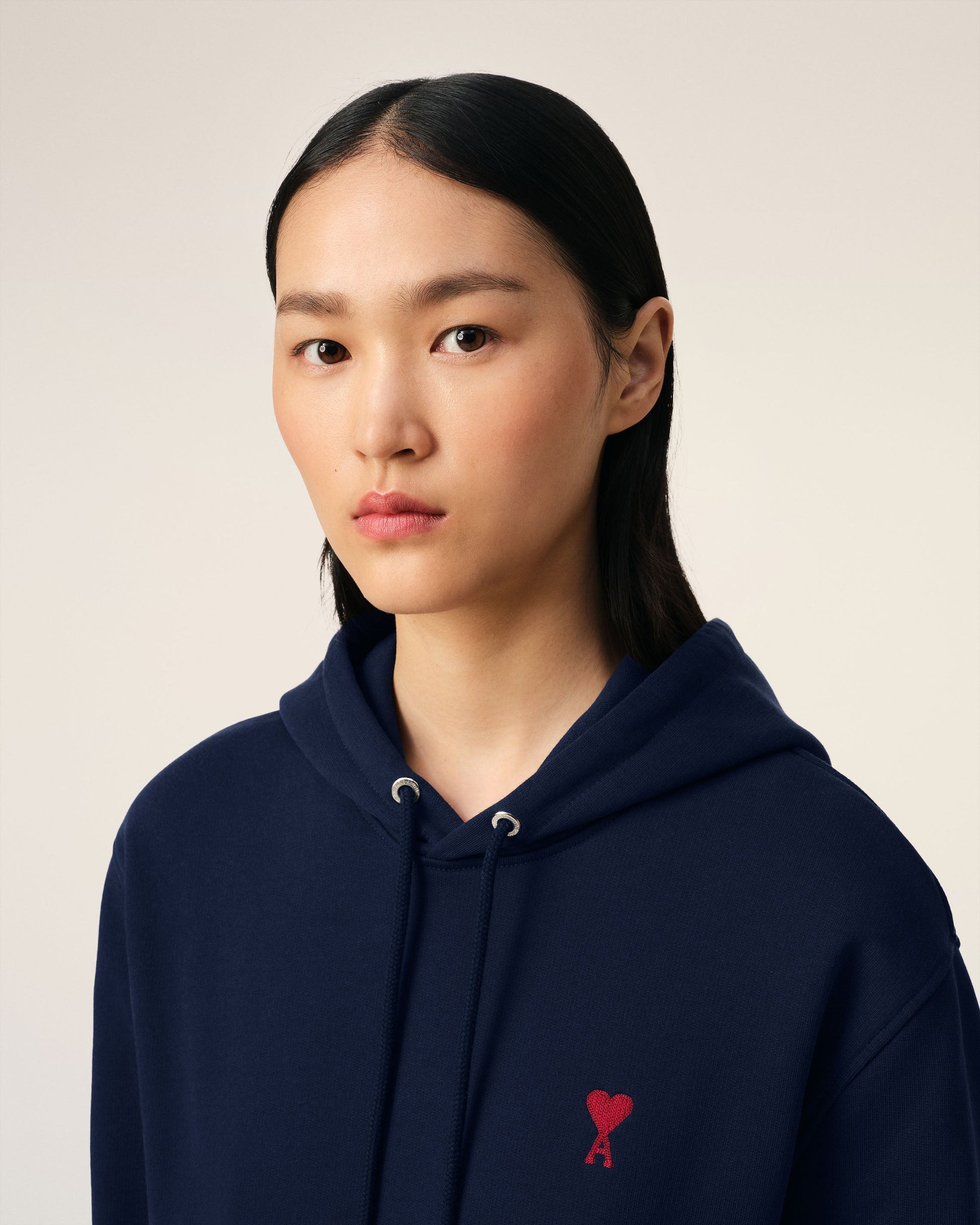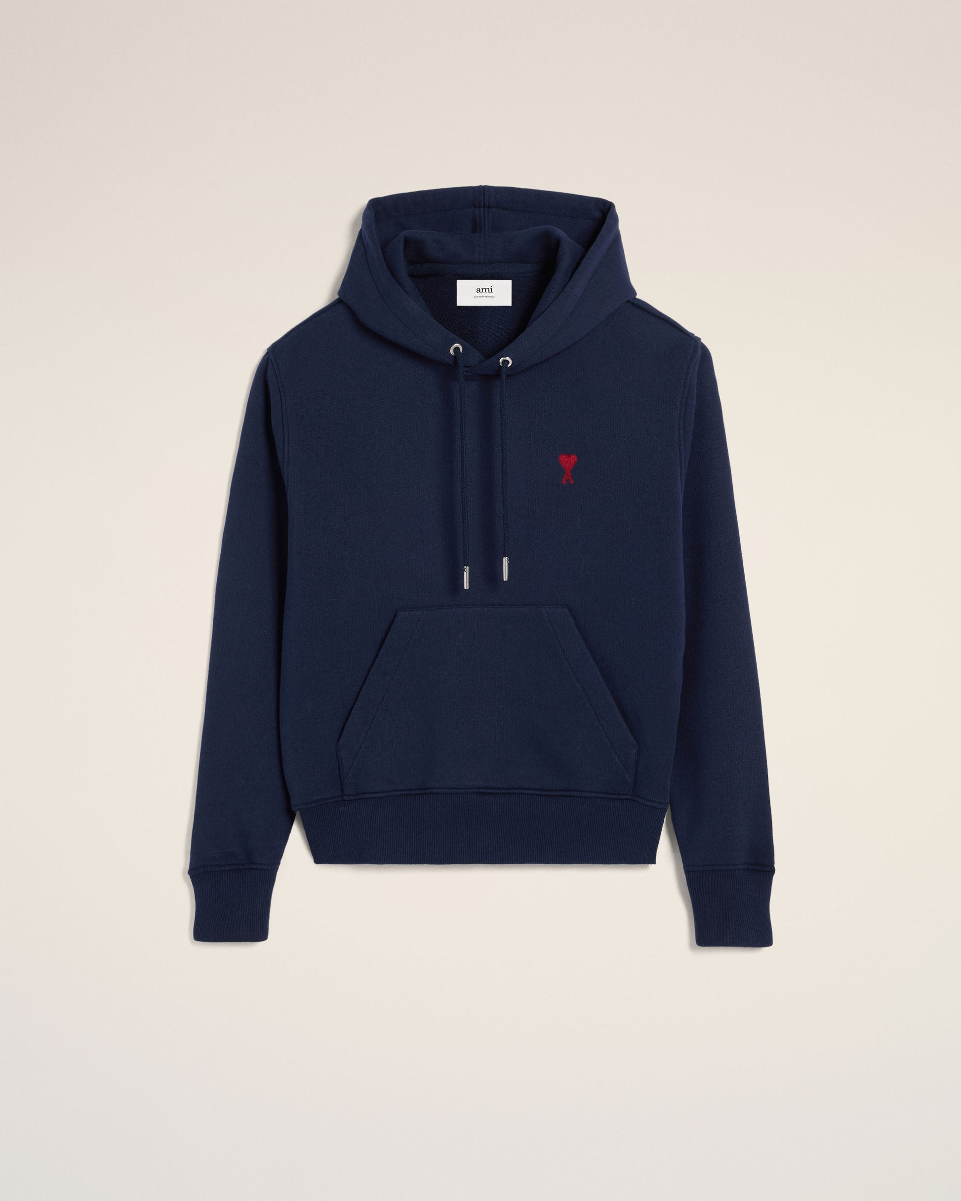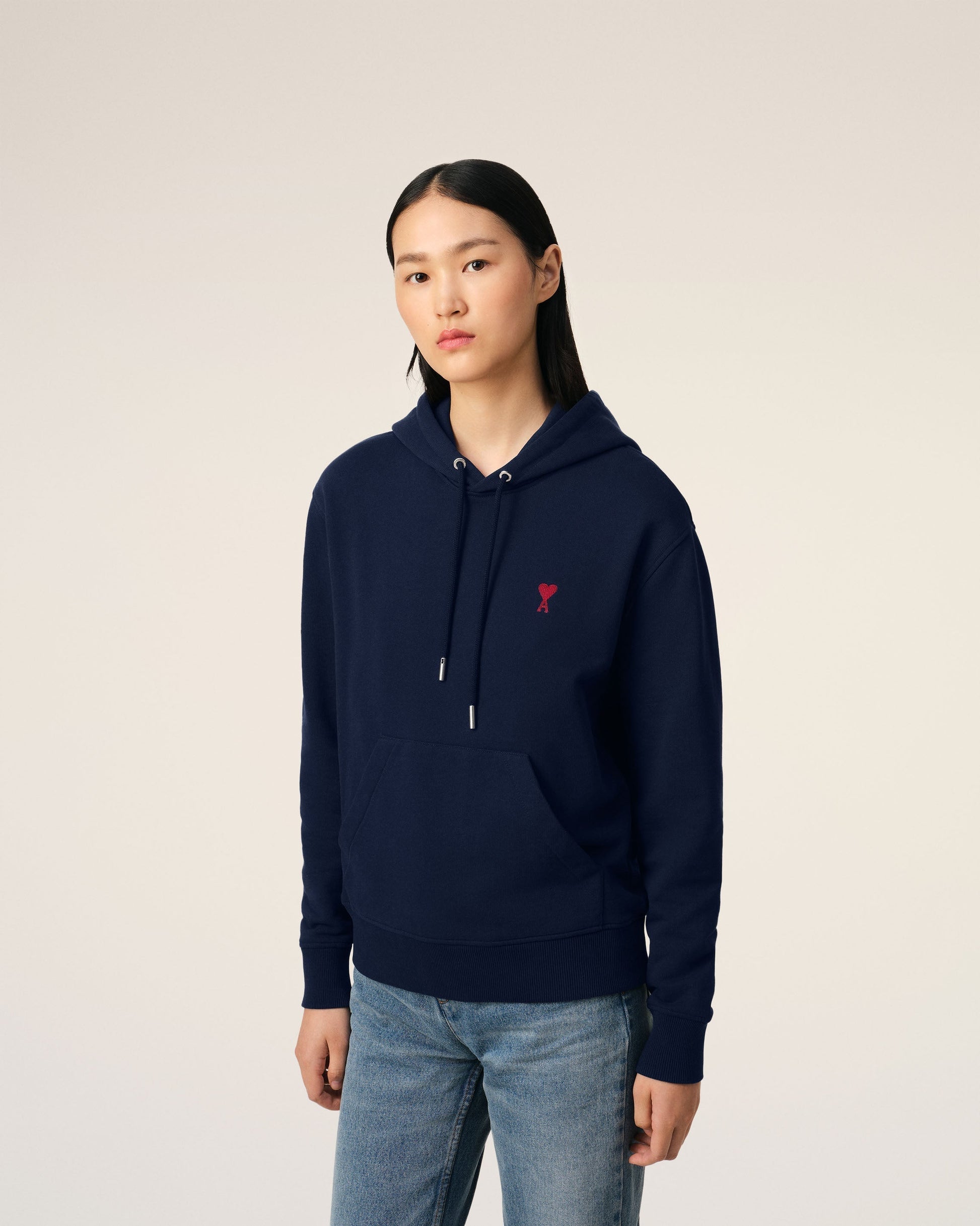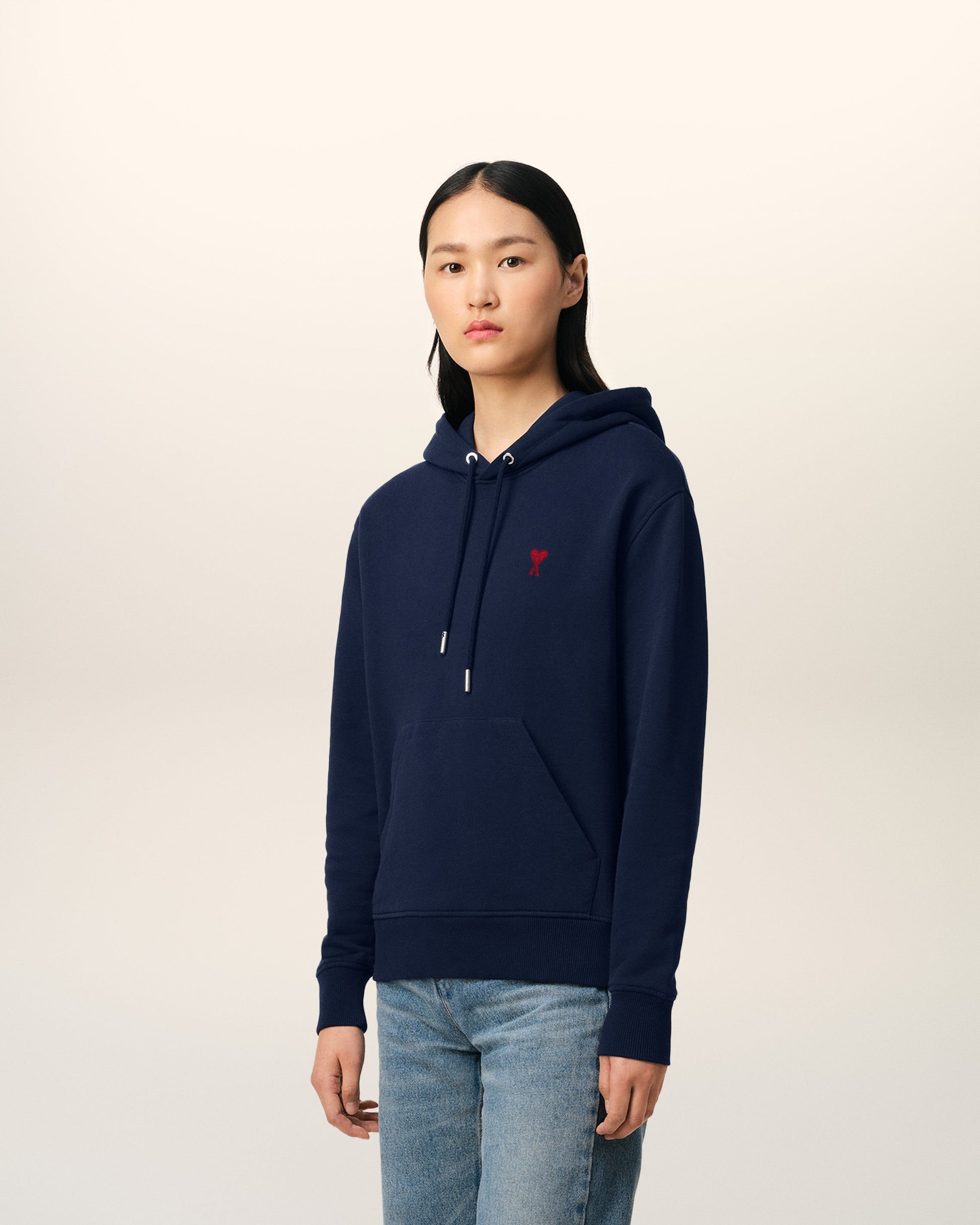 Ami de Coeur hoodie in loopback organic cotton fleece. Unisex Product Classic fit Red Ami de Coeur chest embroidery Tonal "ami" embroidery under back neckline Nickel color metal ends and engraved eyelets 60,5 cm center back length (size XS) 68,5 cm center back length (size M) Made in Portugal (with love) REF: BFUSW235.730.430