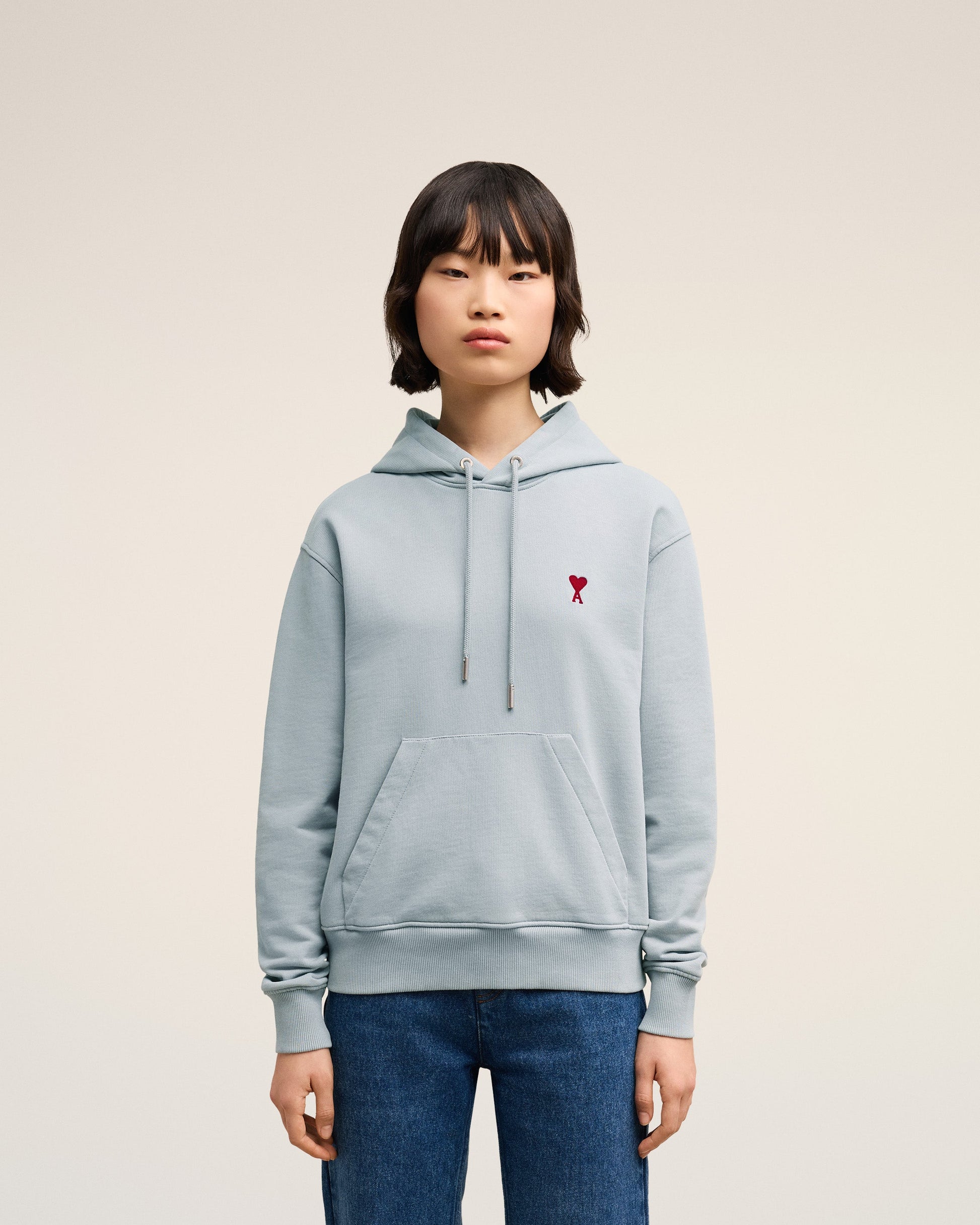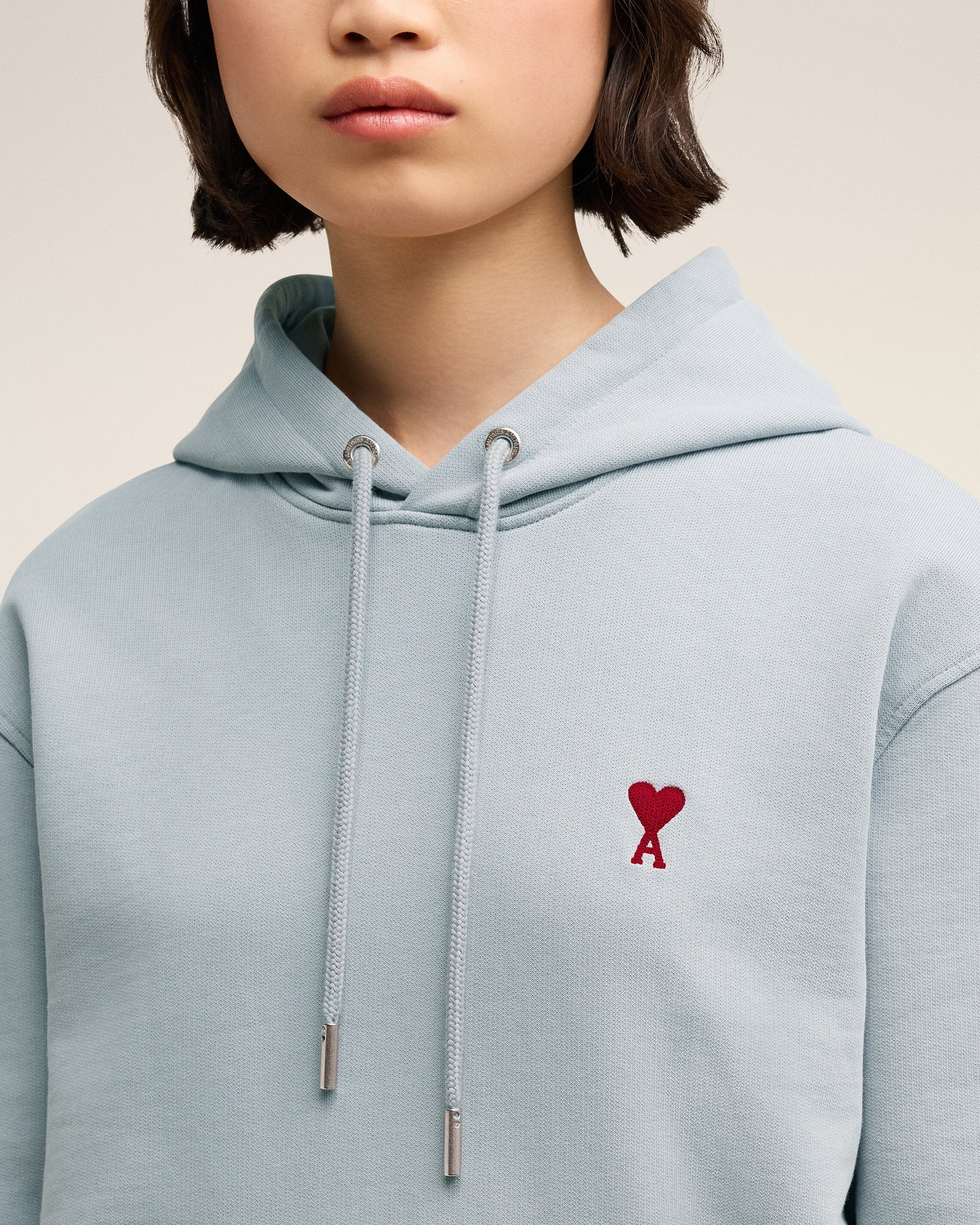 Ami de Coeur hoodie in loopback organic cotton fleece. Classic fit Unisex Product 61 cm center back length (Size XS) 69 cm center back length (Size M) Red Ami de Coeur chest embroidery Tonal "AMI" embroidery under back neckline Nickel color metal ends and "ami" engraved eyelets Made in Portugal (with love) REF : USW235.730.4012
