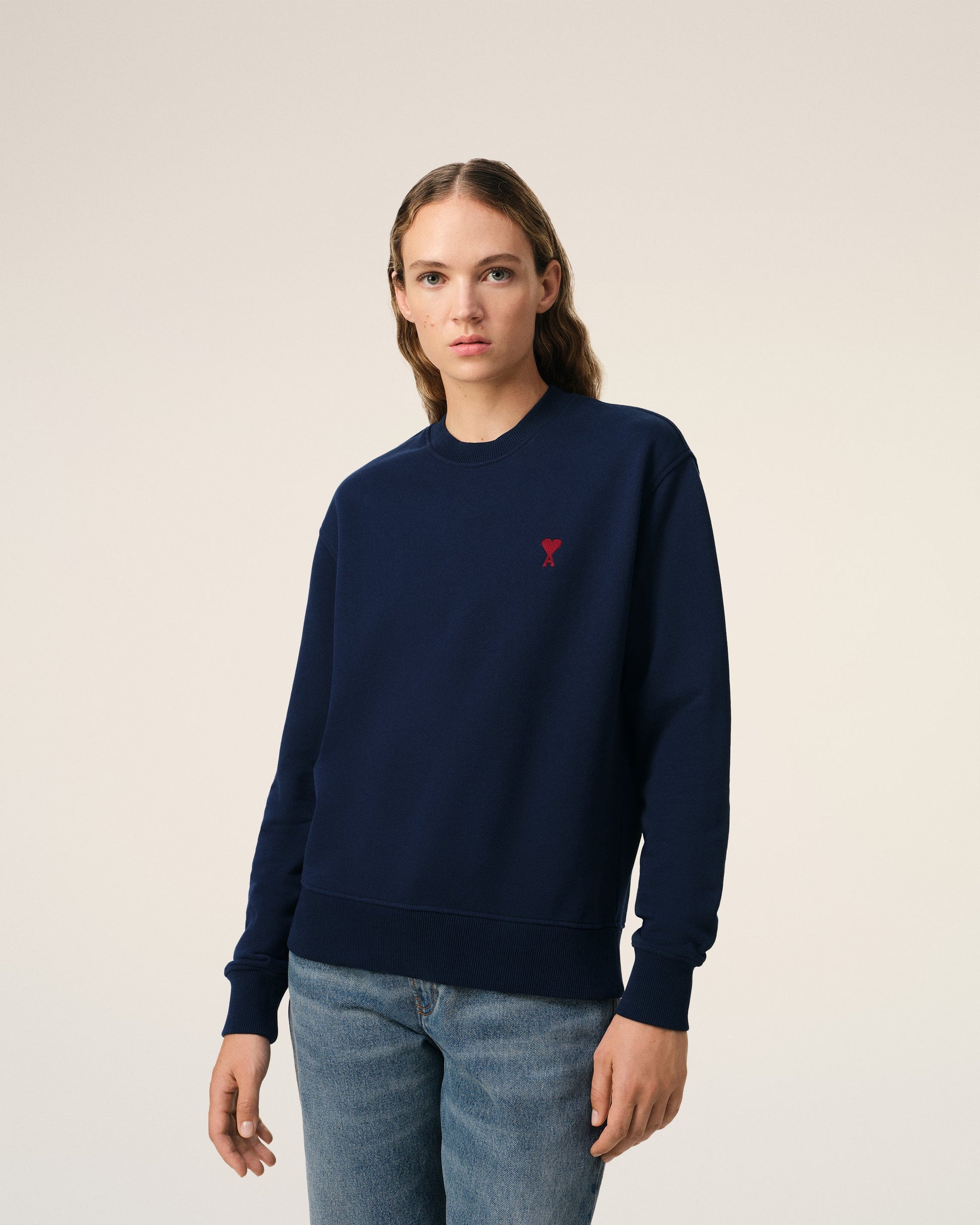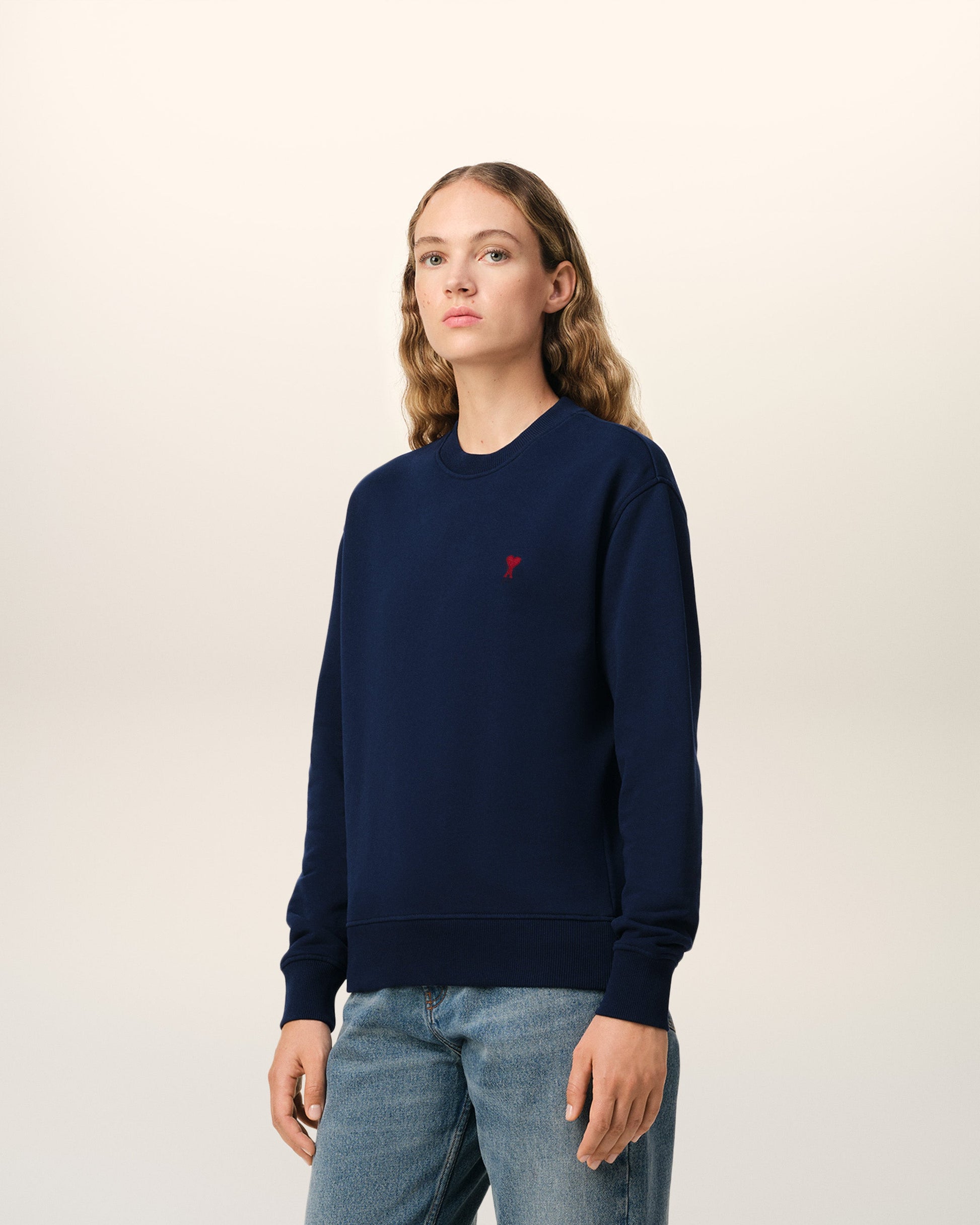Ami de Coeur sweatshirt in loopback organic cotton fleece. Unisex product Classic fit Red Ami de Coeur chest embroidery Tonal "ami" embroidery under back neckline 60,5 cm center back length (size XS) 68,5 cm center back length (size M) Made in Portugal (with love) REF: BFUSW035.730.430
