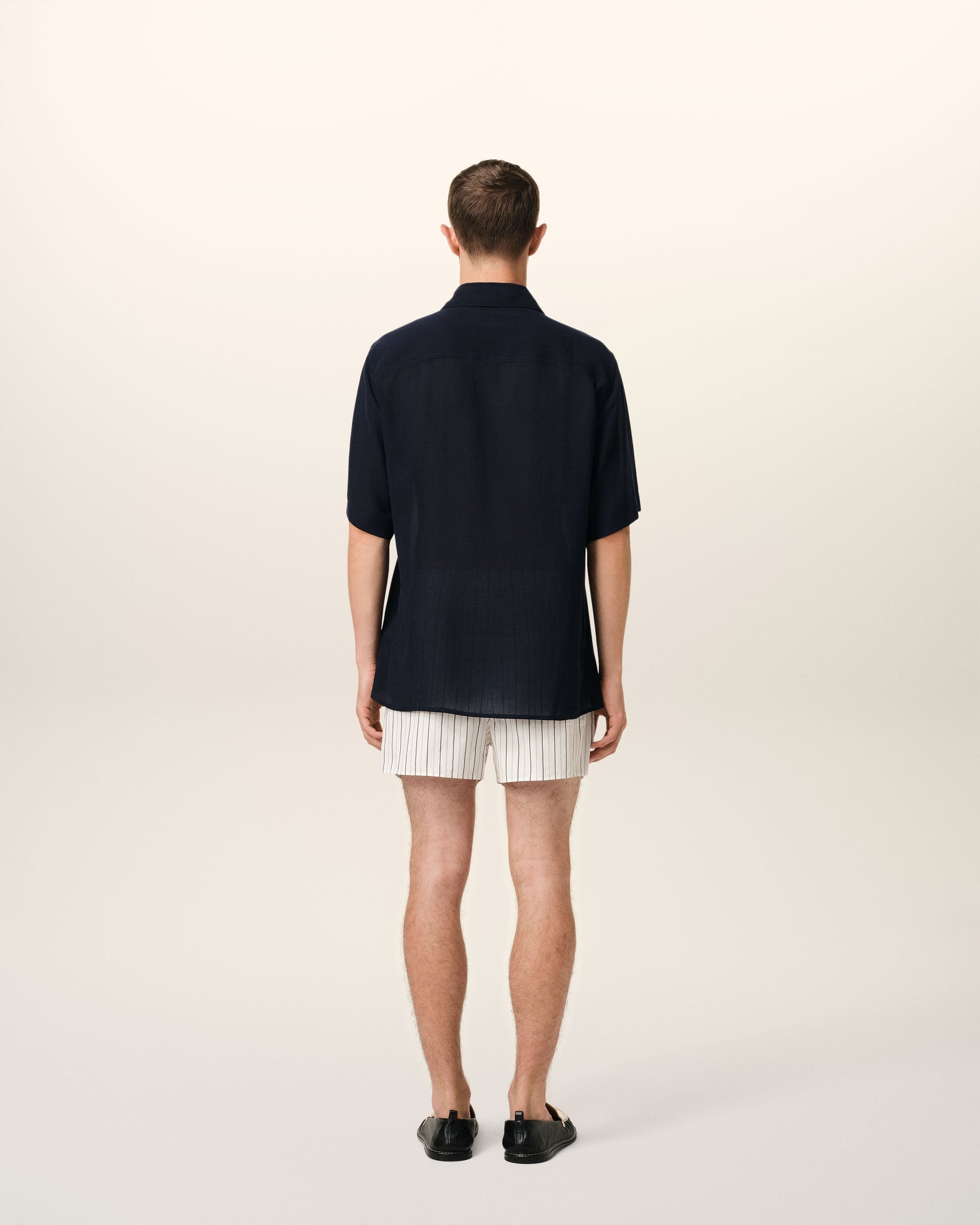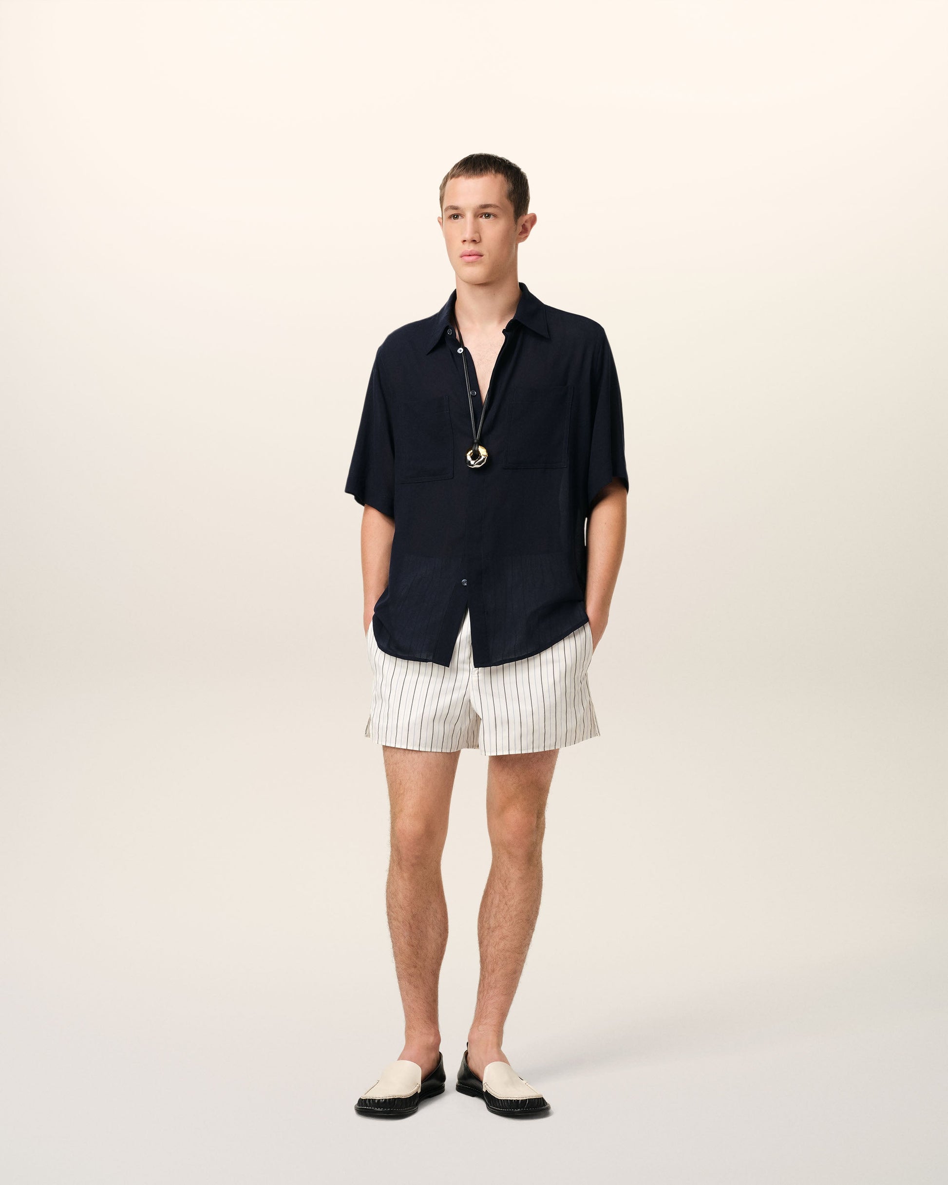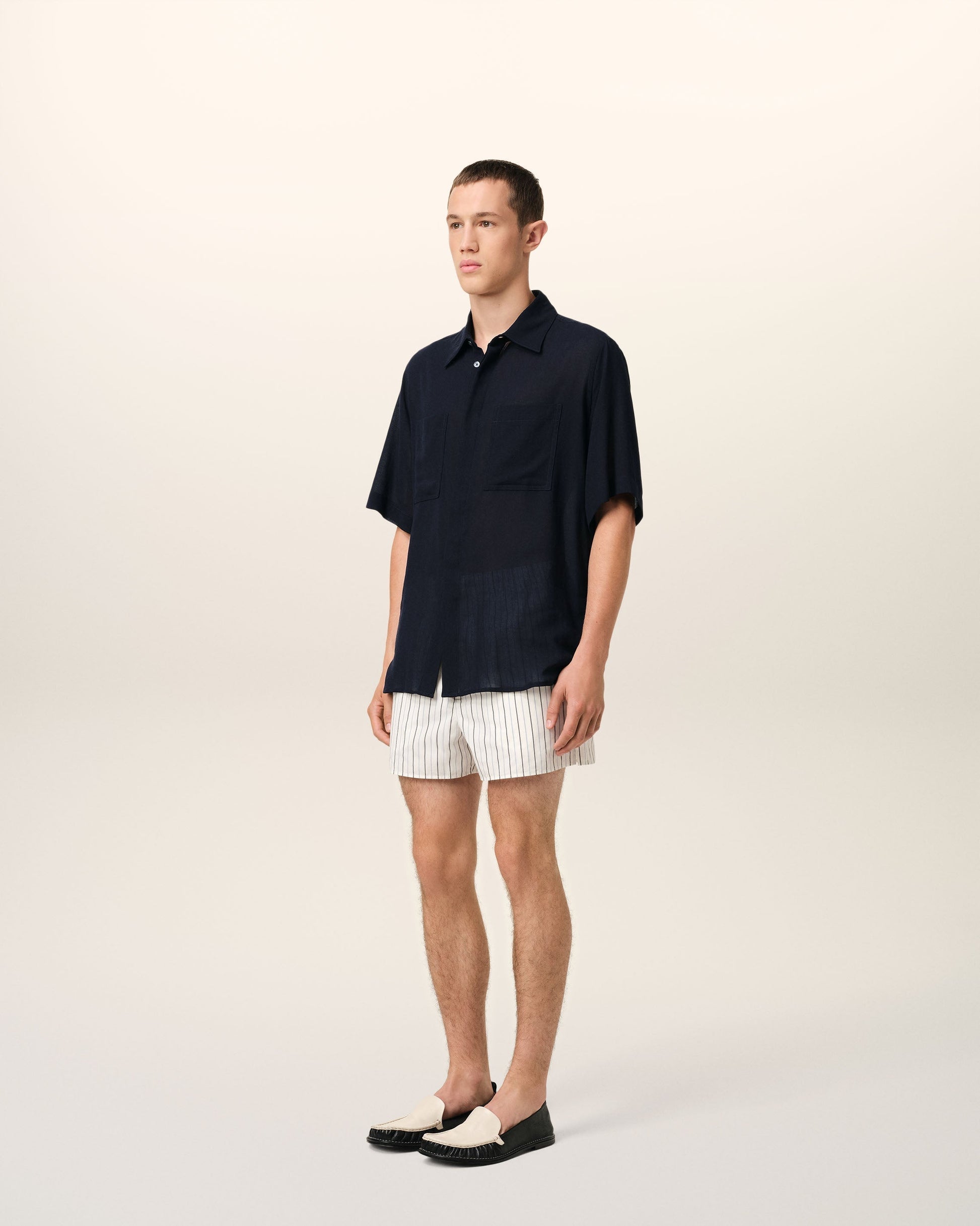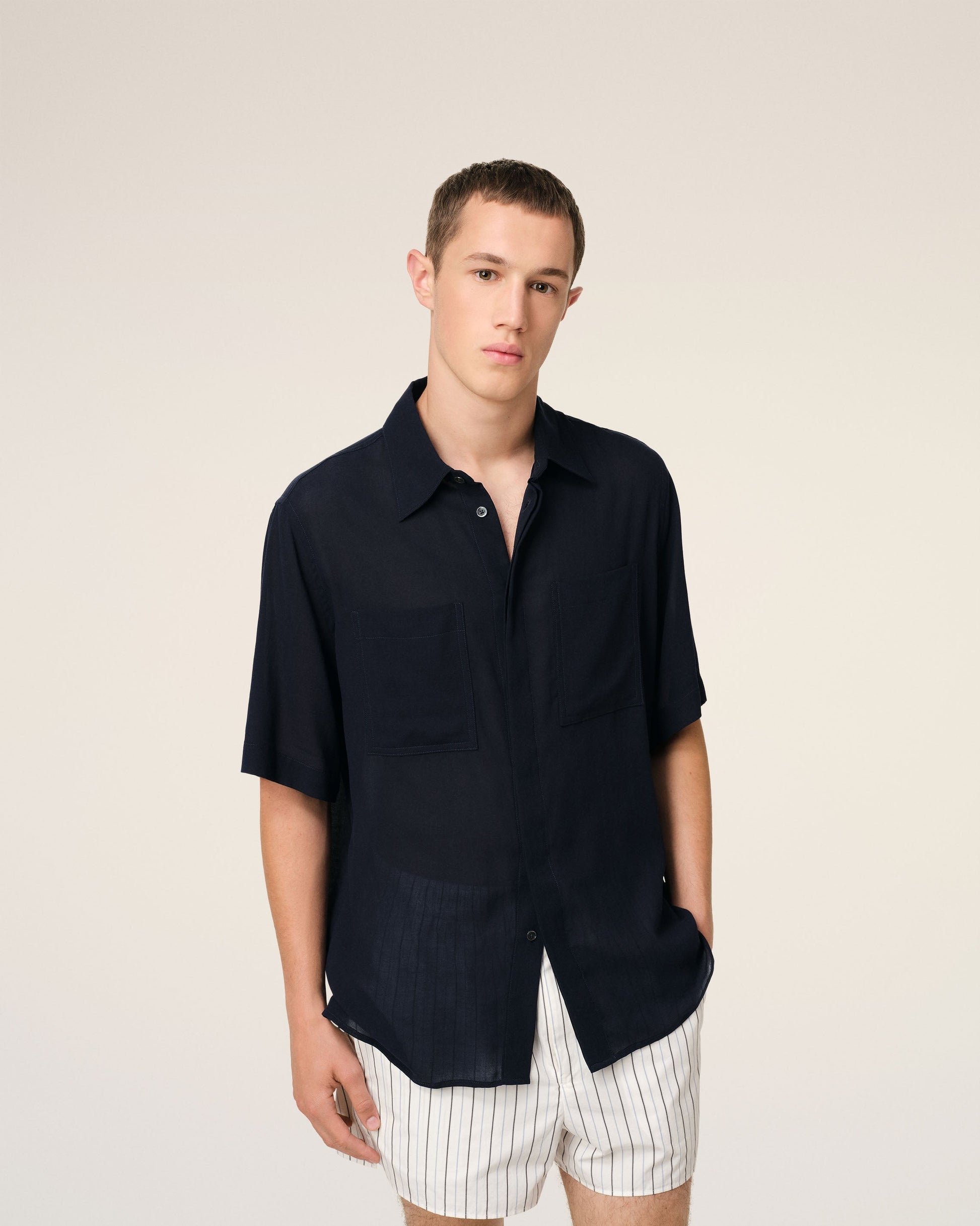 Short sleeve classic shirt with chest pocket in cotton veil. Classic fit 74 cm center back length (size M) Patch pockets Classic collar Hidden button tab Mother-of-pearl buttons Made in Portugal (with love) REF: HSH252.CO0098.4011