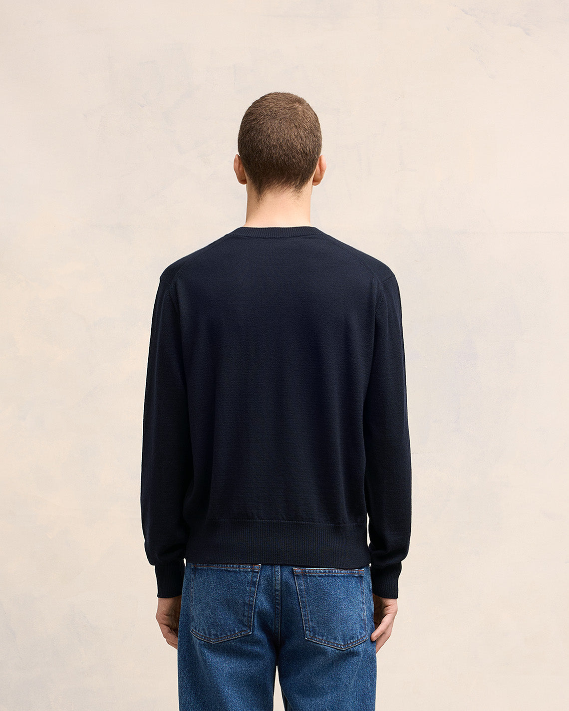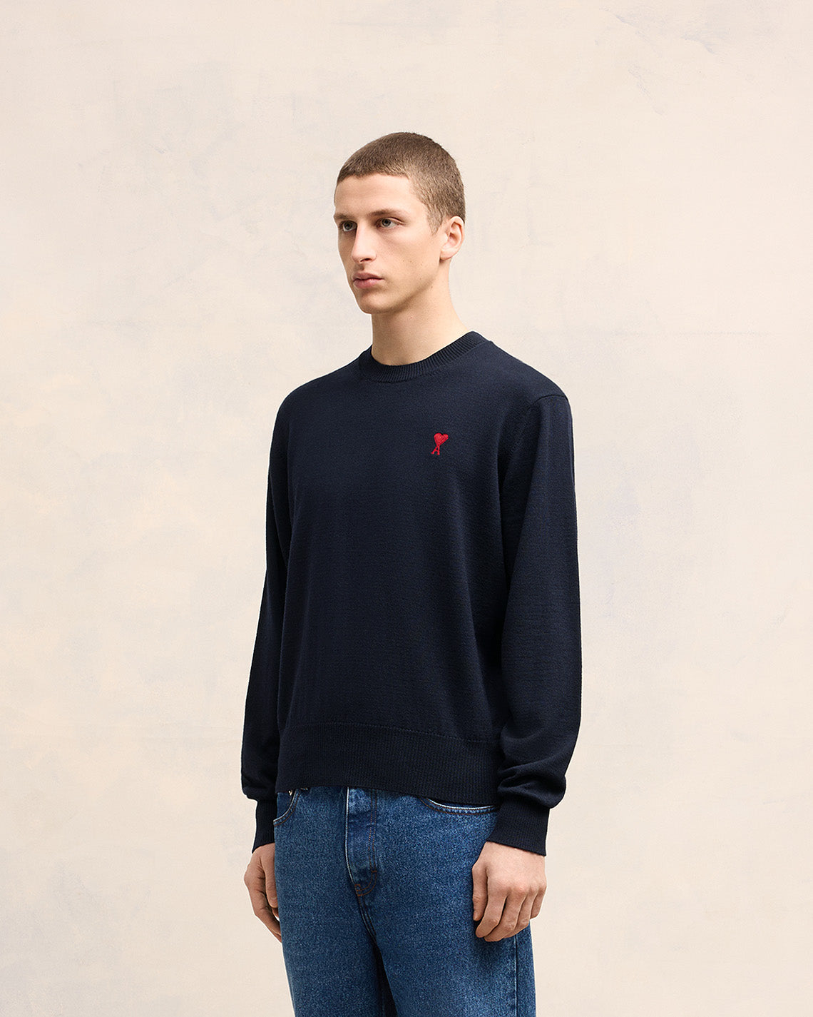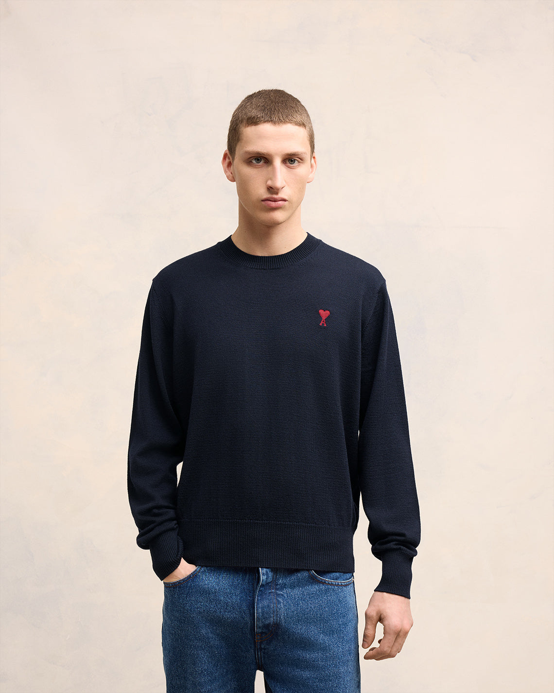Ami de Coeur embroidery crew neck sweater merino wool. Classic fit Jersey knit stich 62 cm center back length (size M) Red Ami de Coeur chest embroidery Made in Portugal (with love)