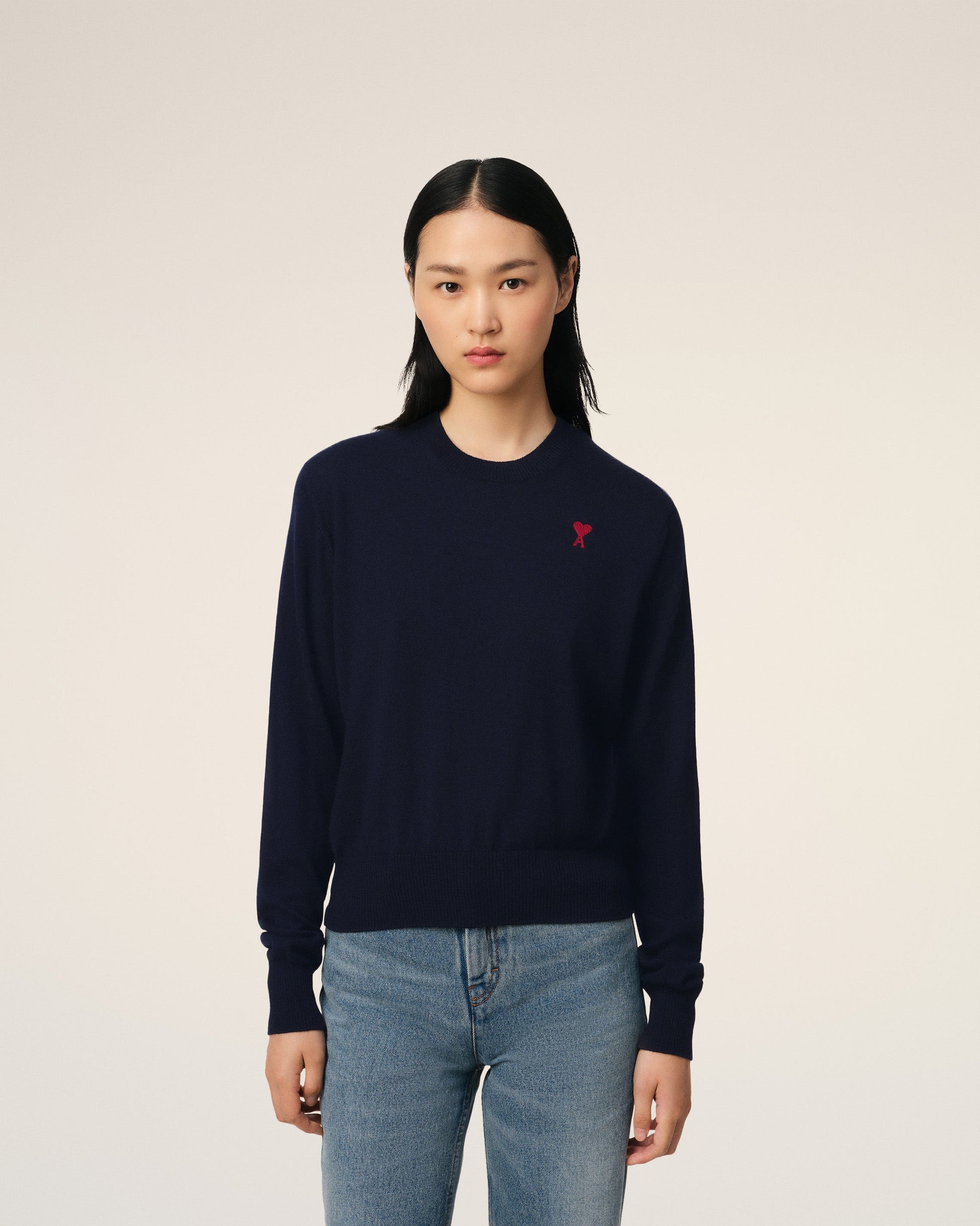 Navy Wool Ami de Coeur Crew Neck Sweater