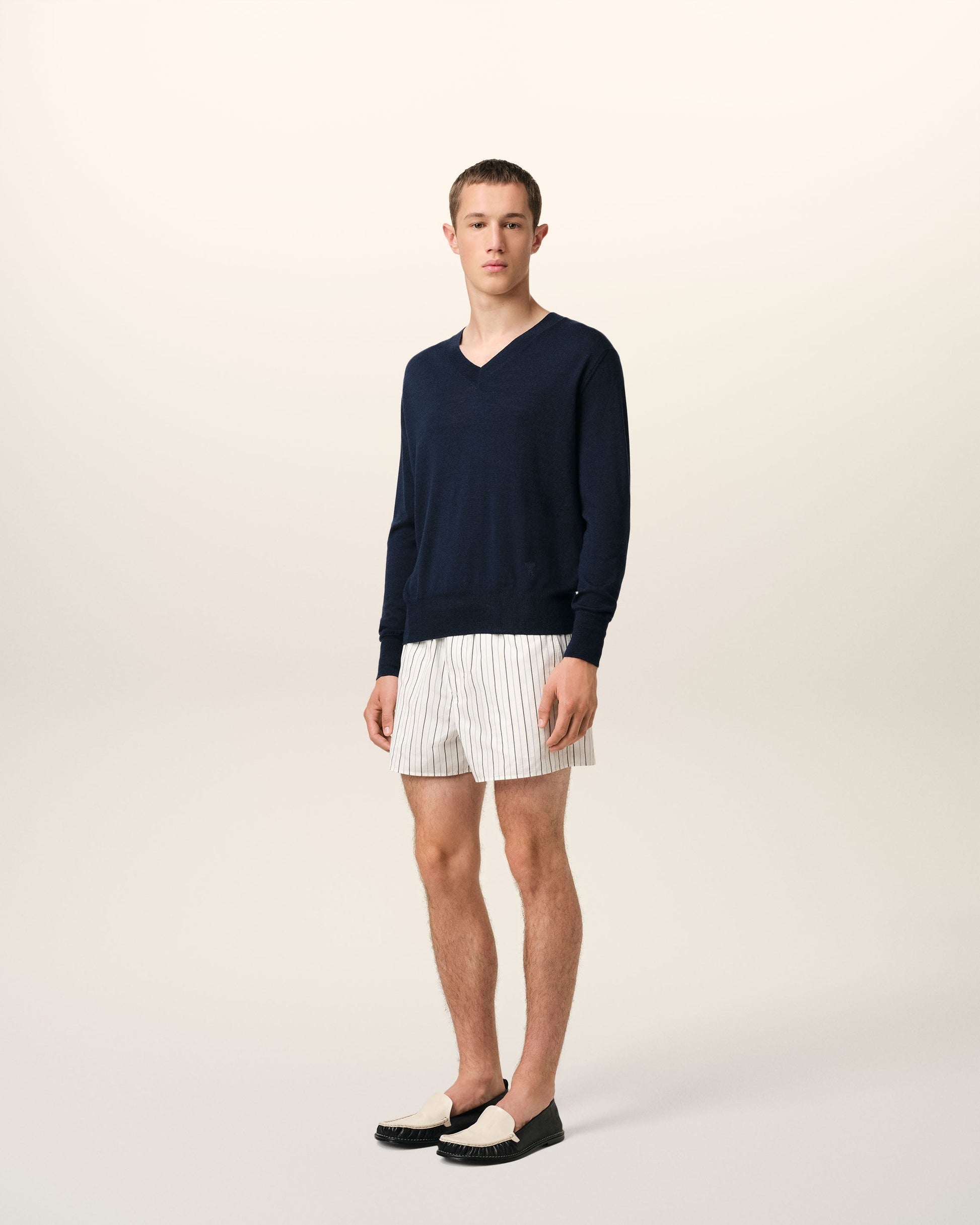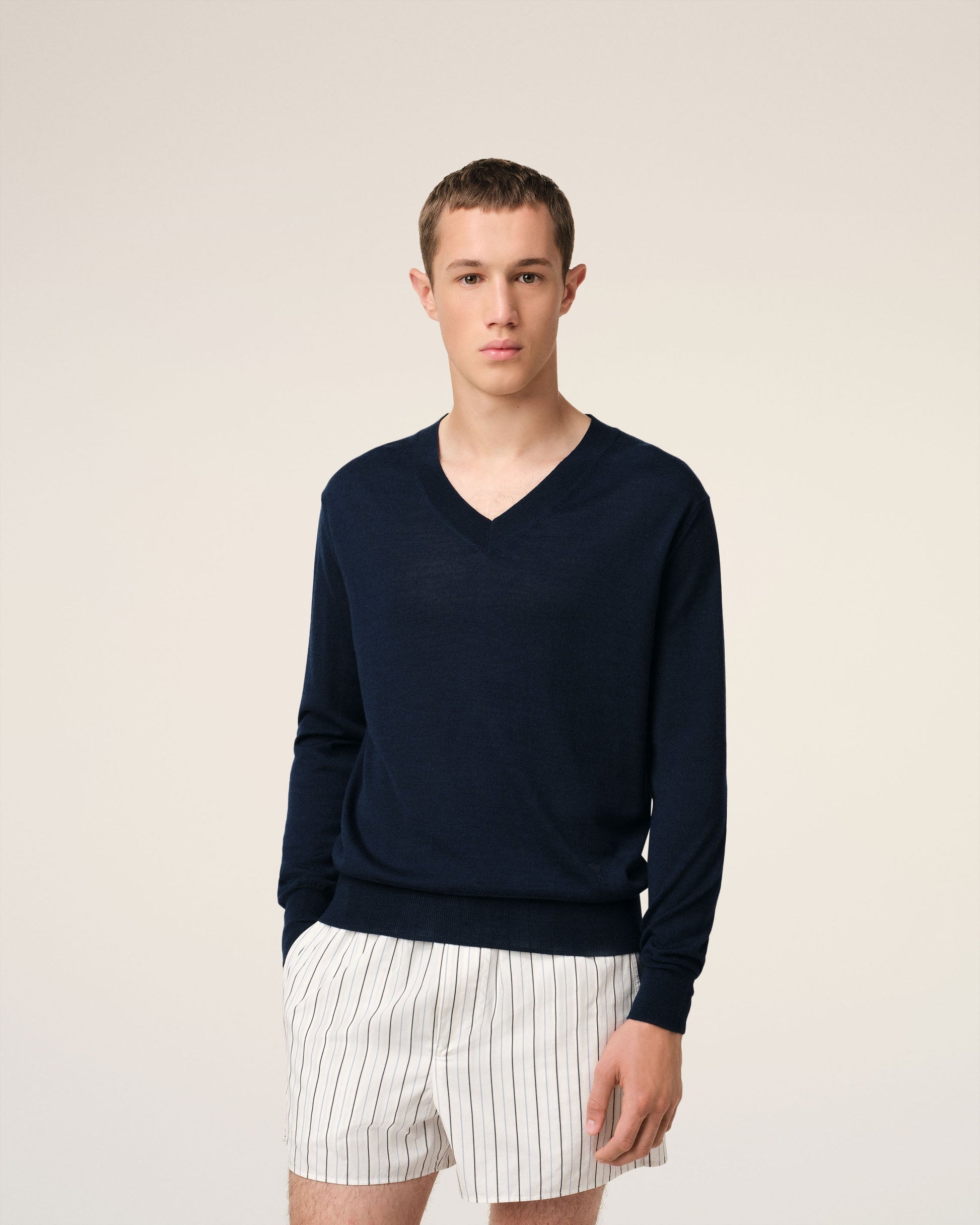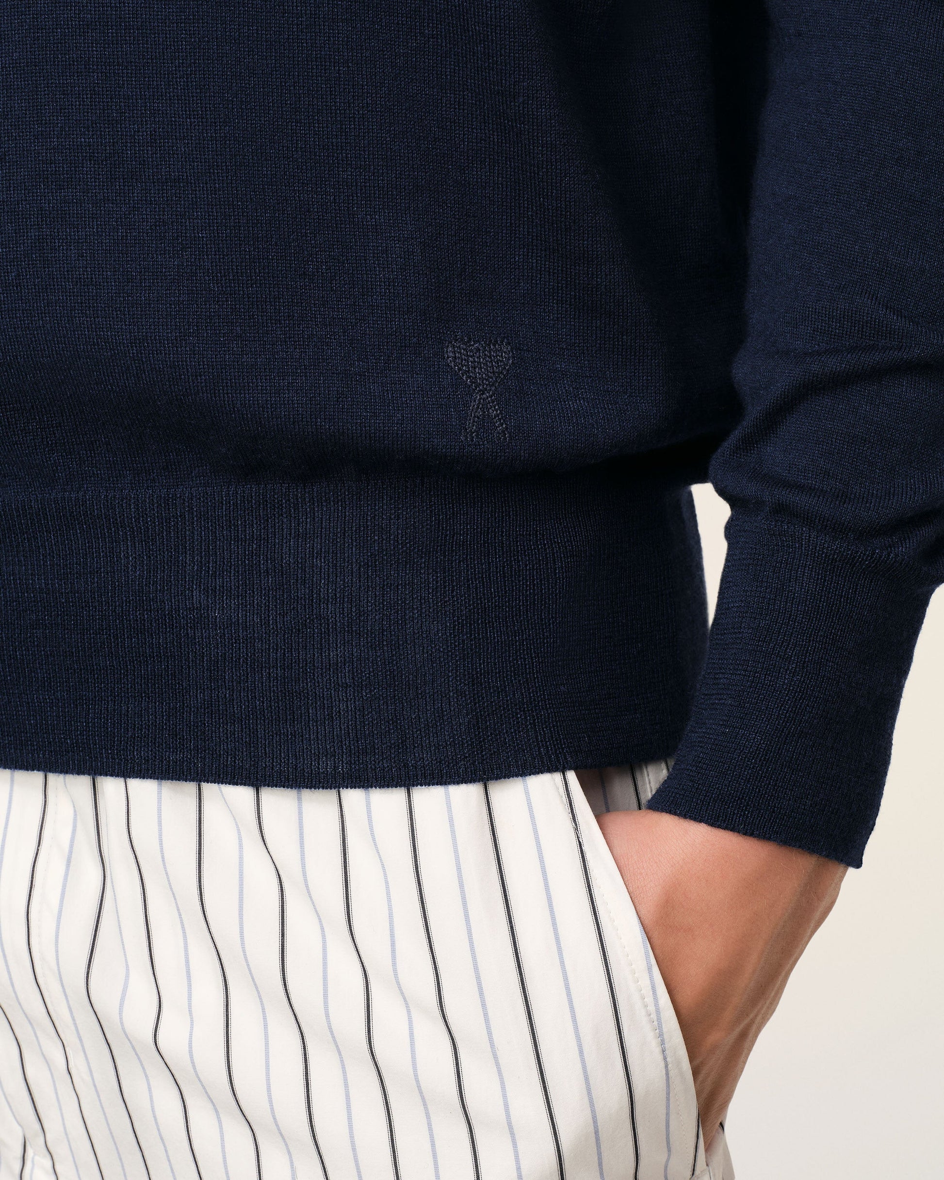 Sweater in extrafine wool silk. Jersey stitch Tonal Ami de Coeur embroidery on body bottom 64 cm center back length (size M) Made in Italy (with love) REF: HKS266.KN0066.4011