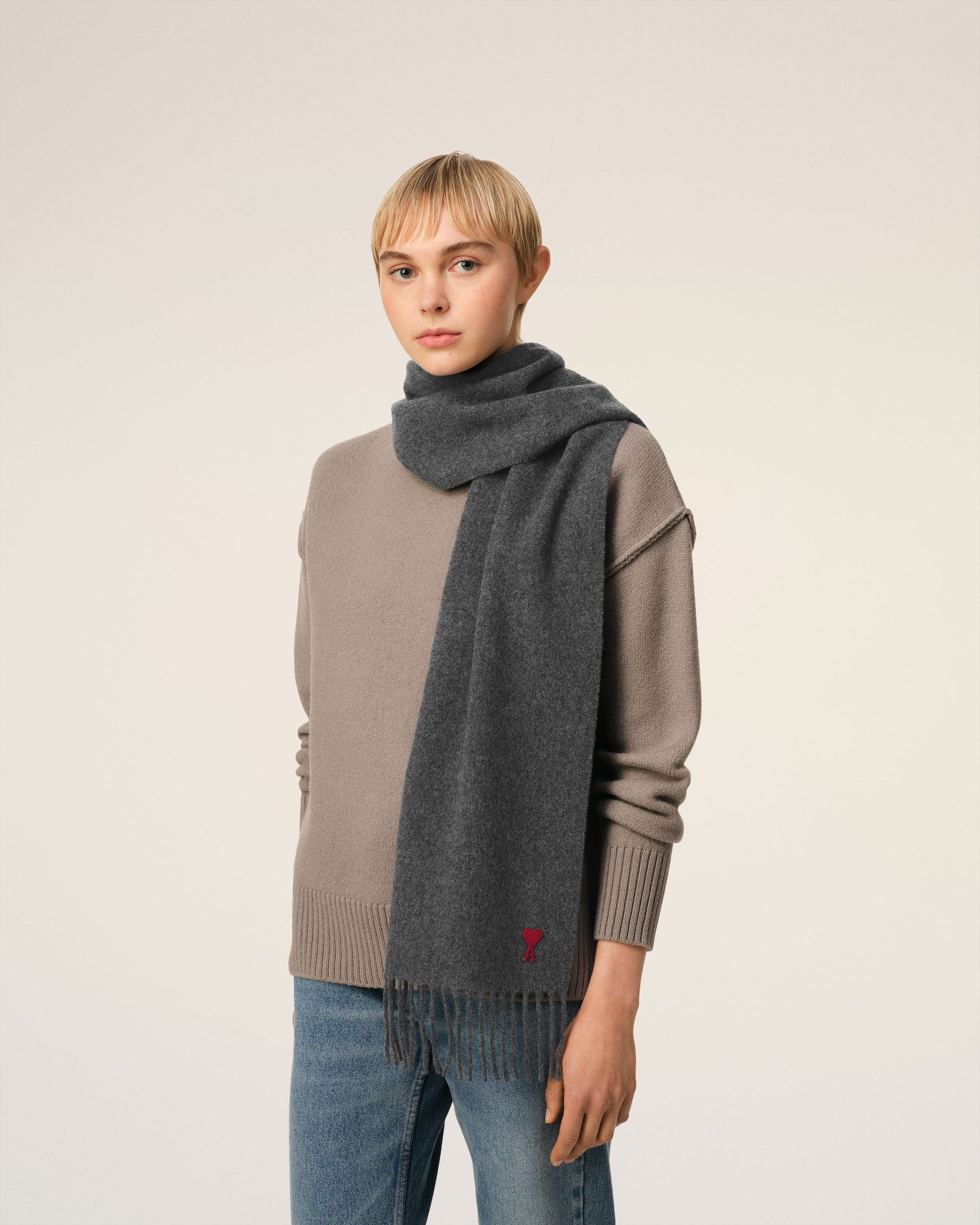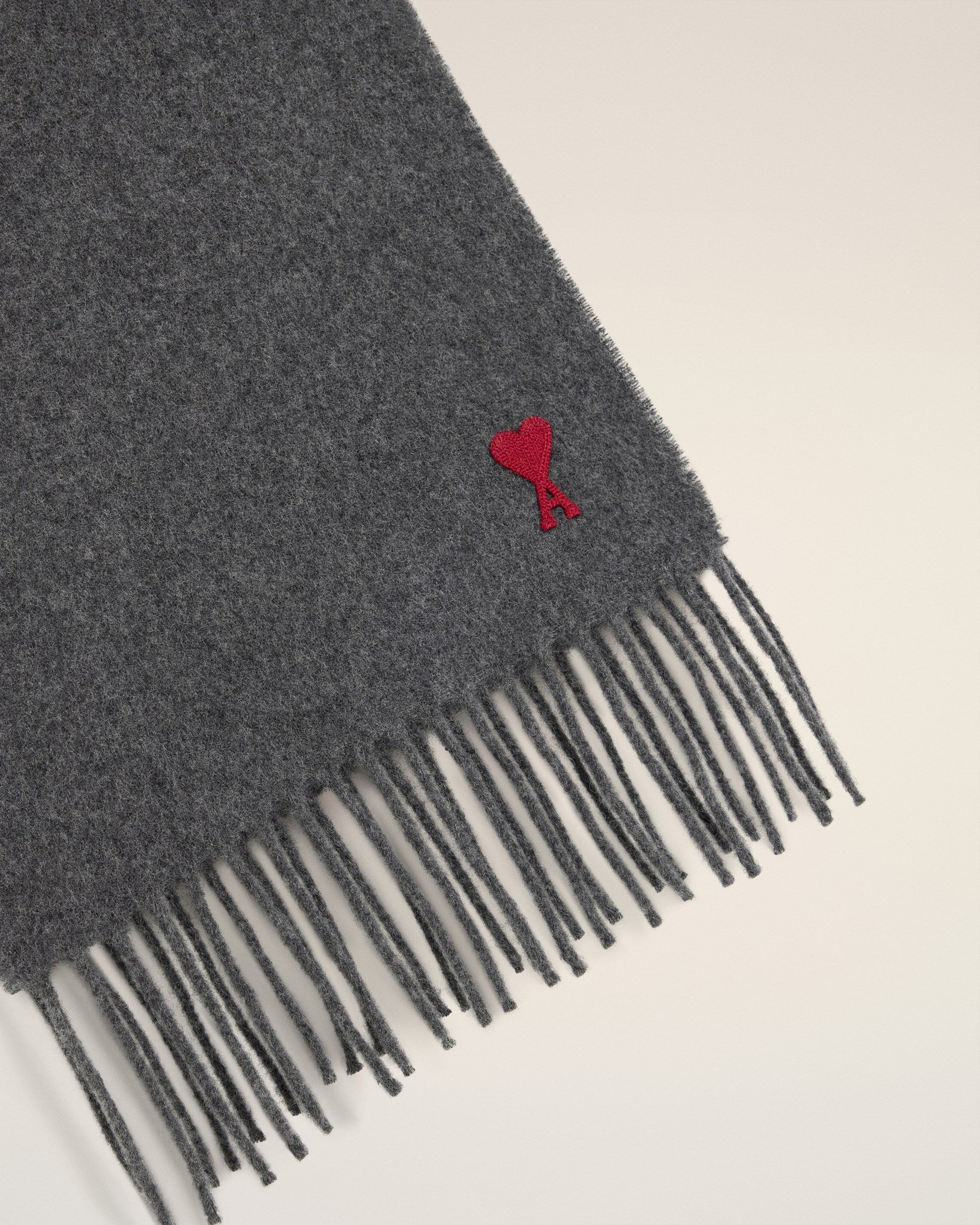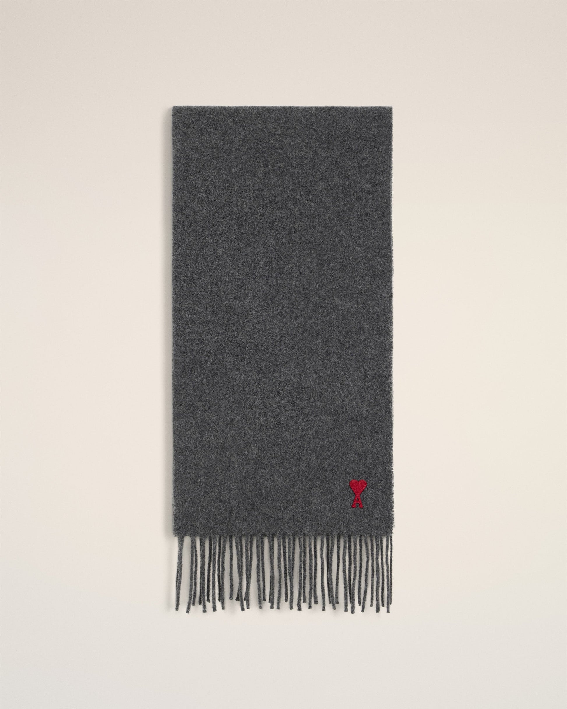 Fringed classic scarf in wool. Unisex product Red Ami de Coeur patch Size without the fringes: 25 x 190 cm Length of the fringes: 10 cm each side Made in Italy (with love) REF: BFUSF405.334.061
