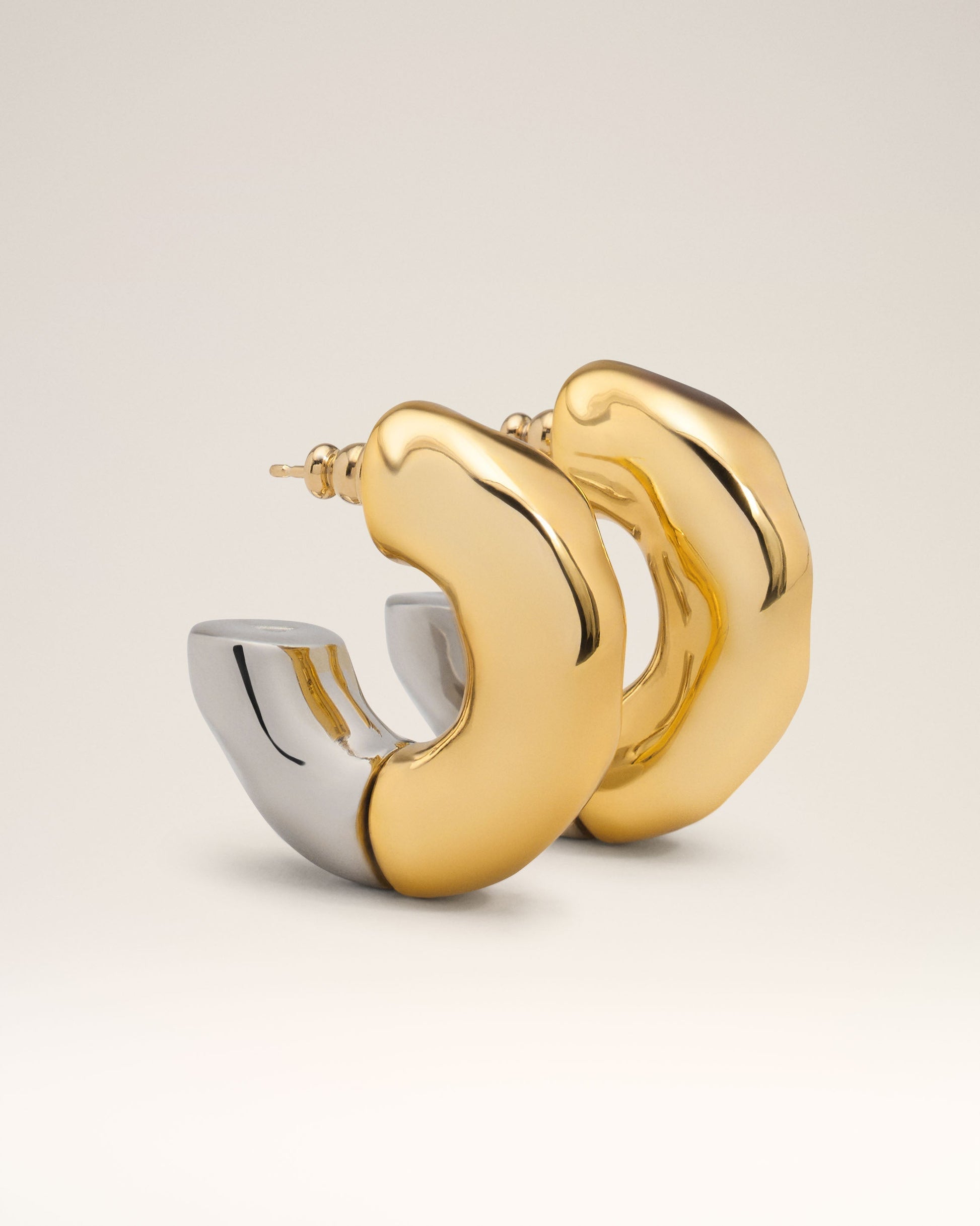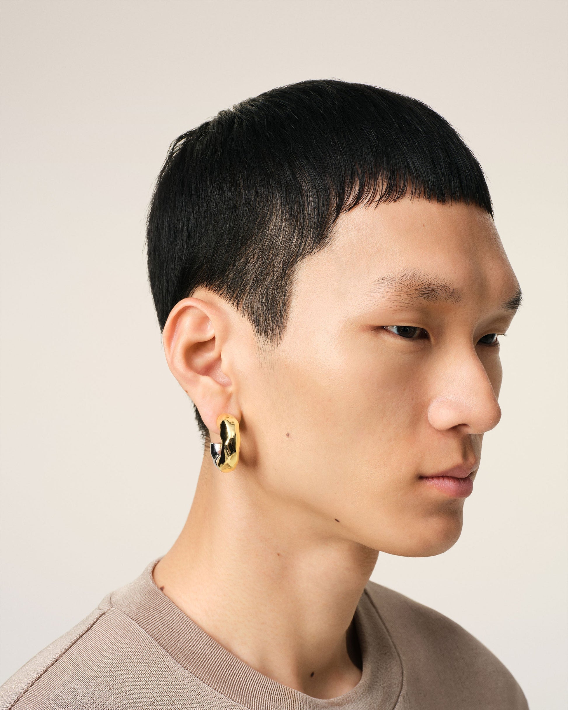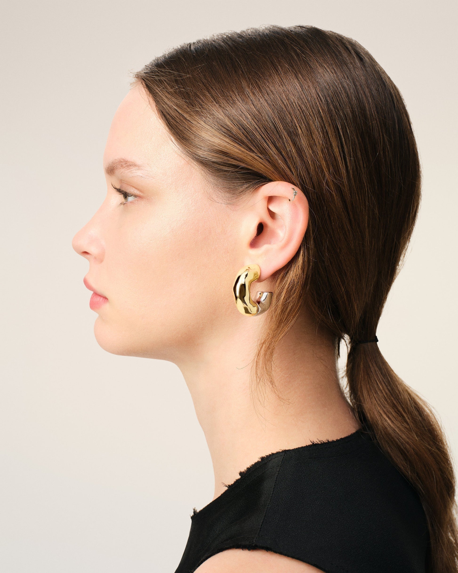 Hammered earrings in palladium-plated brass and gold resin. Engraved Ami de Coeur logo Sold in pairs Made in Italy (with love) REF: UJW219.361.903
