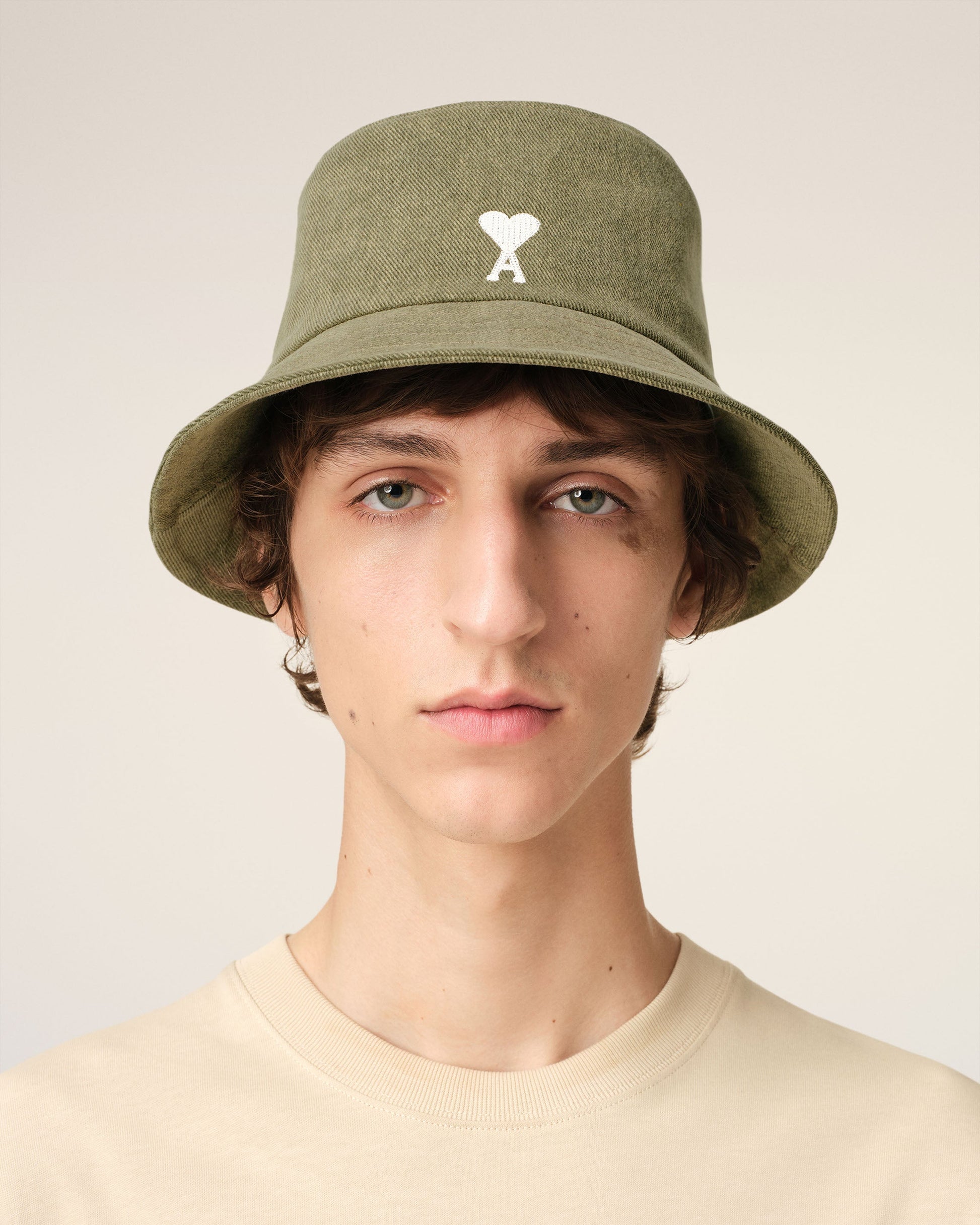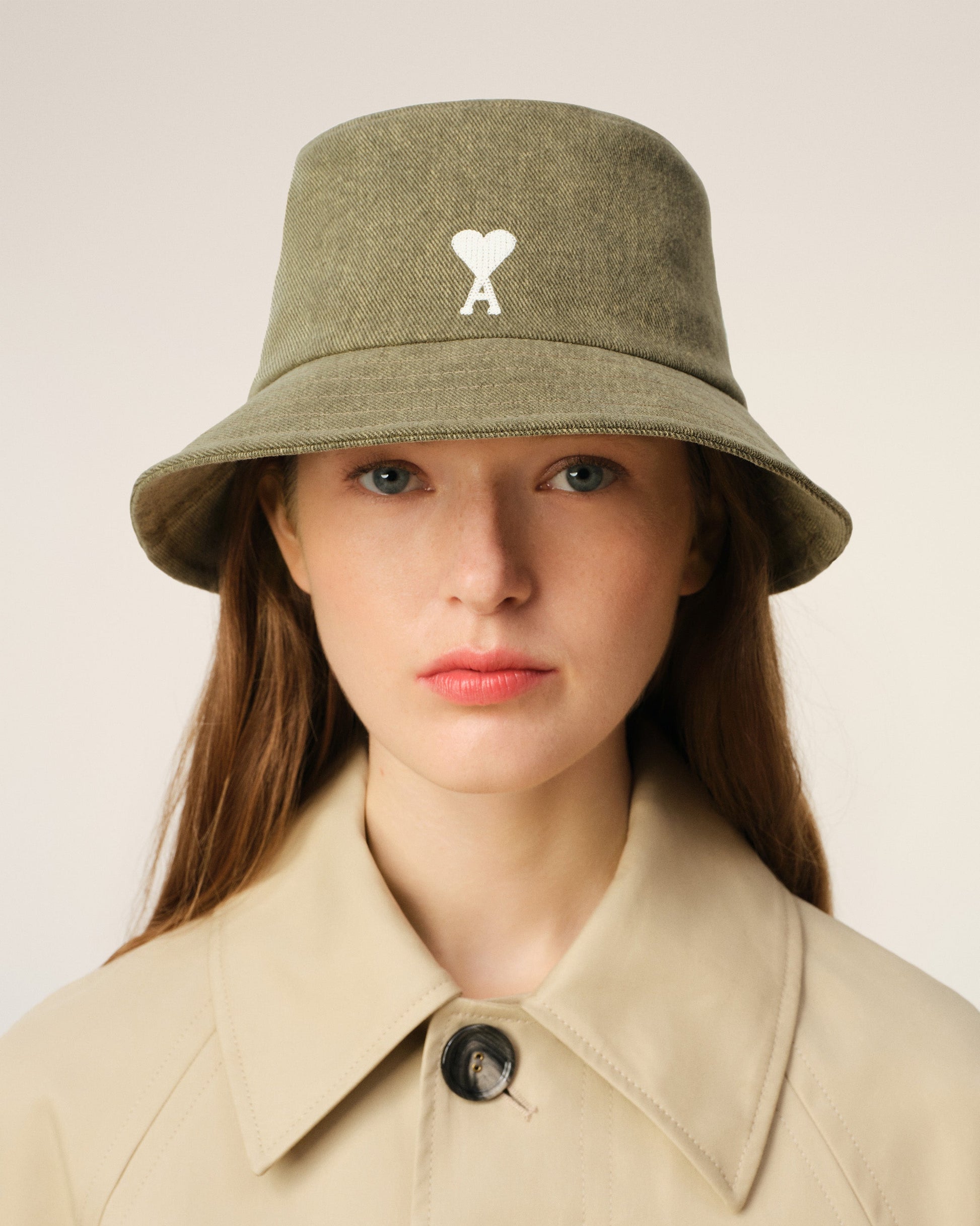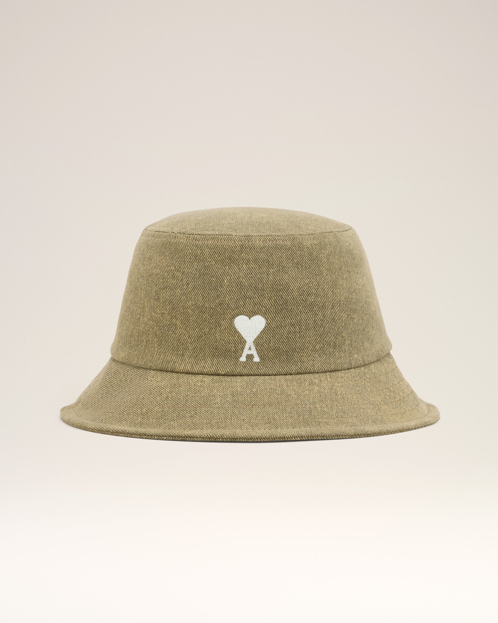 Bucket hat in washed colored cotton twill. Off-white Ami de Coeur chain stitch embroidery Cotton lining Made in Italy (with love) REF: UHA253.DE0064.375