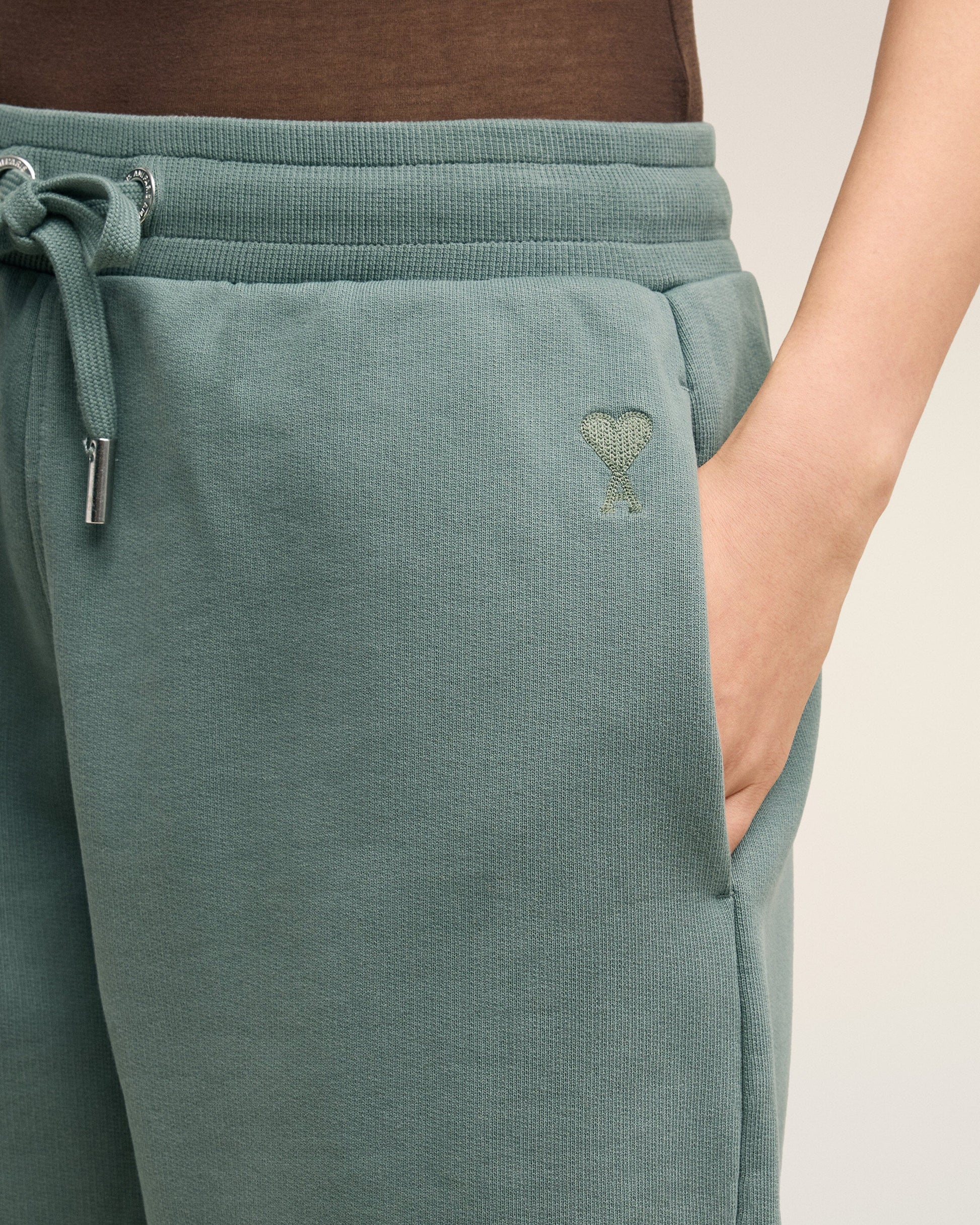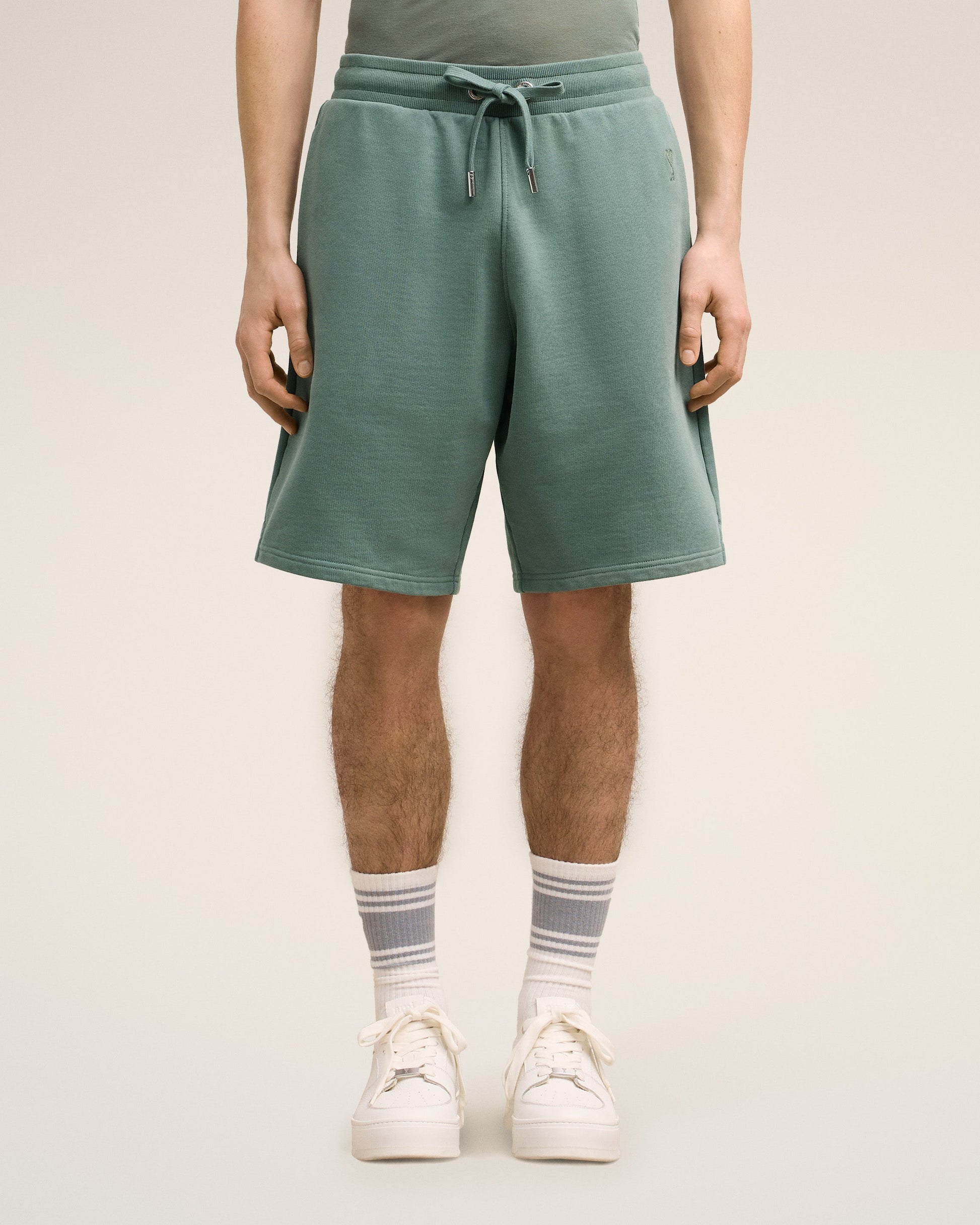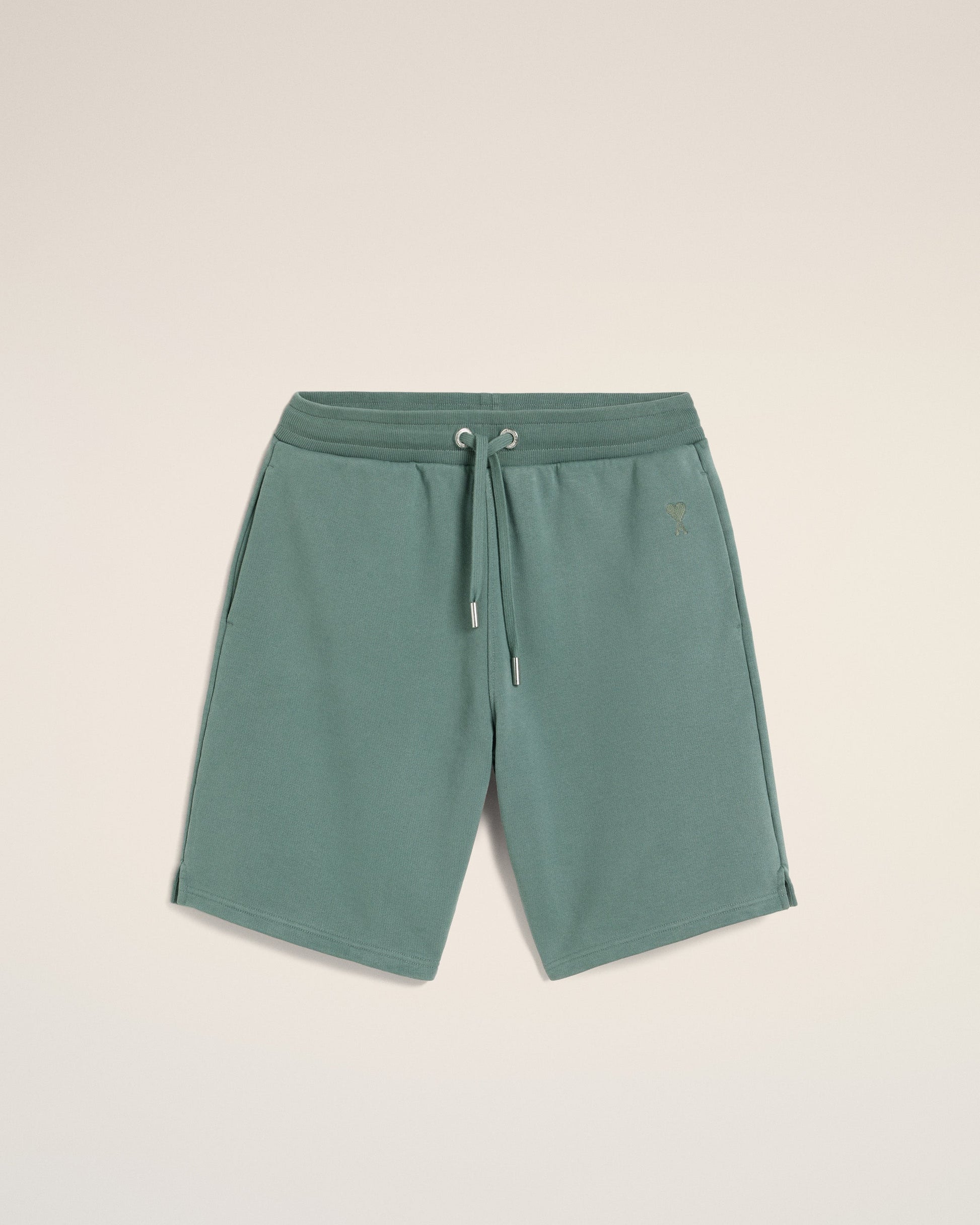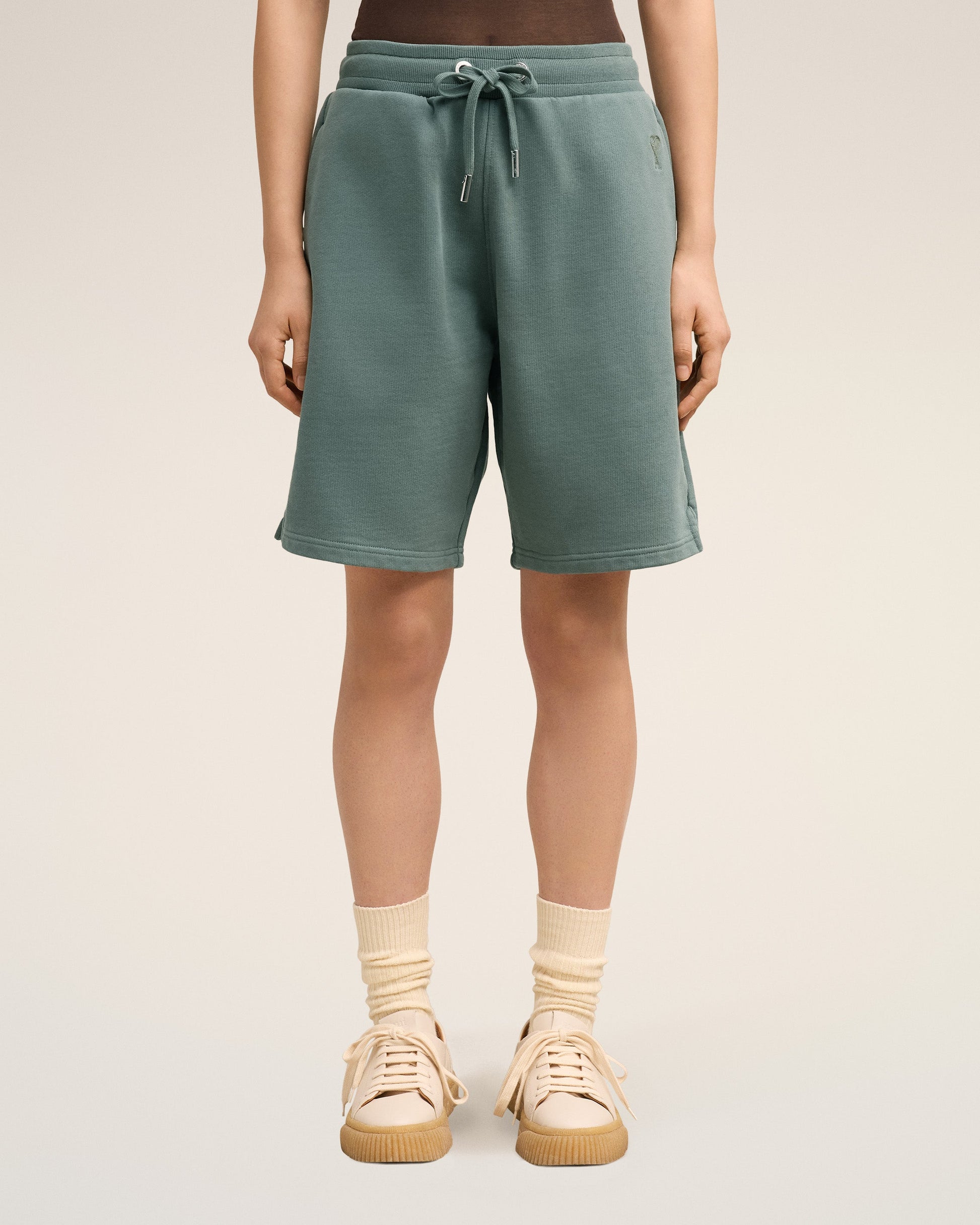 Ami de Coeur shorts in heavy loopback organic cotton fleece. Boxy fit Unisex product 27 cm bottom leg width (Size XS) 29 cm bottom leg width (Size M) Tonal Ami de Coeur embroidery Side pockets External waist drawstring Tonal color metal ends and "ami" engraved eyelets Garment dye style with a wash effect Made in Portugal (with love) REF : USO640.JE0091.4013