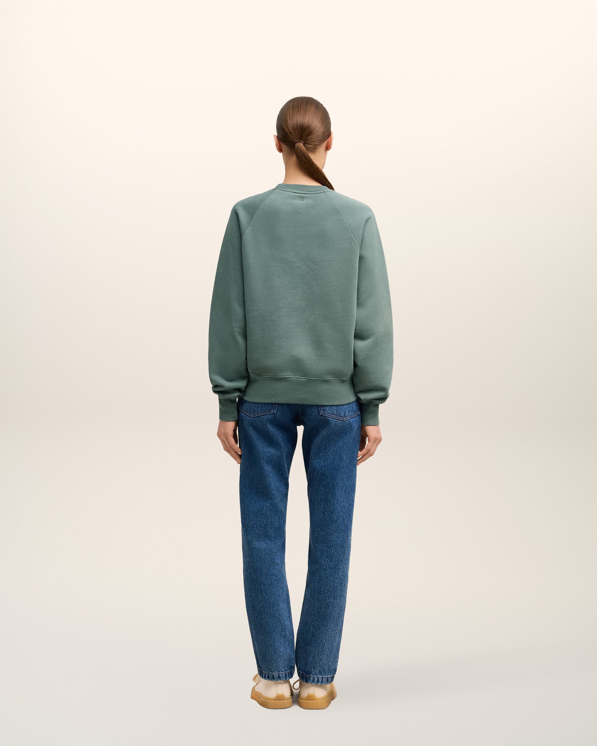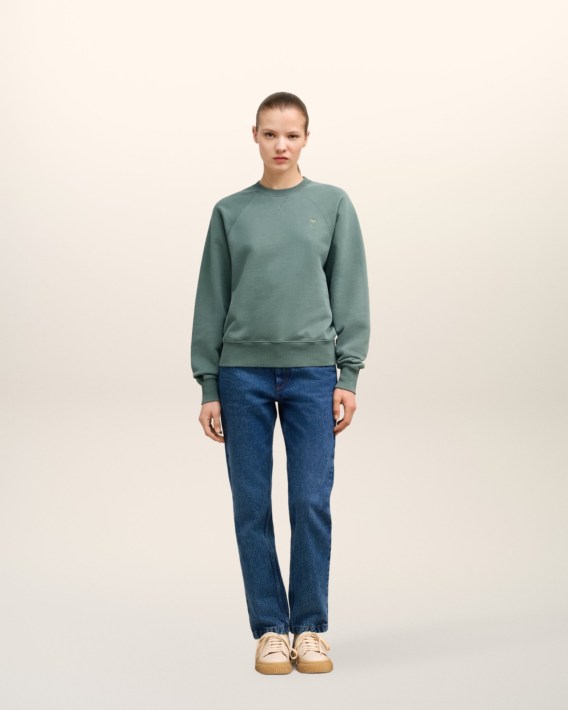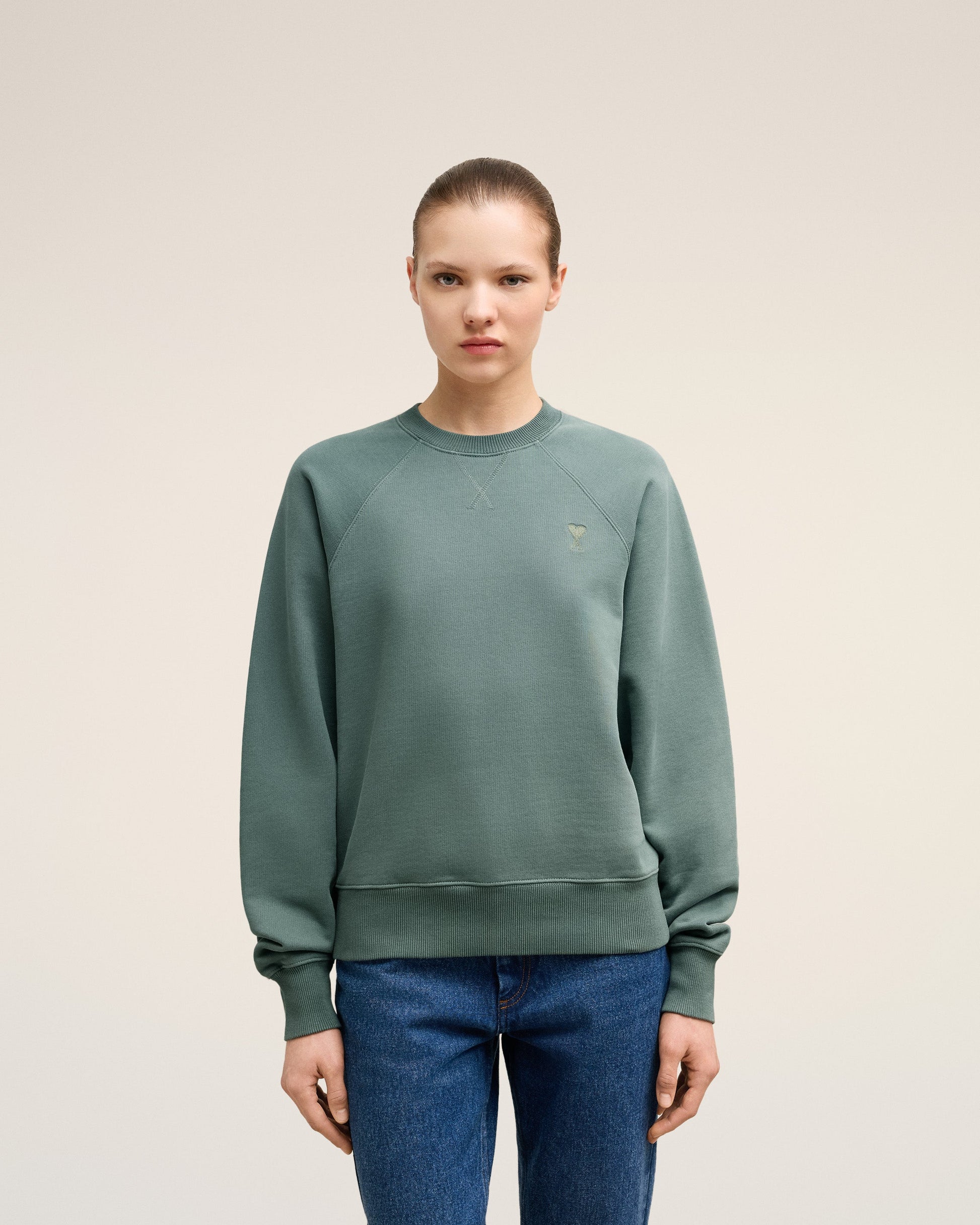 Sweatshirt in heavy loopback organic cotton fleece. Boxy fit Unisex product 61 cm center back length (Size XS) 65 cm center back length (Size M) Tonal Ami de Coeur chest embroidery Tonal "AMI" embroidery under back neckline Raglan sleeves Garment dye style with a wash effect Made in Portugal (with love) REF : USW040.JE0091.4013