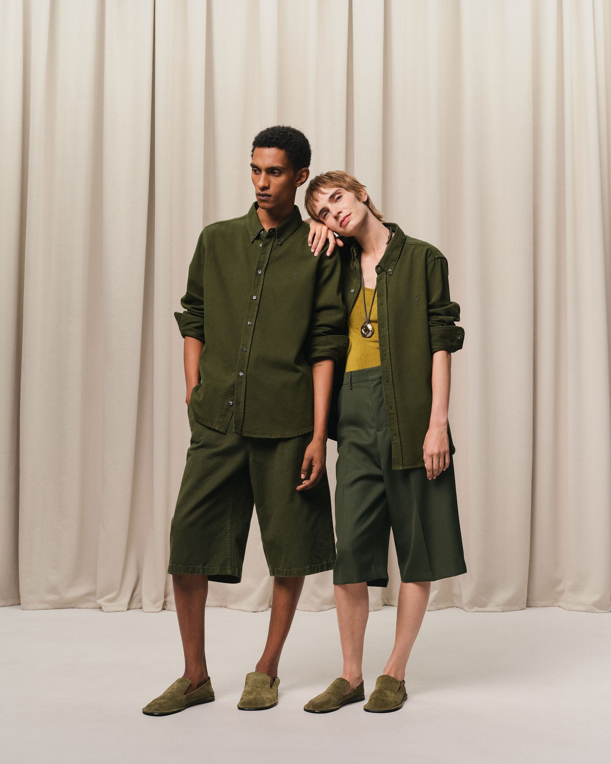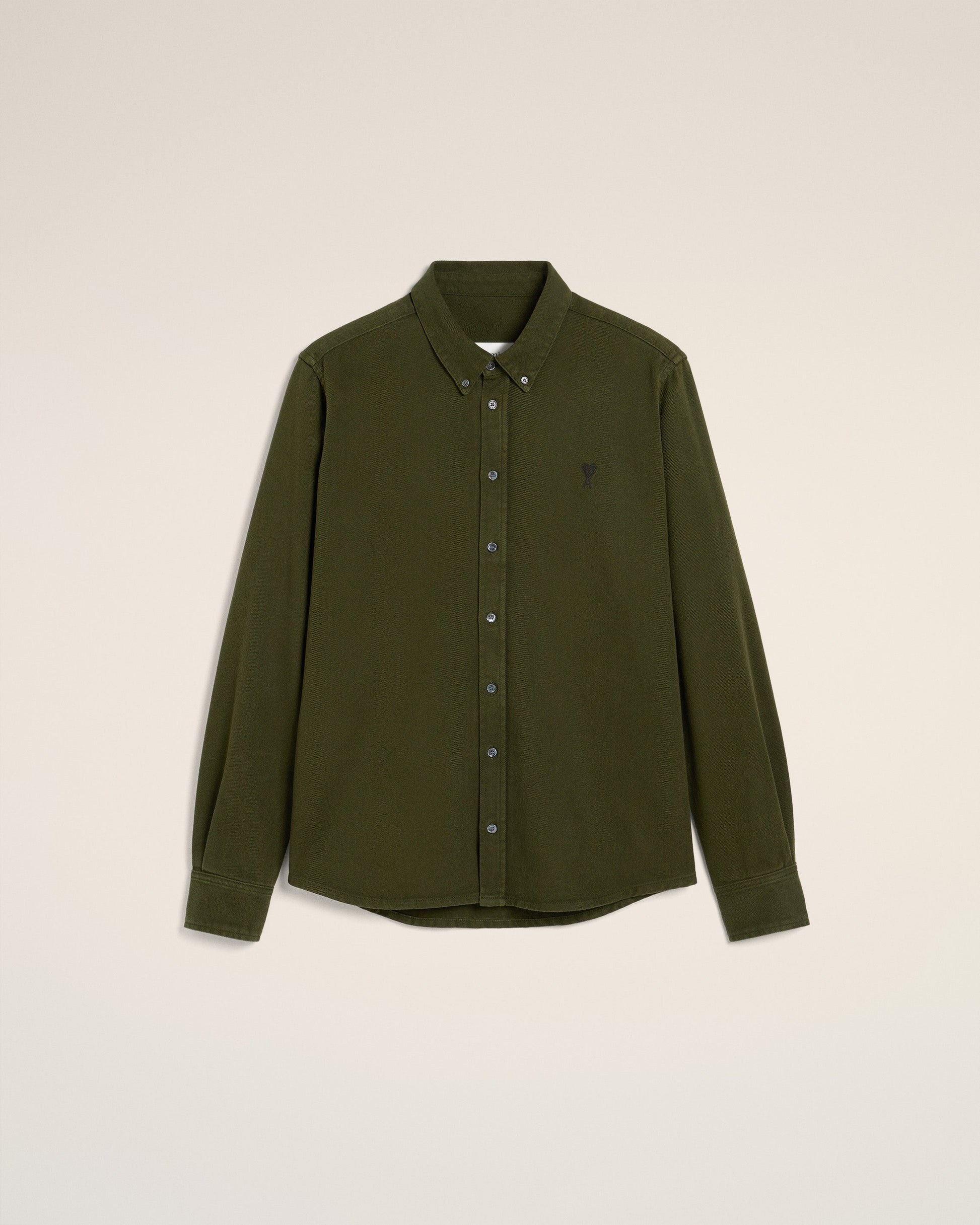 Ami de Coeur button-down shirt in light colored cotton twill. Classic fit Unisex product 75 cm center back length (size XS) 76 cm center back length (size M) Tonal Ami de Coeur chest embroidery Button-down collar Buttoned tab on front and cuffs Mother-of-pearl buttons Made in Portugal (with love) REF: USH060.DE0054.376