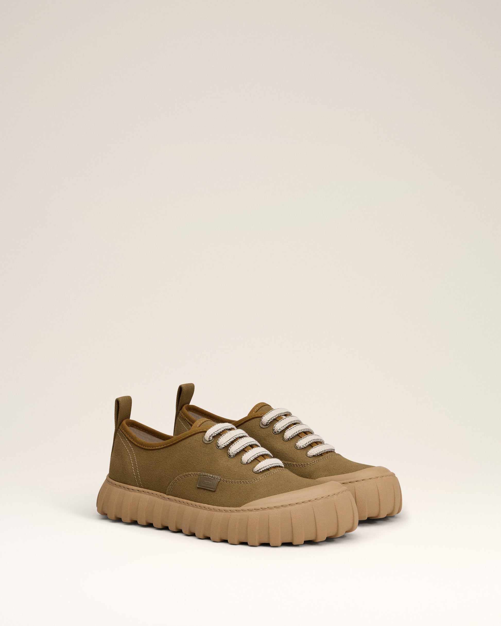 Khaki Cotton Low Top Tempo Canvas Sneakers