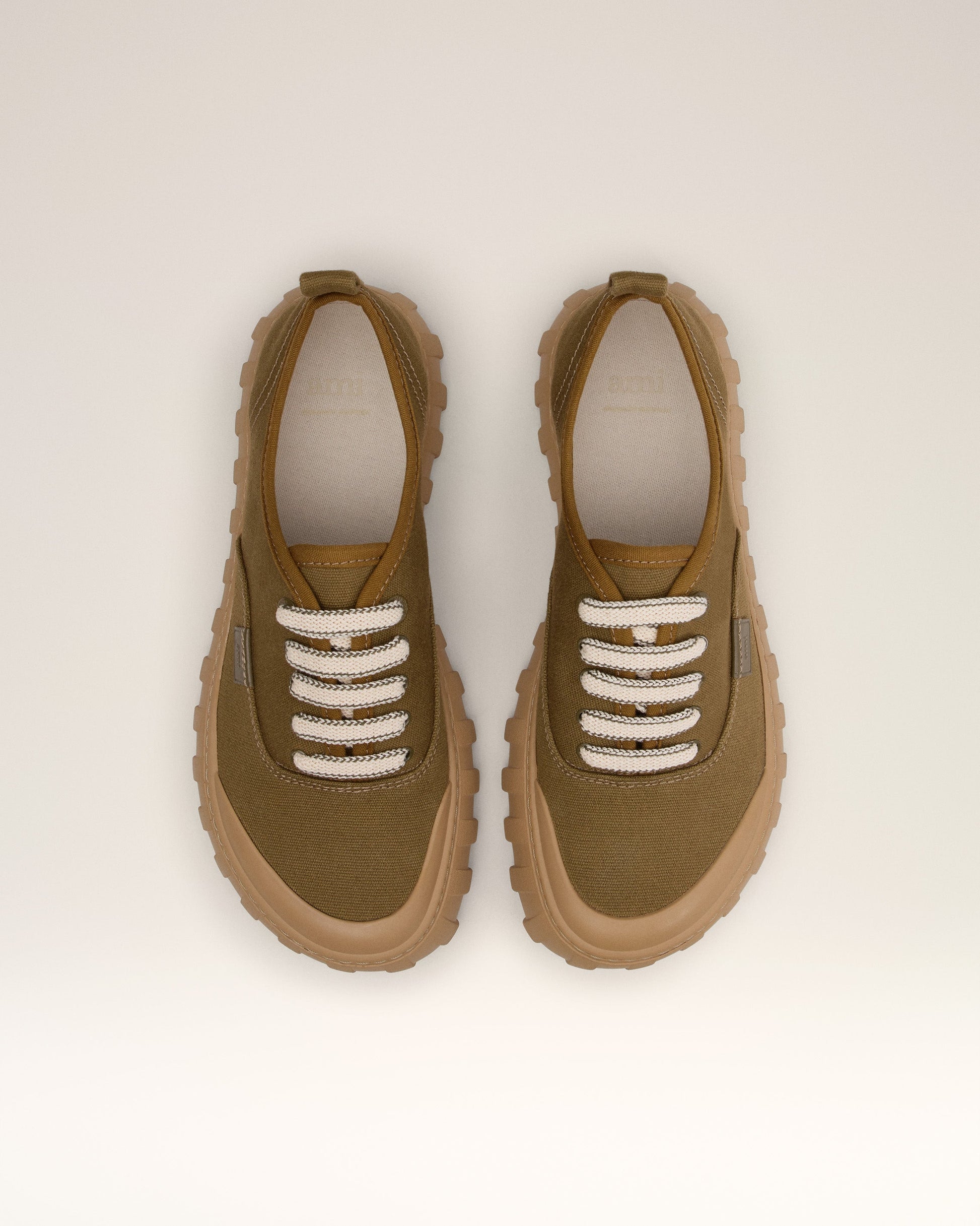 Low-top lace-up sneakers in cotton canvas. Embossed Ami de Coeur logo tonal at the back Leather label with "ami" logo Embossed "ami alexandre mattiussi" logo tonal on the insole Tonal eyelets Exclusive sole developed by Ami Paris Made in Portugal (with love) REF: USN432.AW0073.350