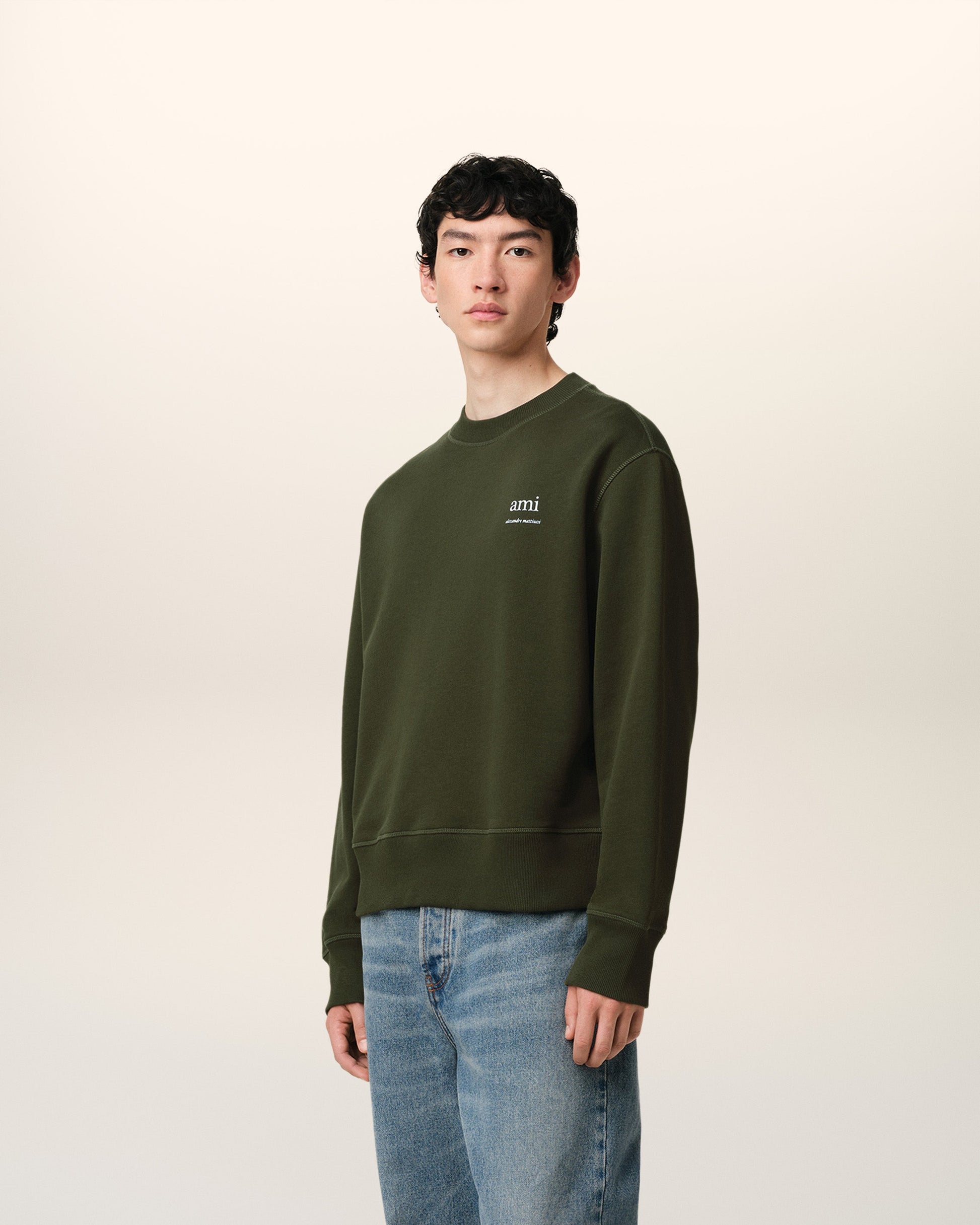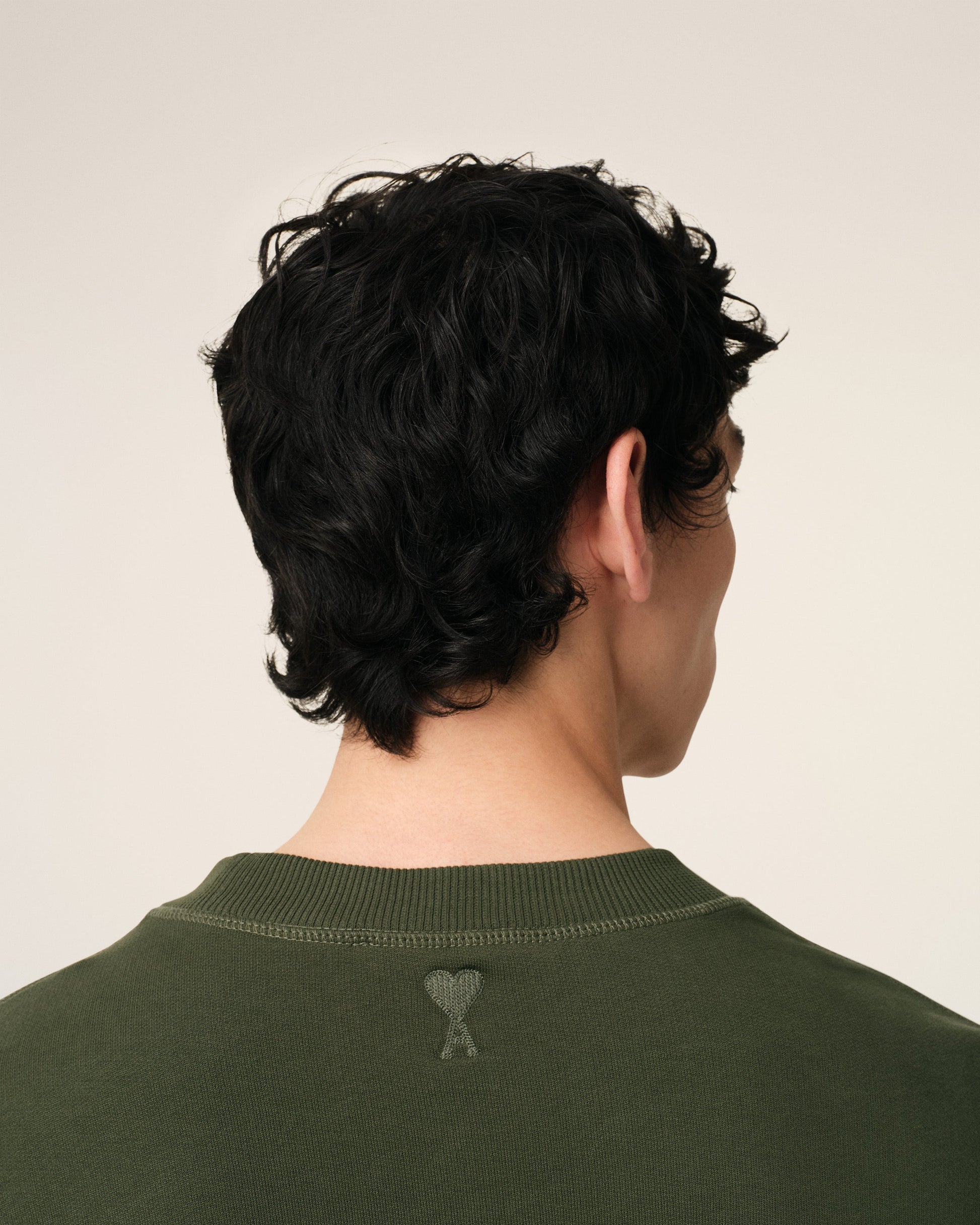 Sweatshirt in cotton fleece. Oversize fit 65 cm center back length (size M) "ami alexandre mattiussi" off-white print Tonal Ami de Coeur embroidery under back neckline Made in Portugal (with love) REF: HSW048.JE0120.376