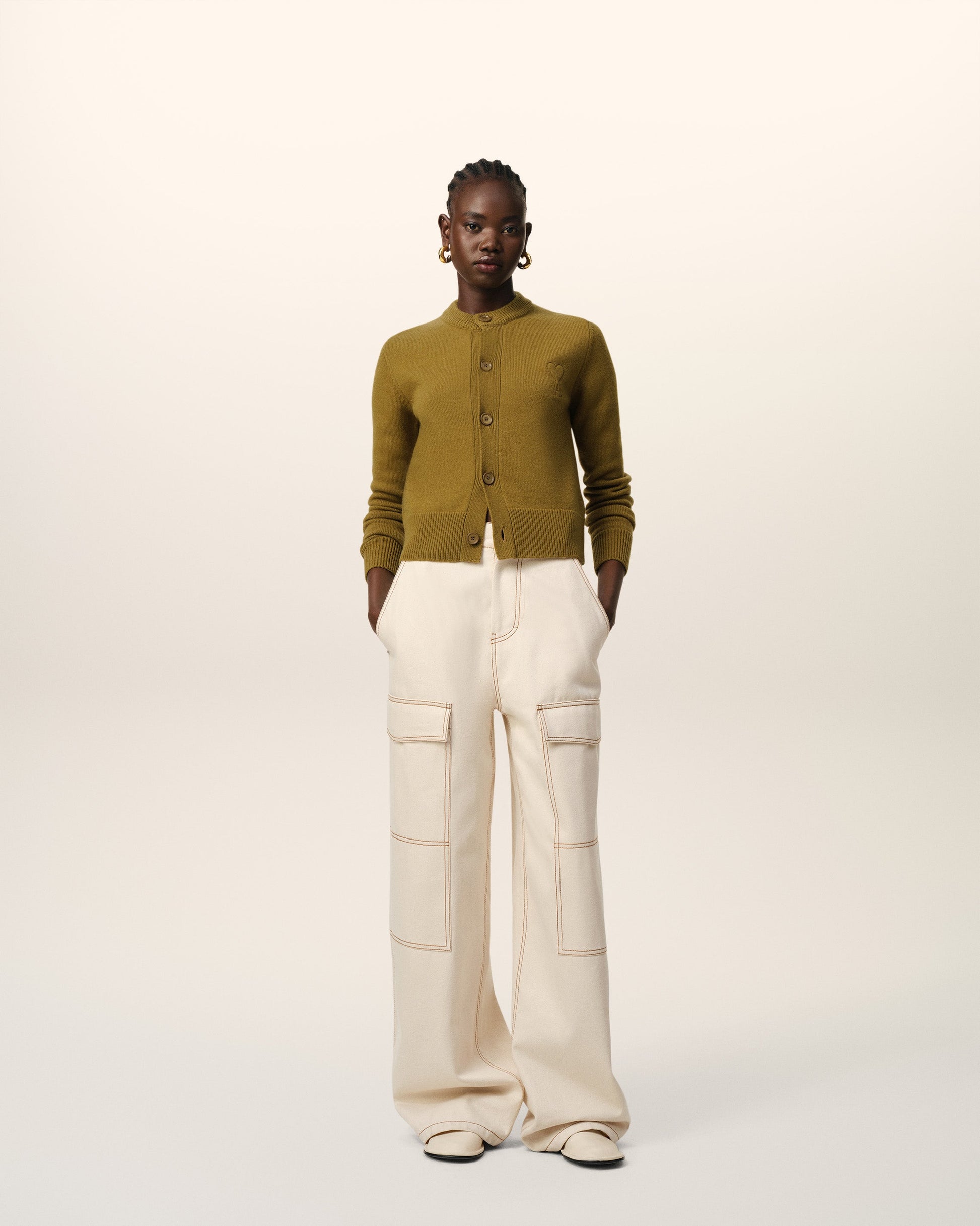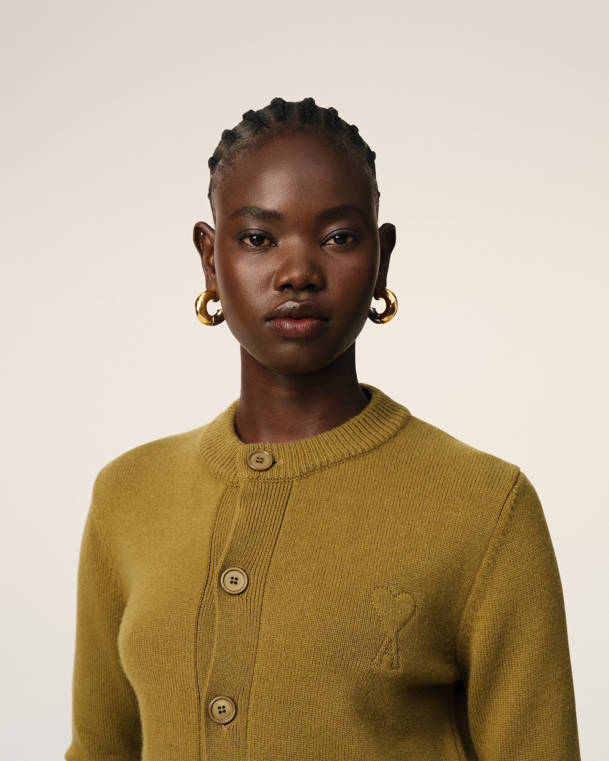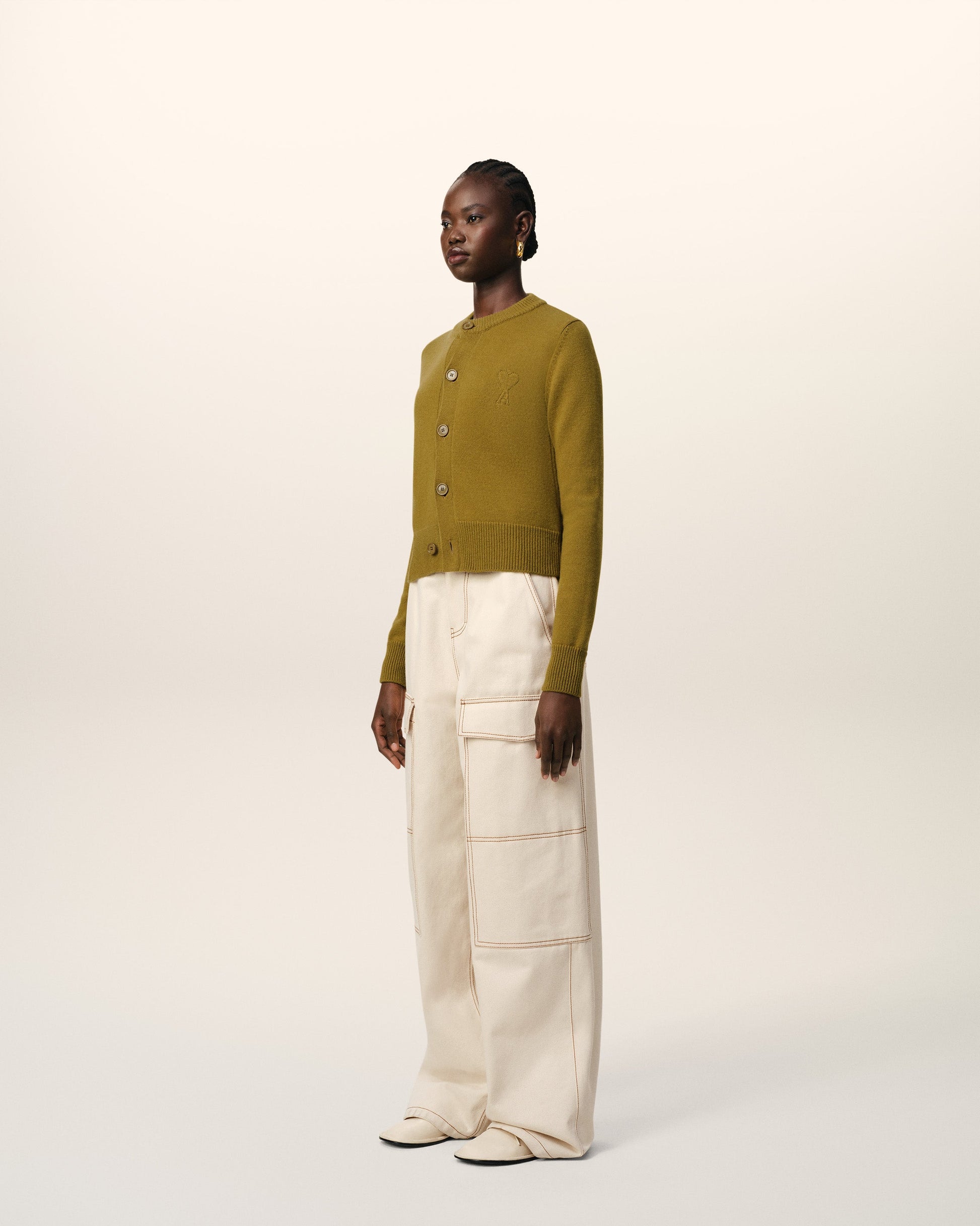Khaki Wool Knit Ami de Coeur Crewneck Cardigan