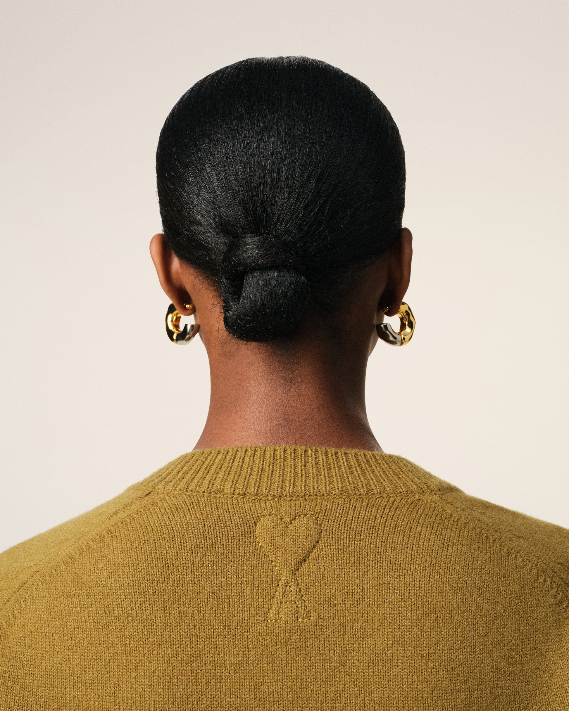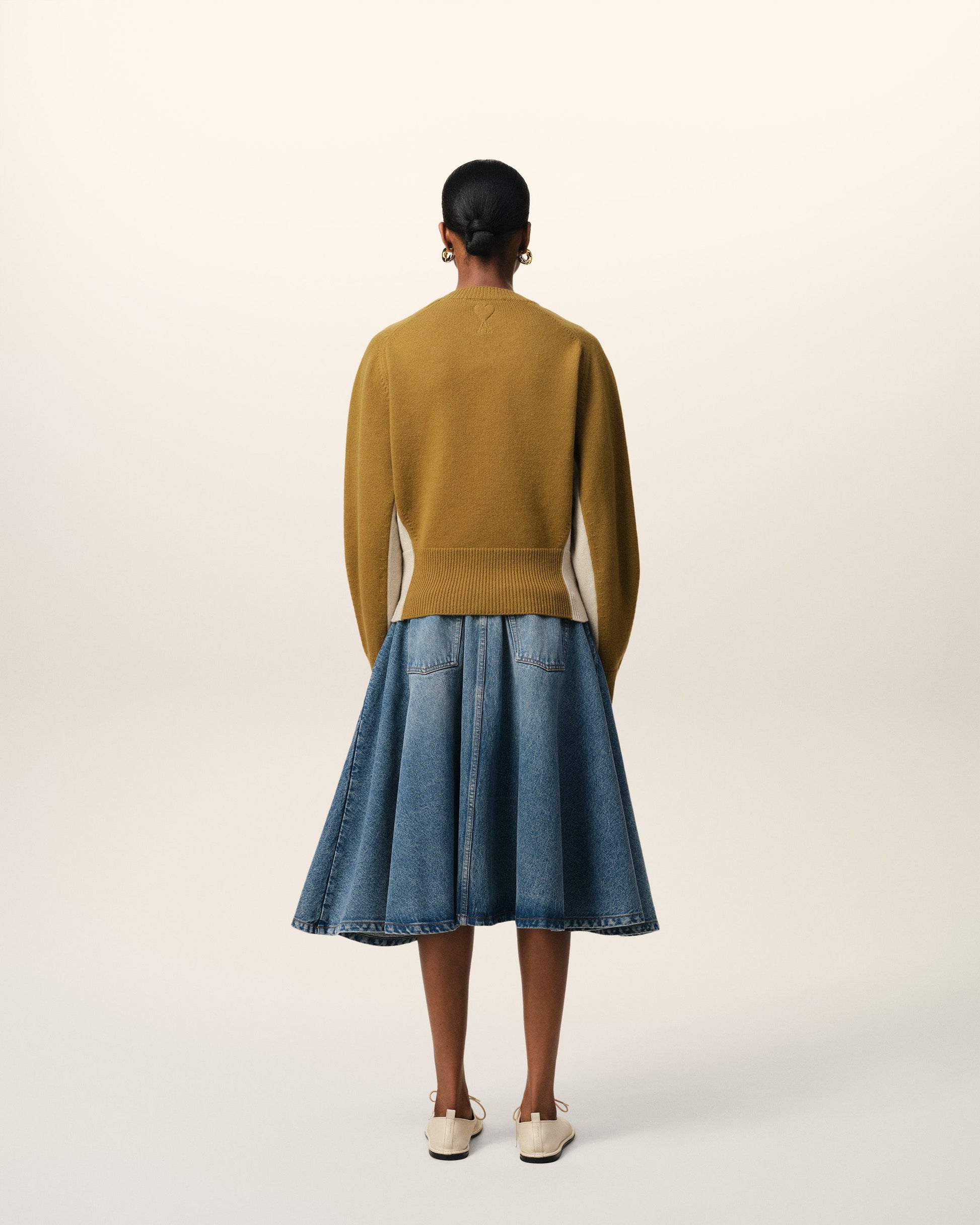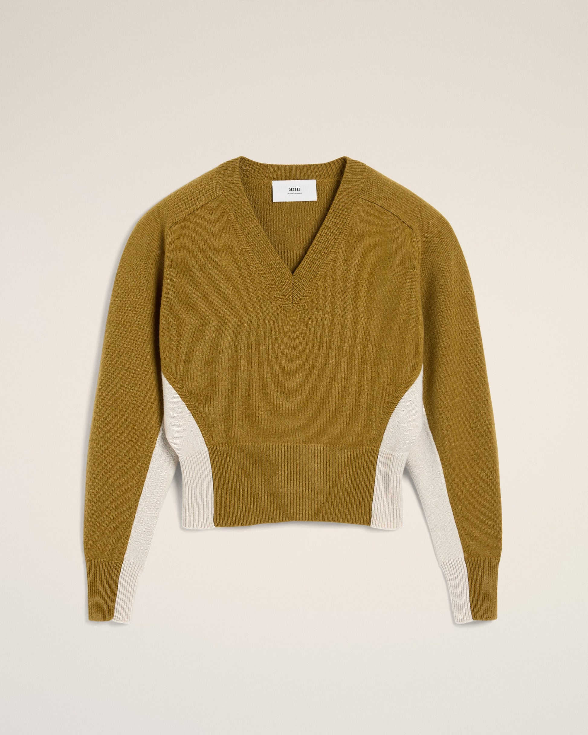 Sweater in bicolor wool and cashmere knit. Jersey stitch Tonal Ami de Coeur embossed embroidery on the back under collar 58 cm center back length (size S) Made in Italy (with love) REF: FKS277.KN0077.3743