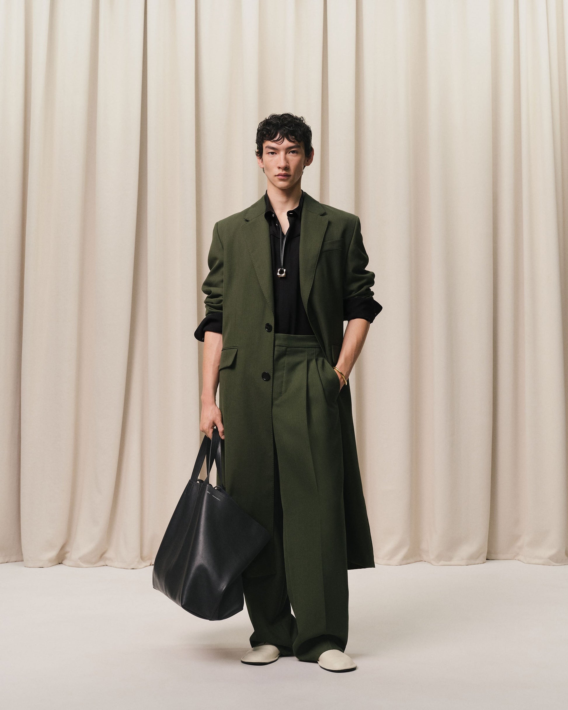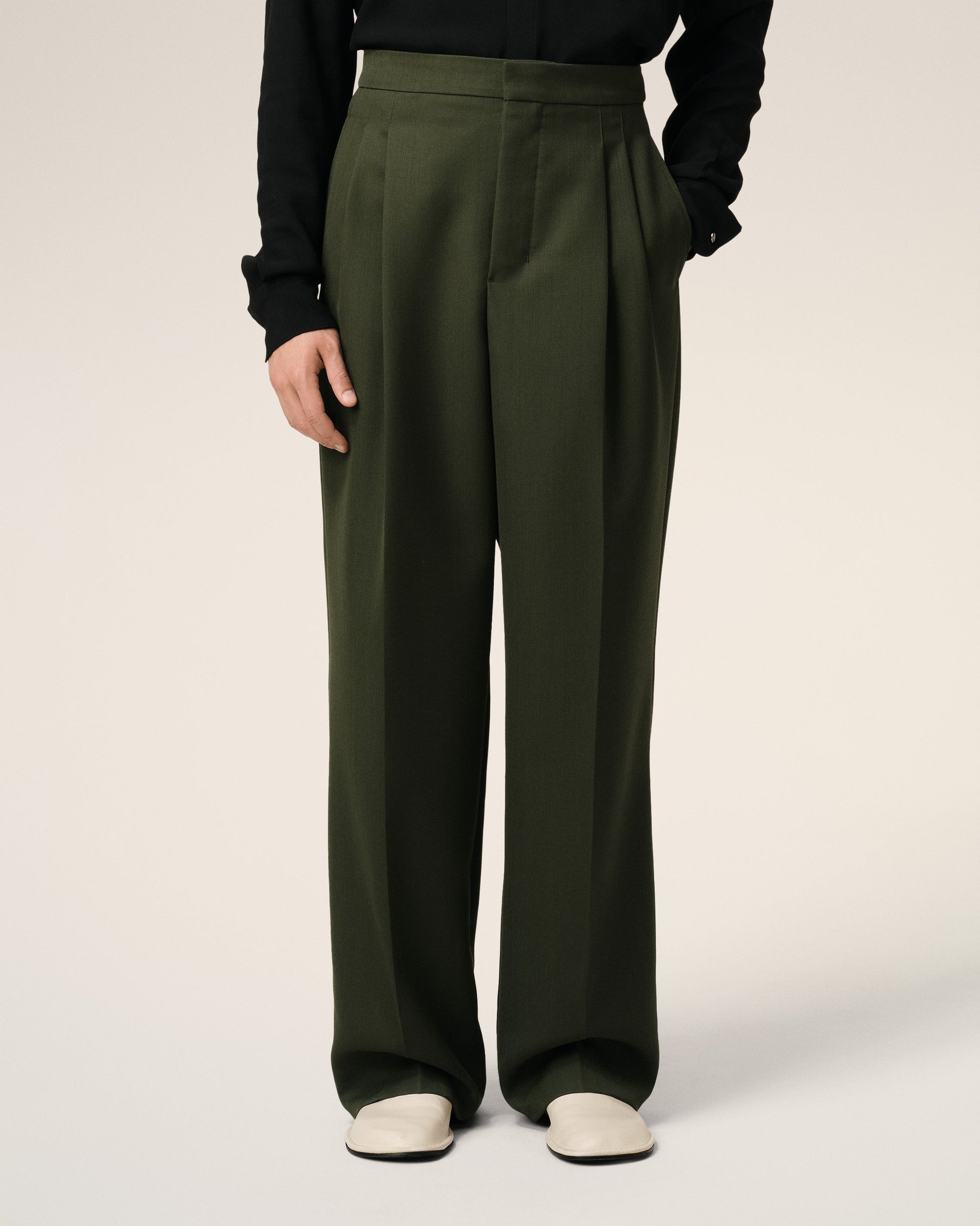 Green Wool Large Fit Trousers
