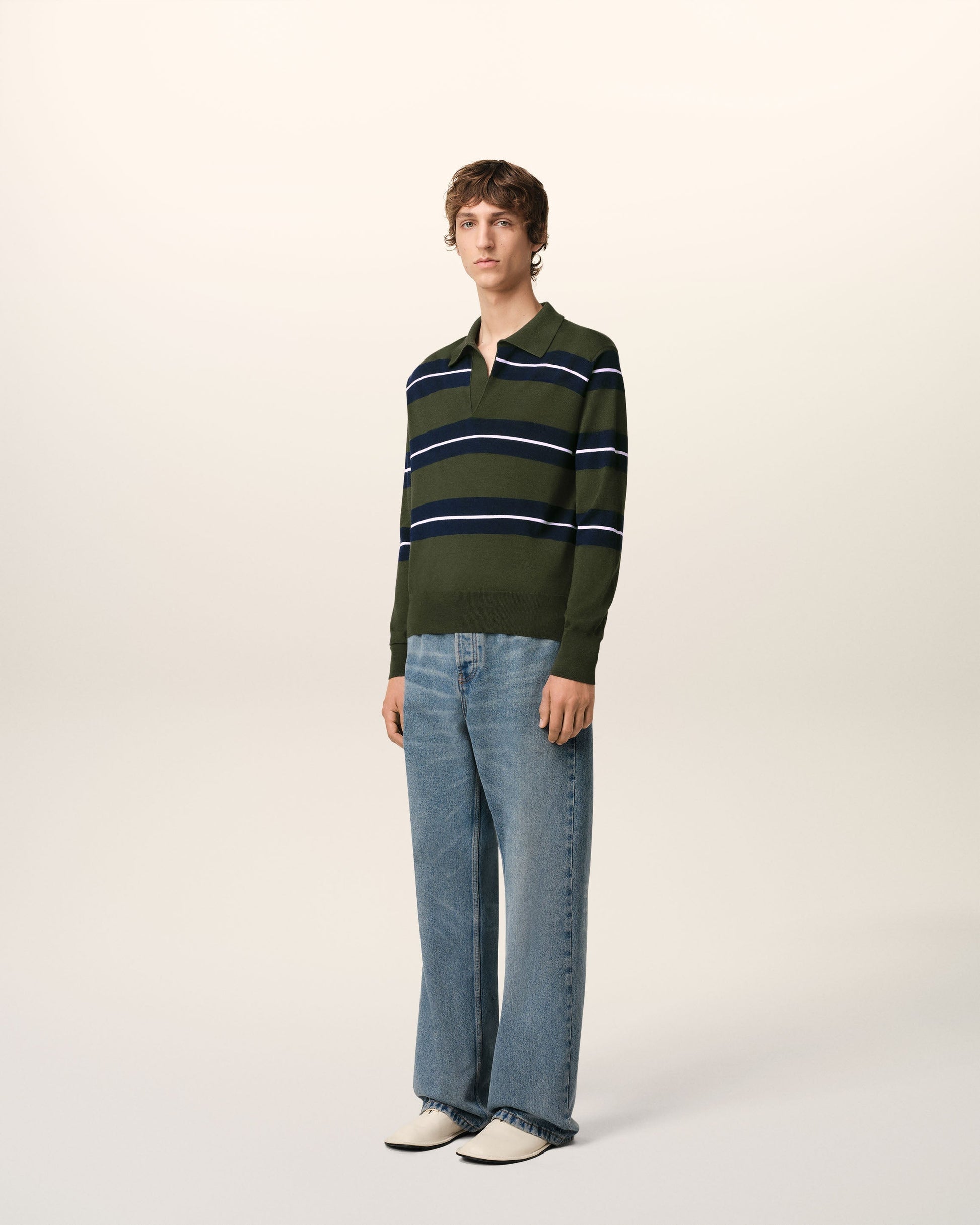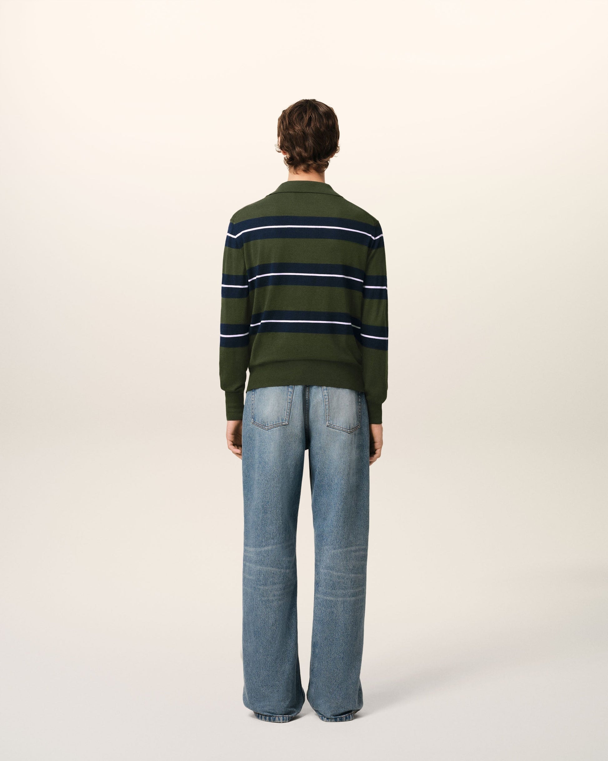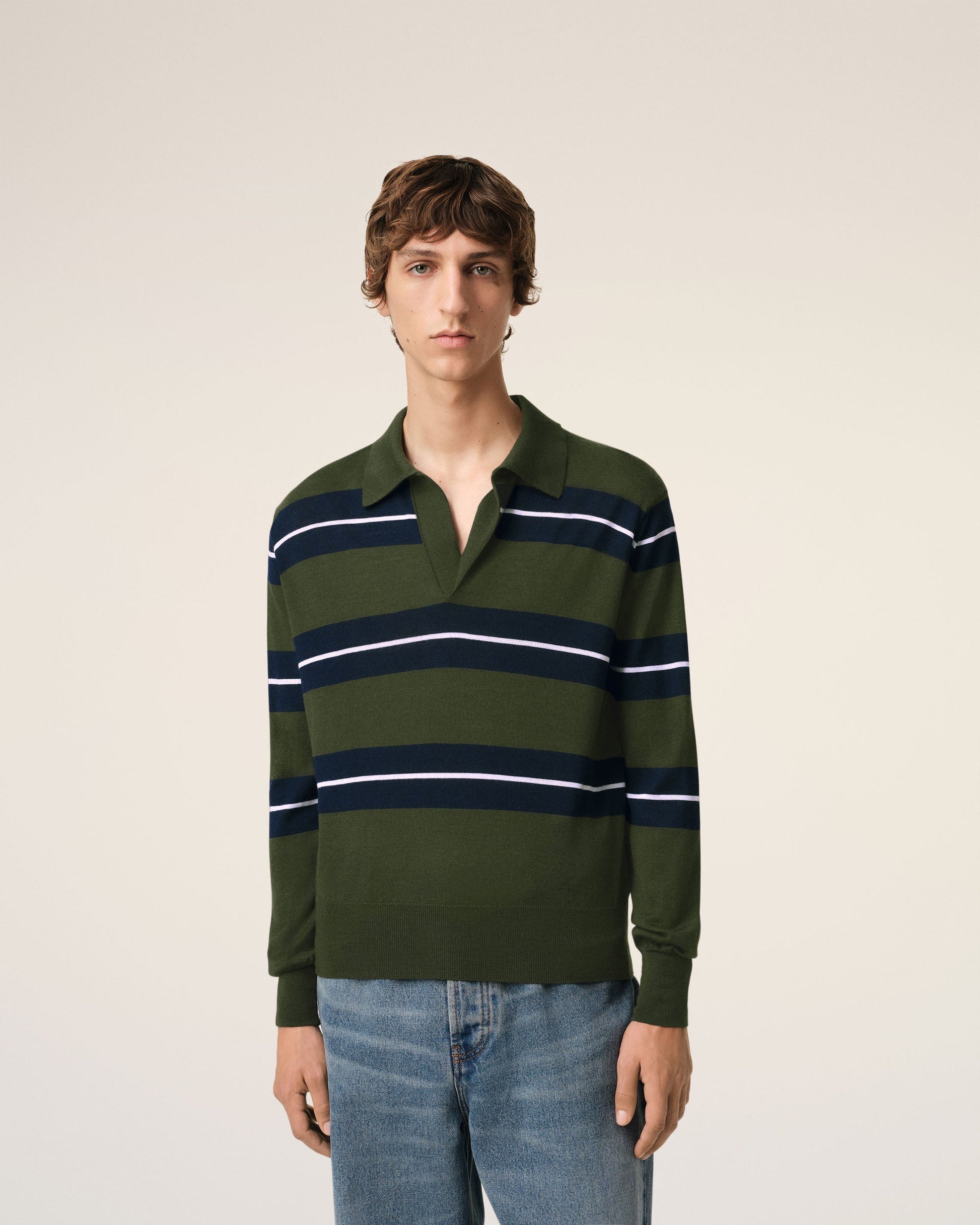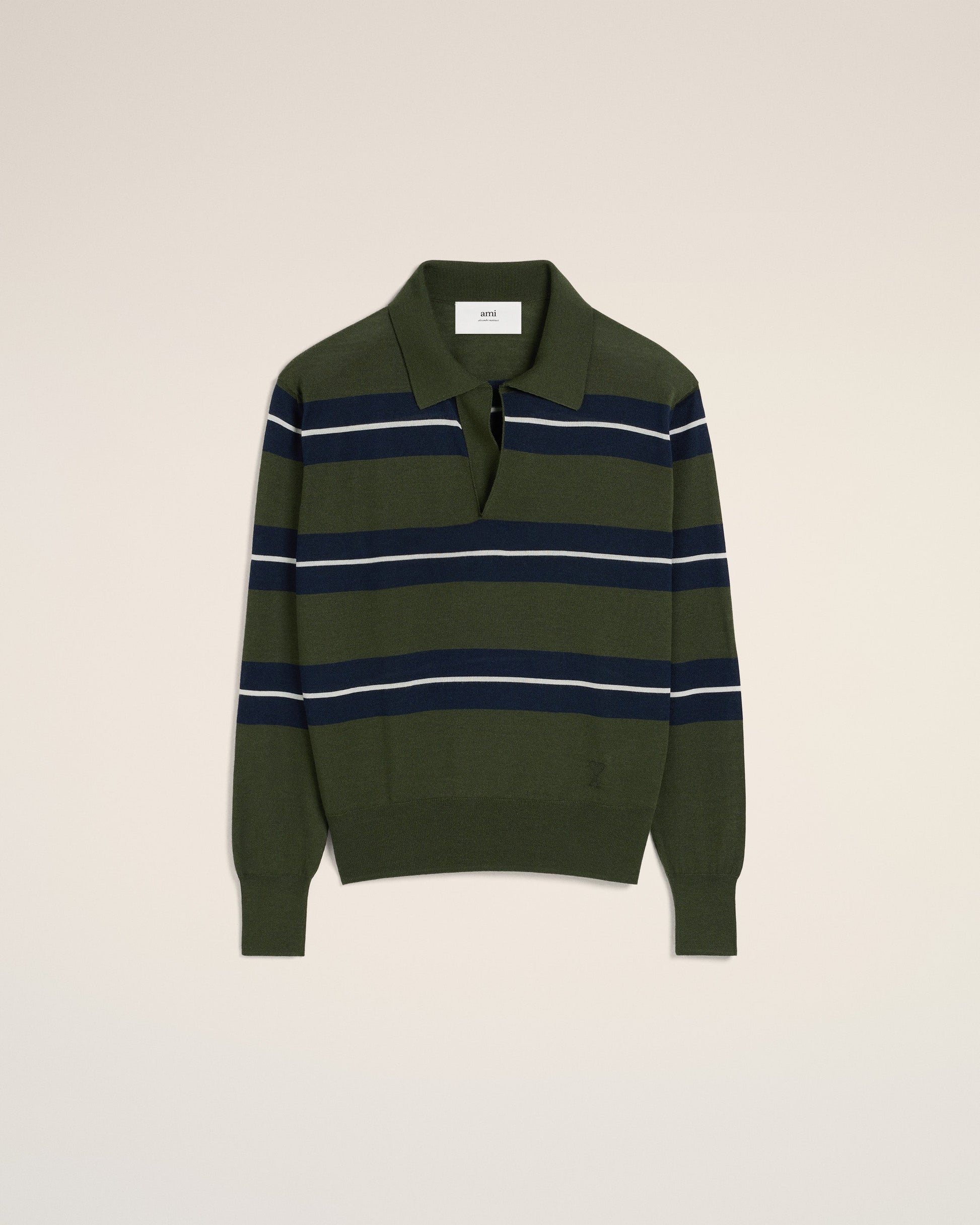 Polo in striped extrafine wool silk. Jersey stitch Tonal Ami de Coeur embroidery on body bottom 64 cm center back length (size M) Made in Italy (with love) REF: HPL376.KN0079.3765