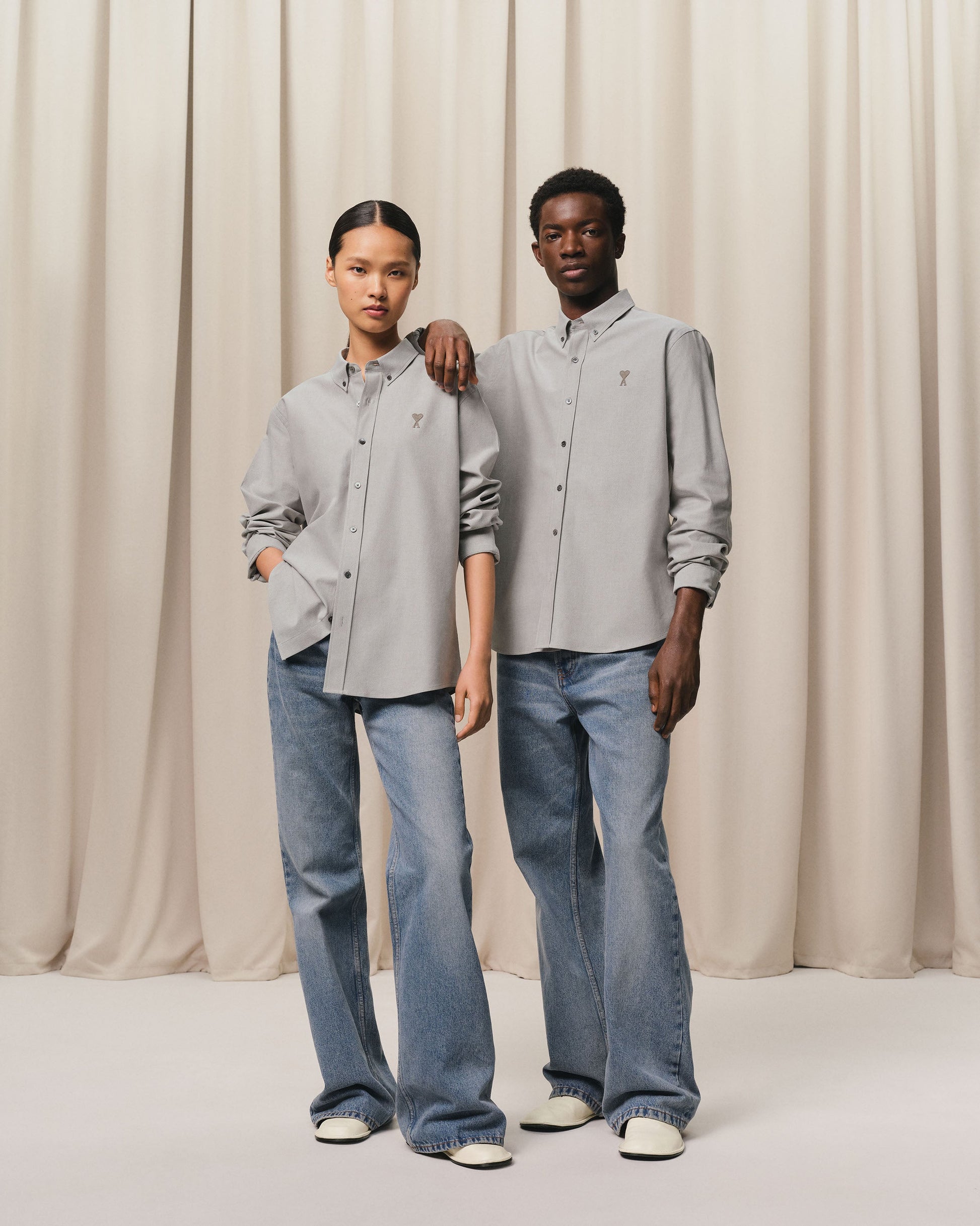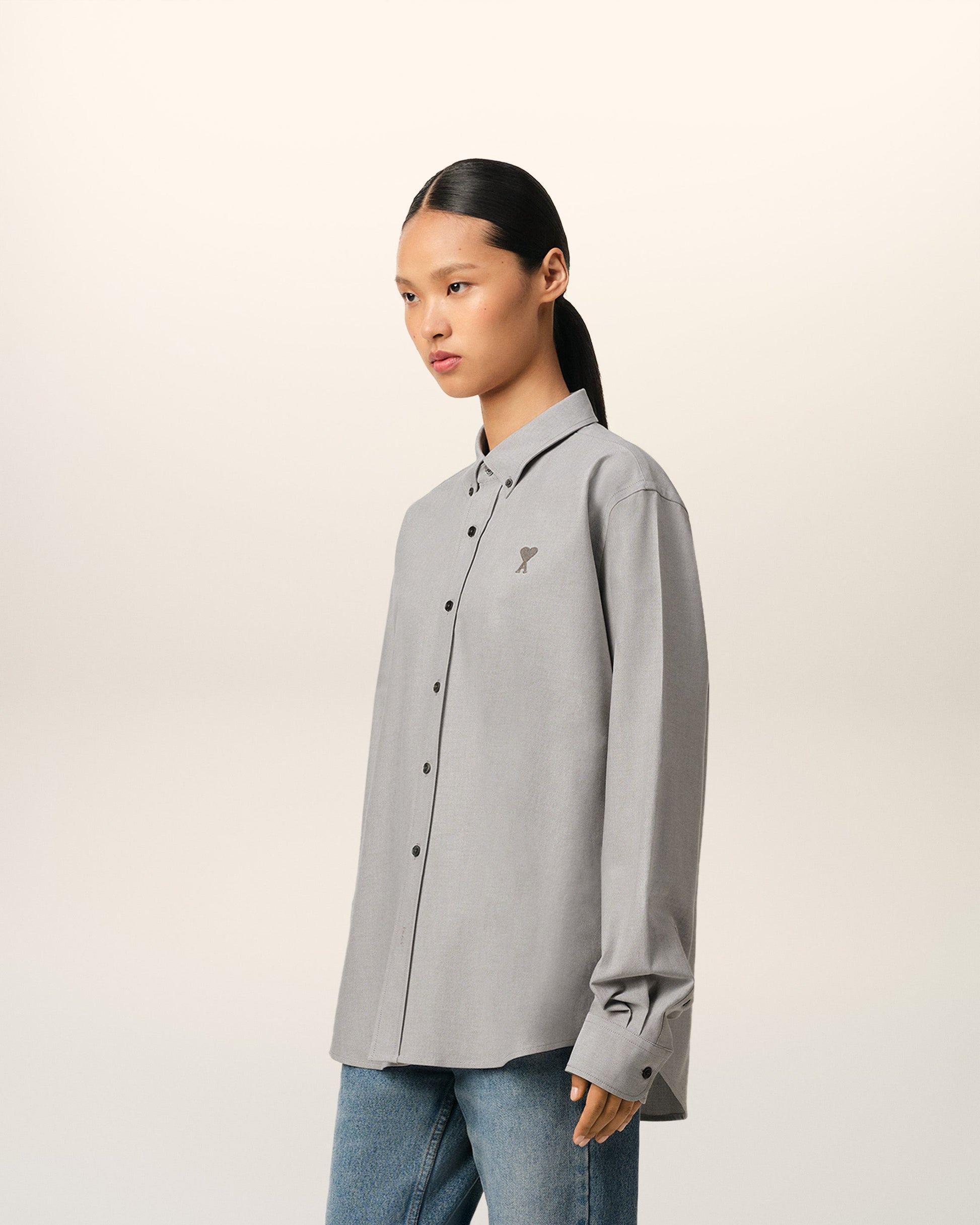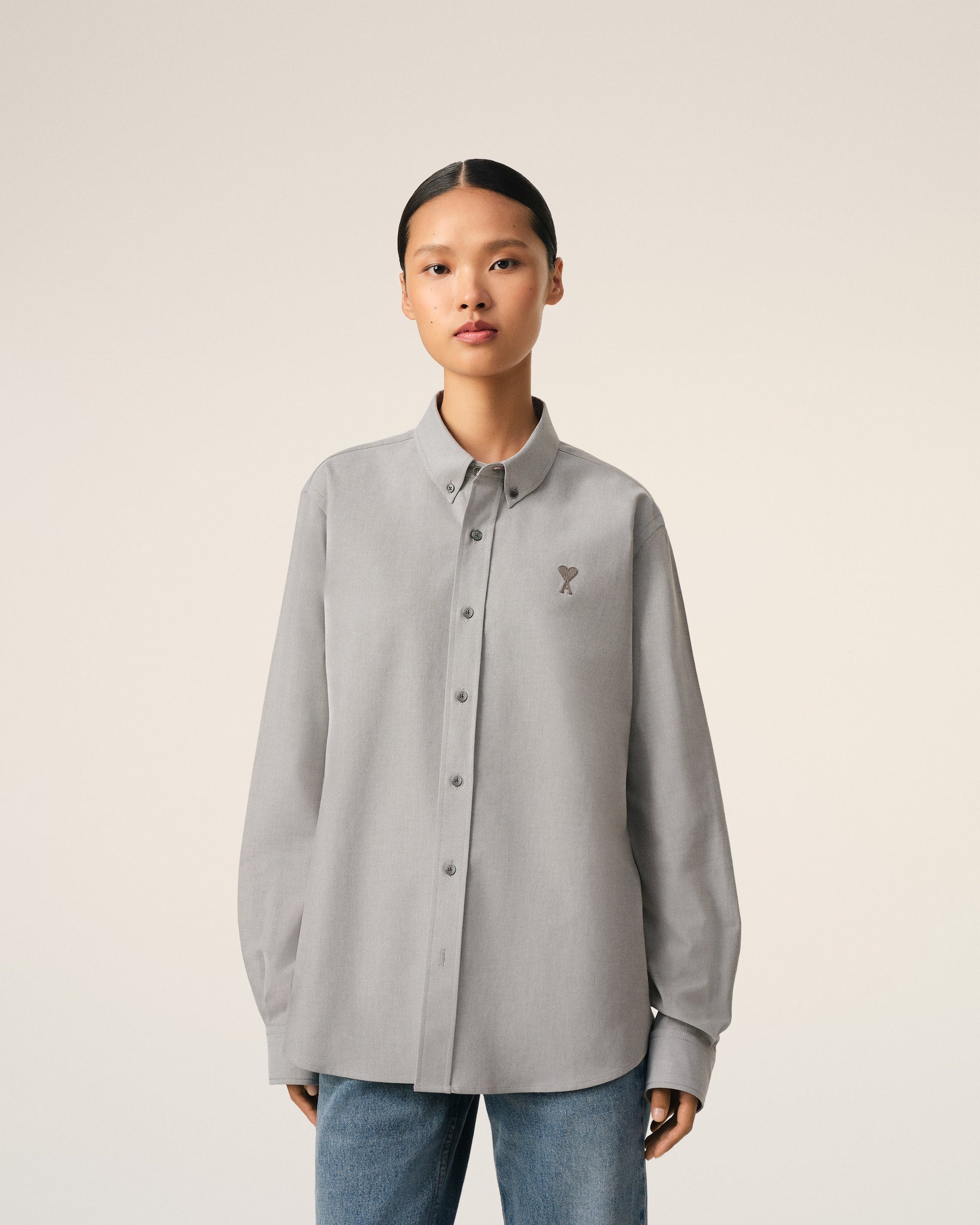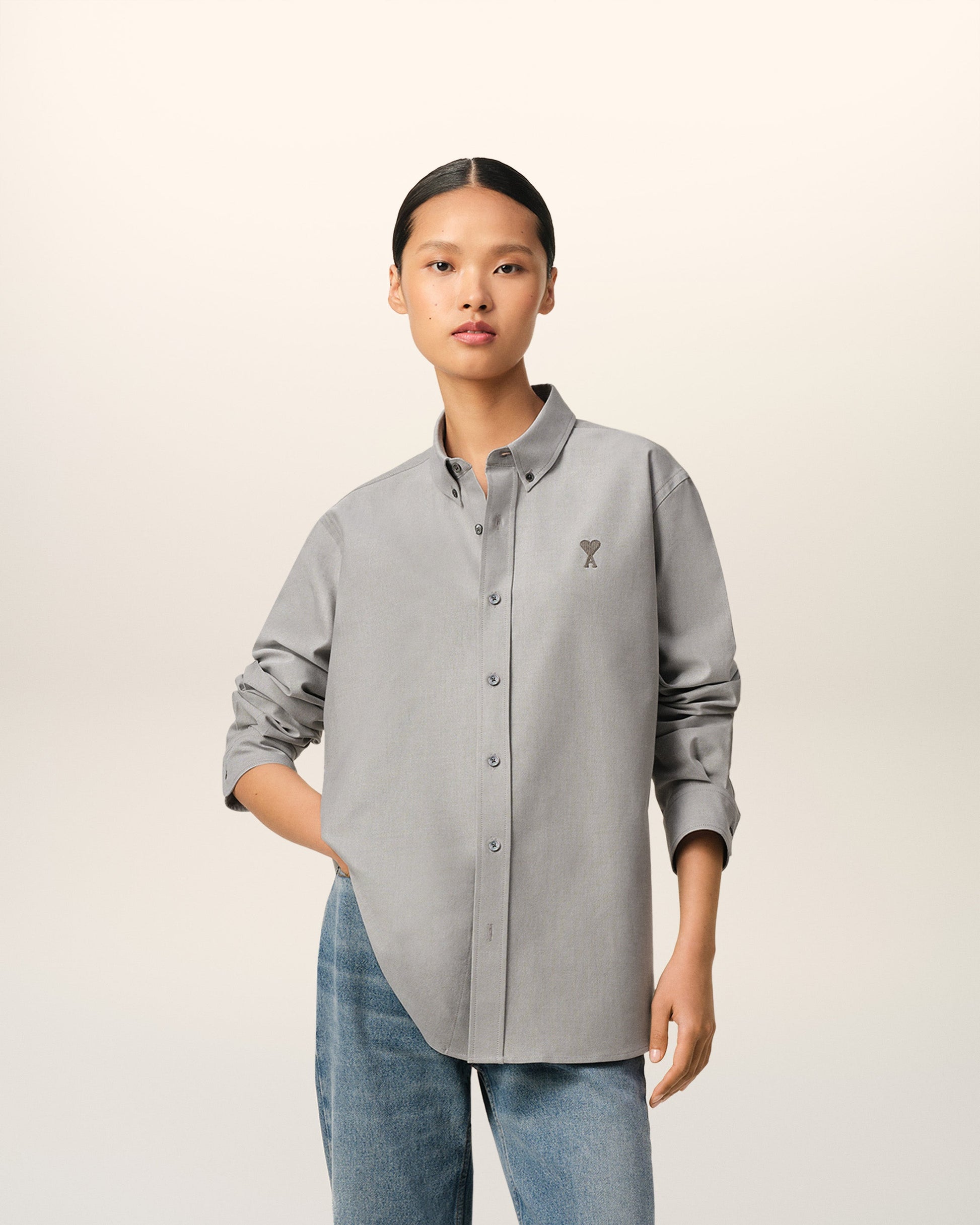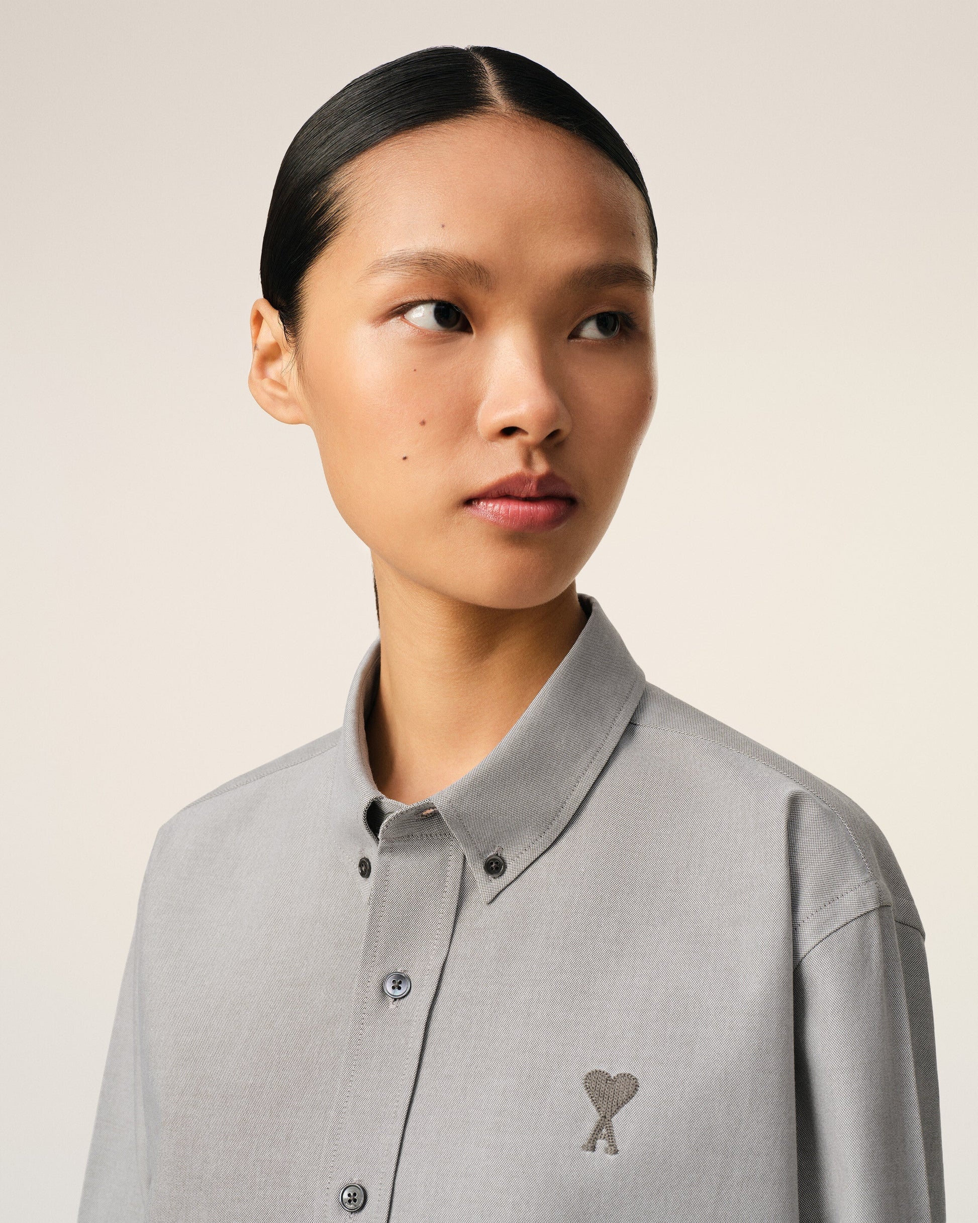Ami de Coeur button-down shirt in cotton oxford. Classic fit Unisex product 76 cm center back length (size XS) 77 cm center back length (size M) Tonal Ami de Coeur chest embroidery Button-down collar Buttoned tab on front and cuffs Mother-of-pearl buttons Made in Bulgaria (with love) REF: USH060.CO0031.376