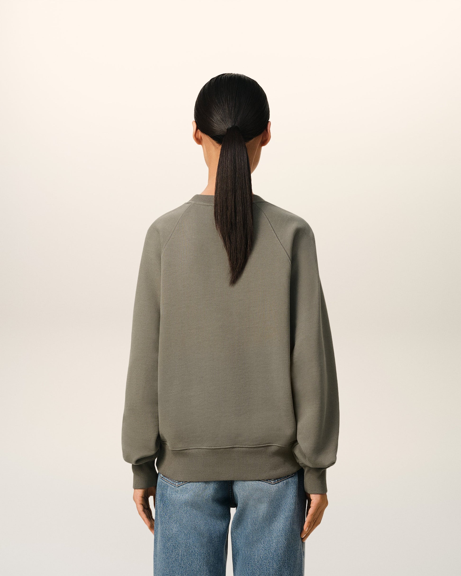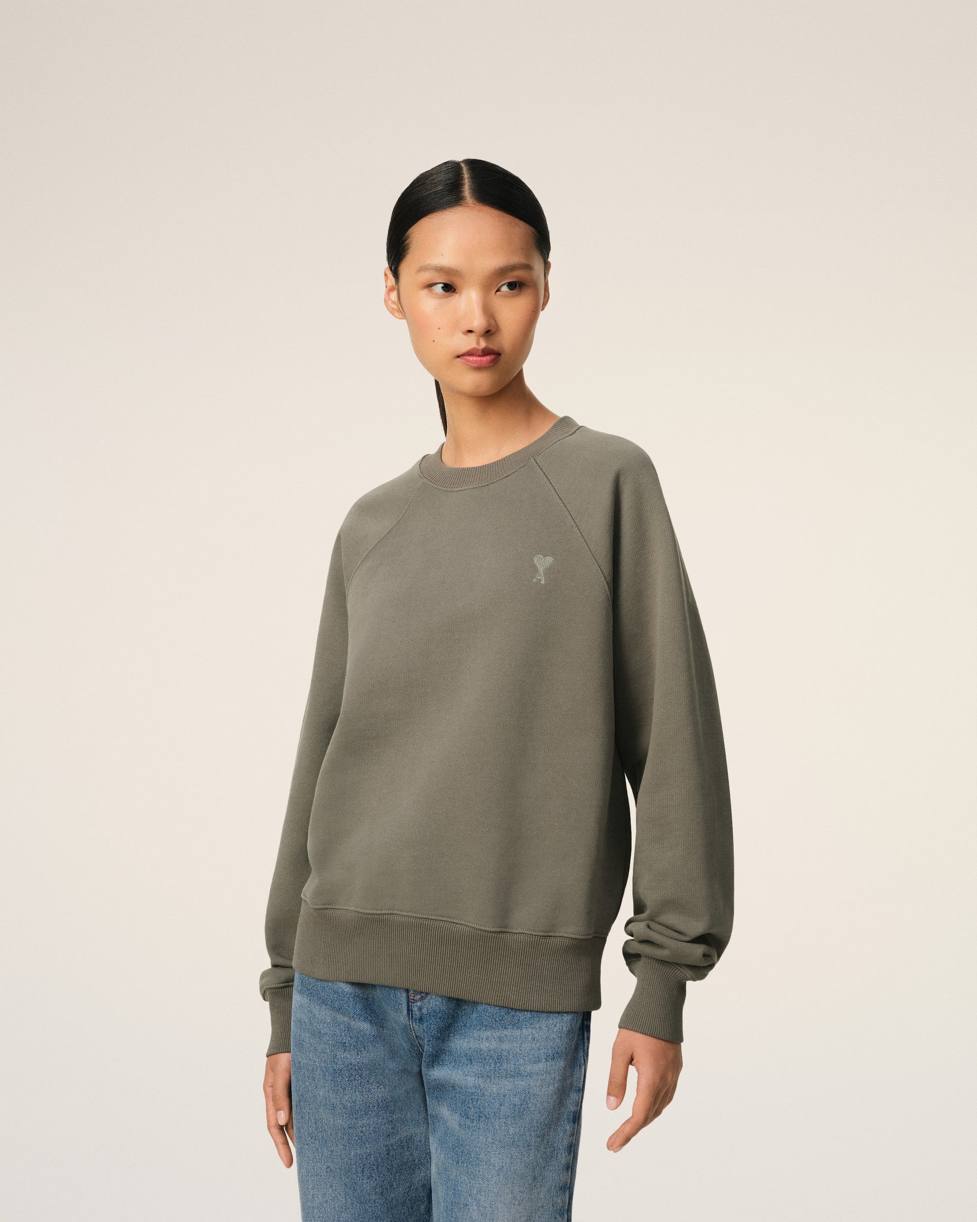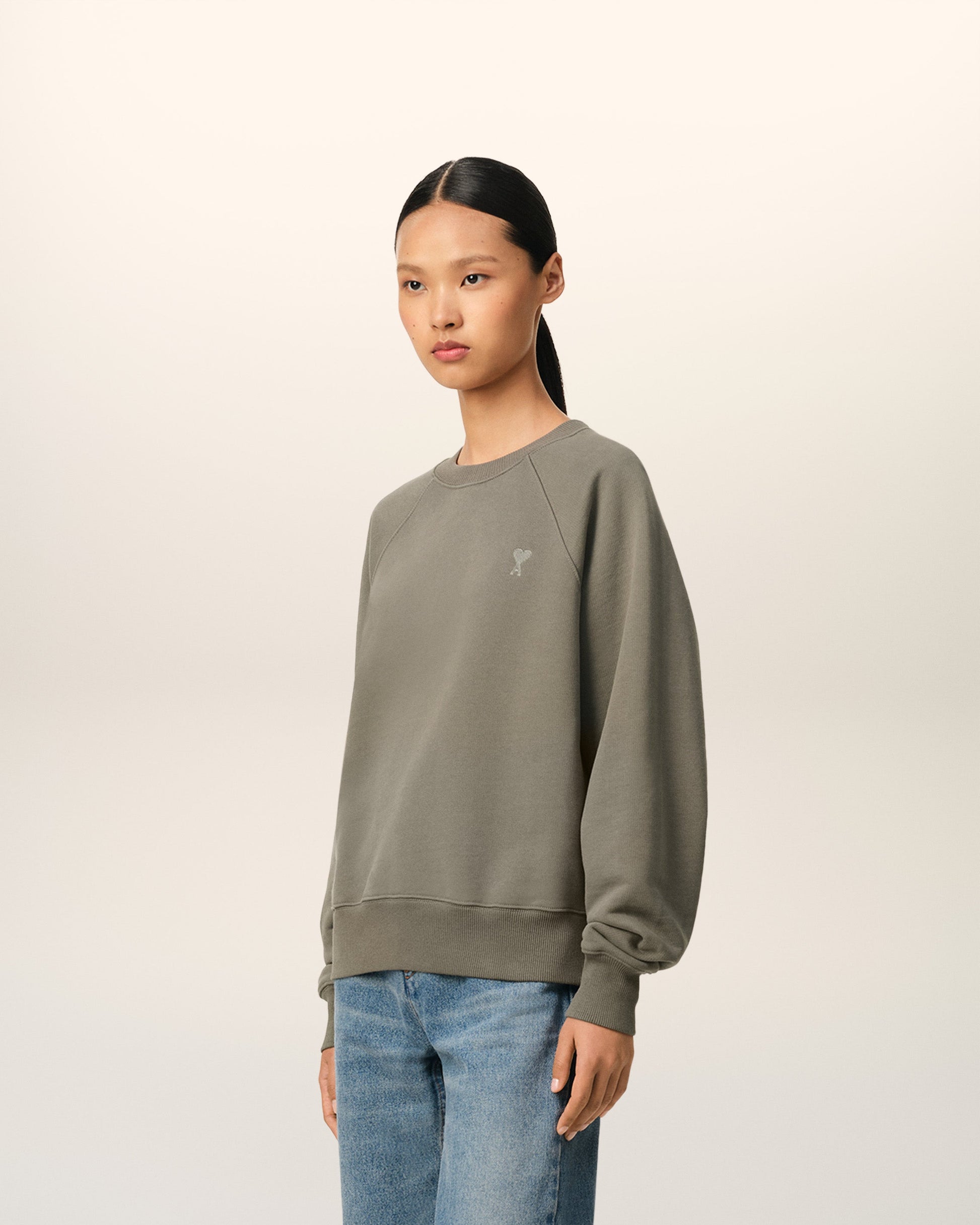 Ami de Coeur sweatshirt in heavy loopback organic cotton fleece. Boxy fit Unisex product 61 cm center back length (XS size) 65 cm center back length (M size) Tonal Ami de Coeur chest embroidery Tonal "AMI" embroidery under back neckline Raglan sleeves Made in Portugal (with love) REF: USW074.747.0953