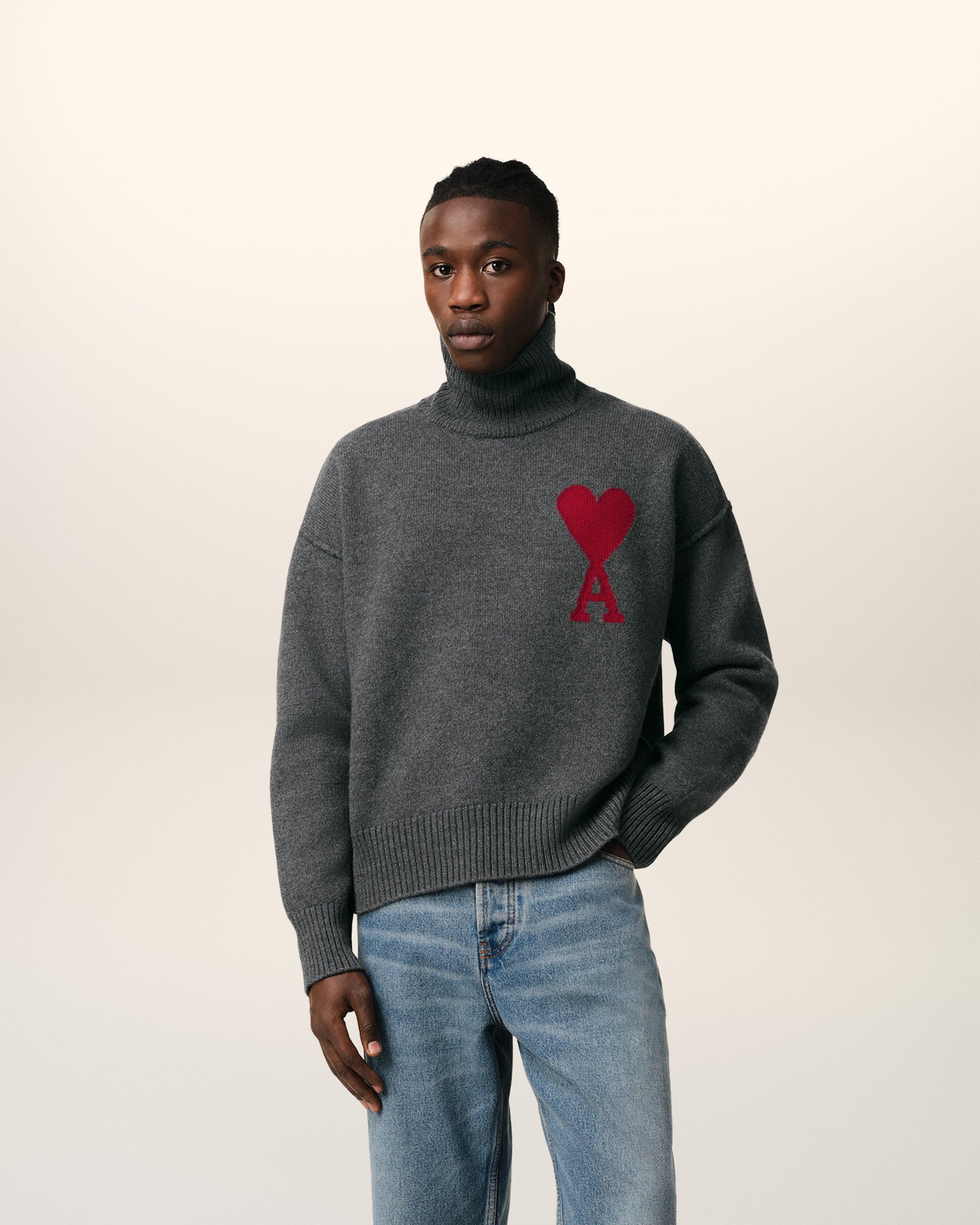Sweater in felted merino wool. Unisex product Jersey stitch Intarsia-knitted red Ami de Coeur on the chest Inside out seams 64 cm center back length (size M) 58 cm center back length (size XS) Made in Portugal (with love) REF: BFUKS406.018.084