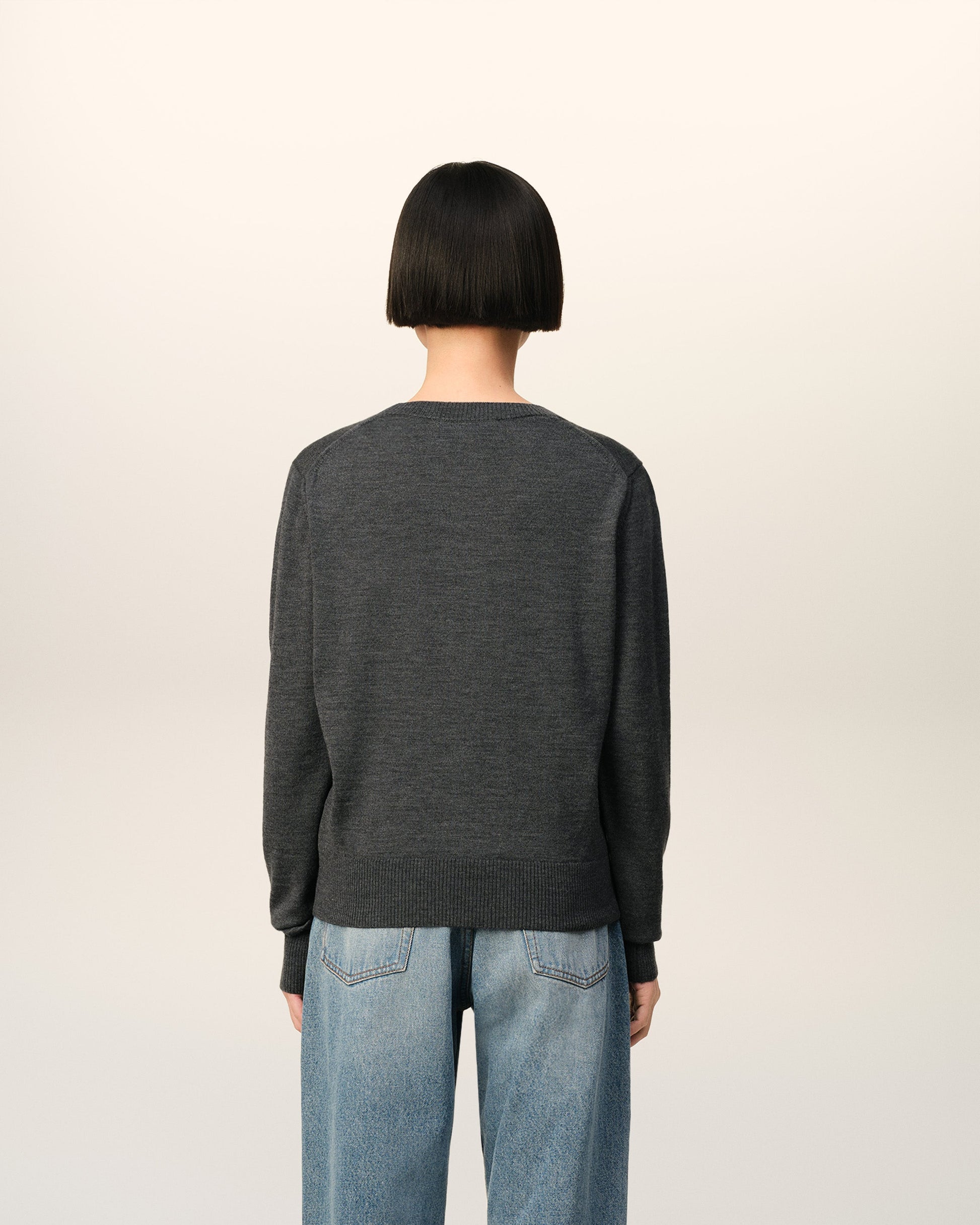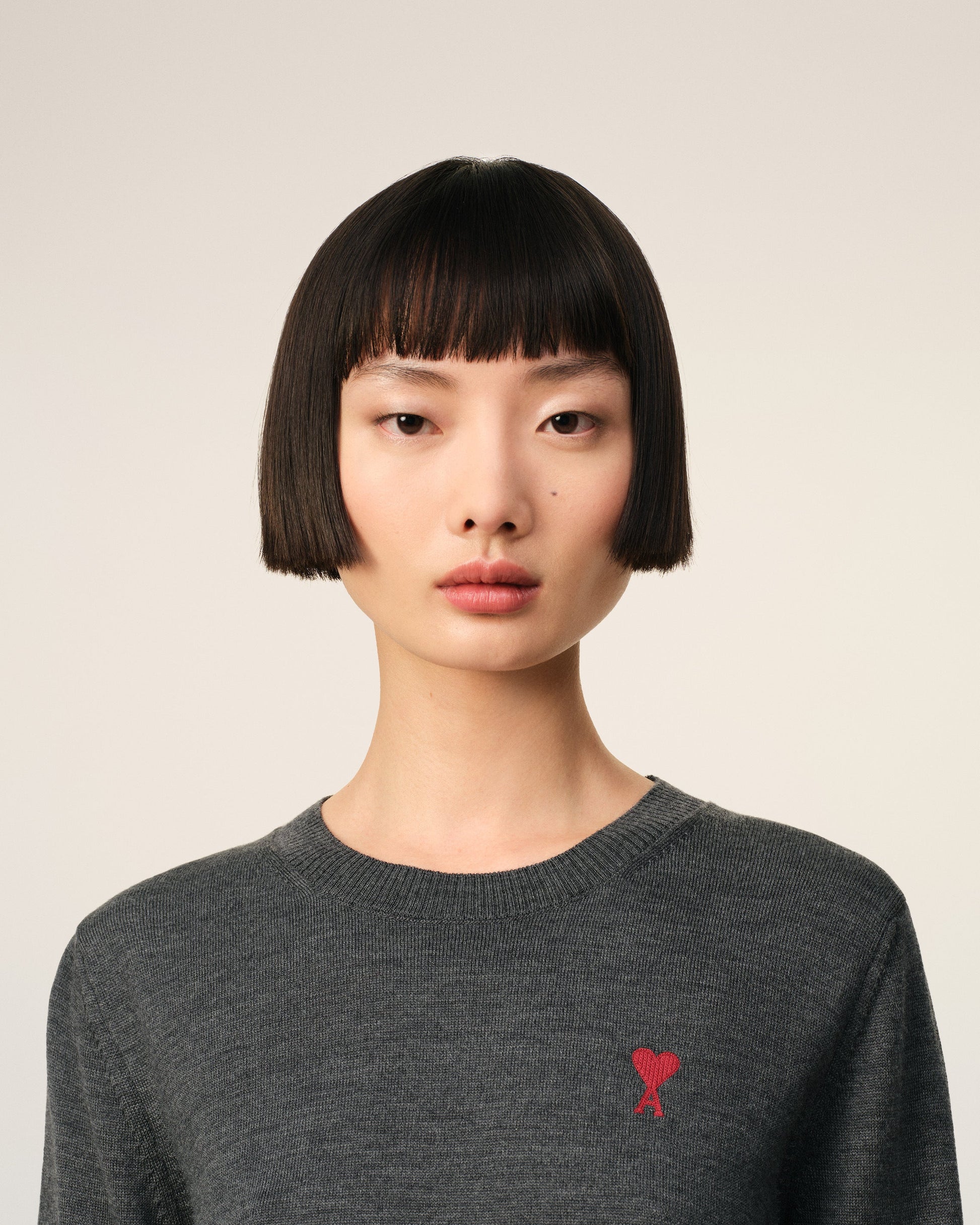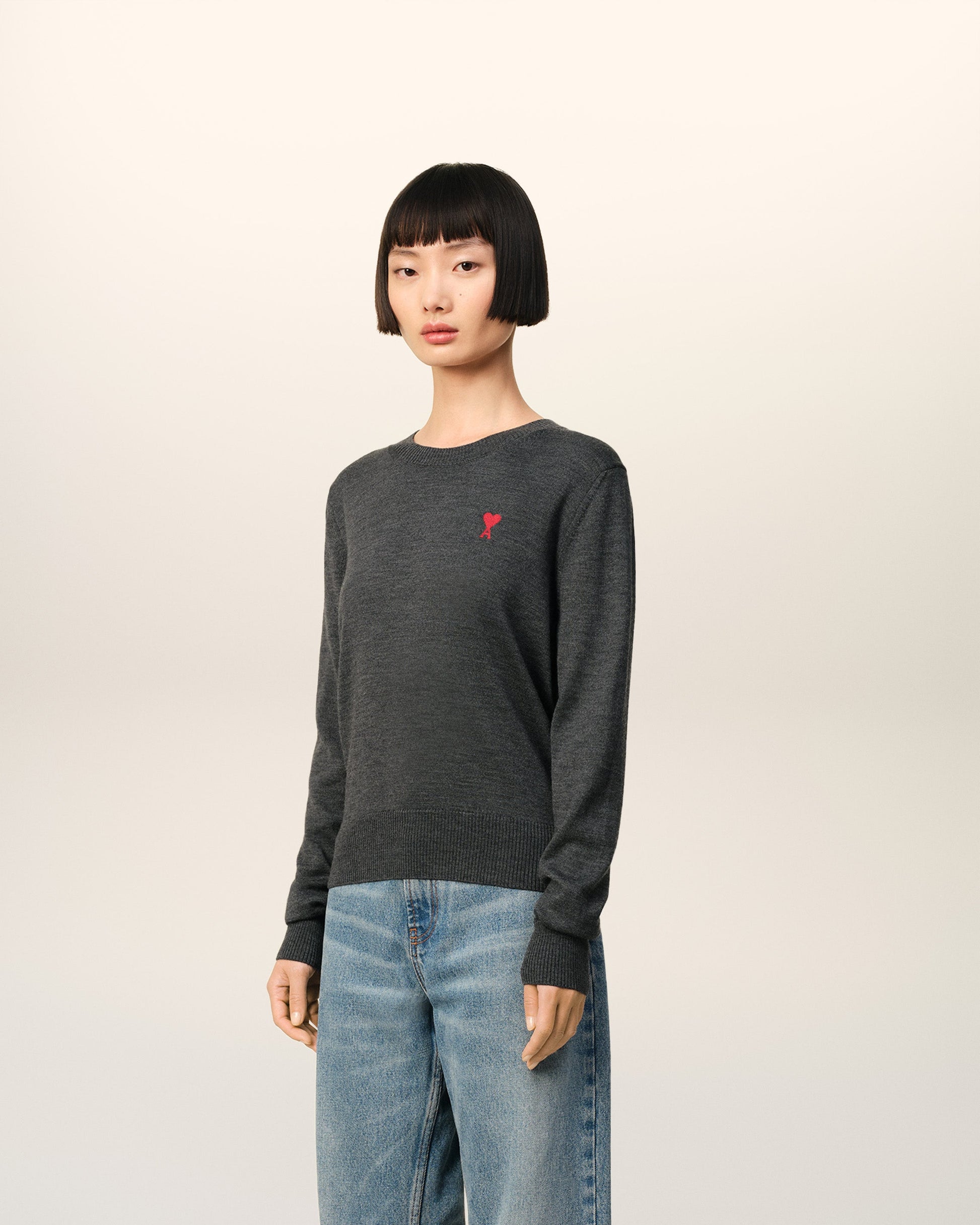 Sweater in classic merino wool. Jersey stitch Red Ami de Coeur chest embroidery 57 cm center back length (size S) Made in Portugal (with love) REF : FKS111.KN0025.055