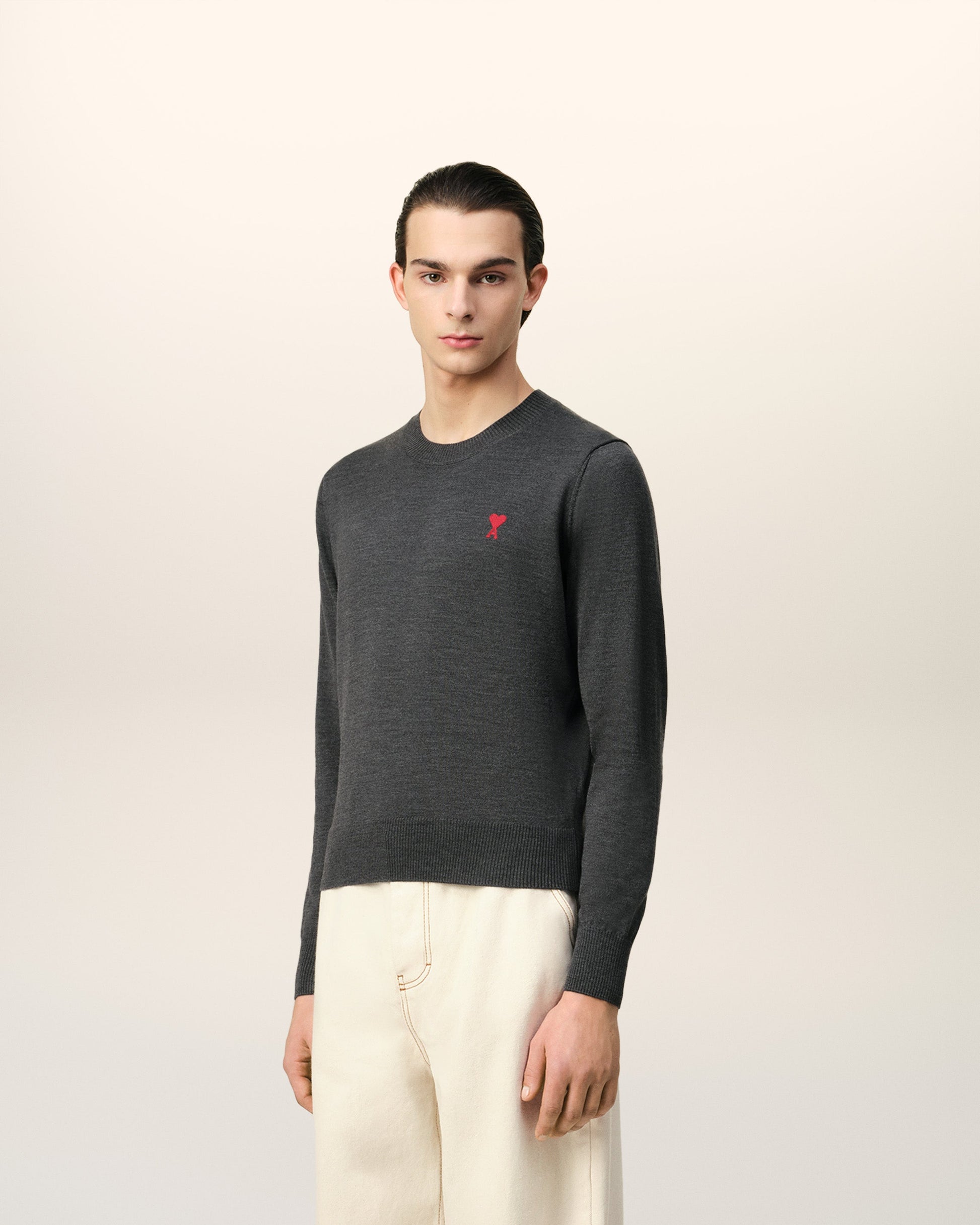 Sweater in classic merino wool. Jersey stitch Red Ami de Coeur chest embroidery 64 cm center back length (size M) Made in Portugal (with love) REF : HKS111.KN0025.055