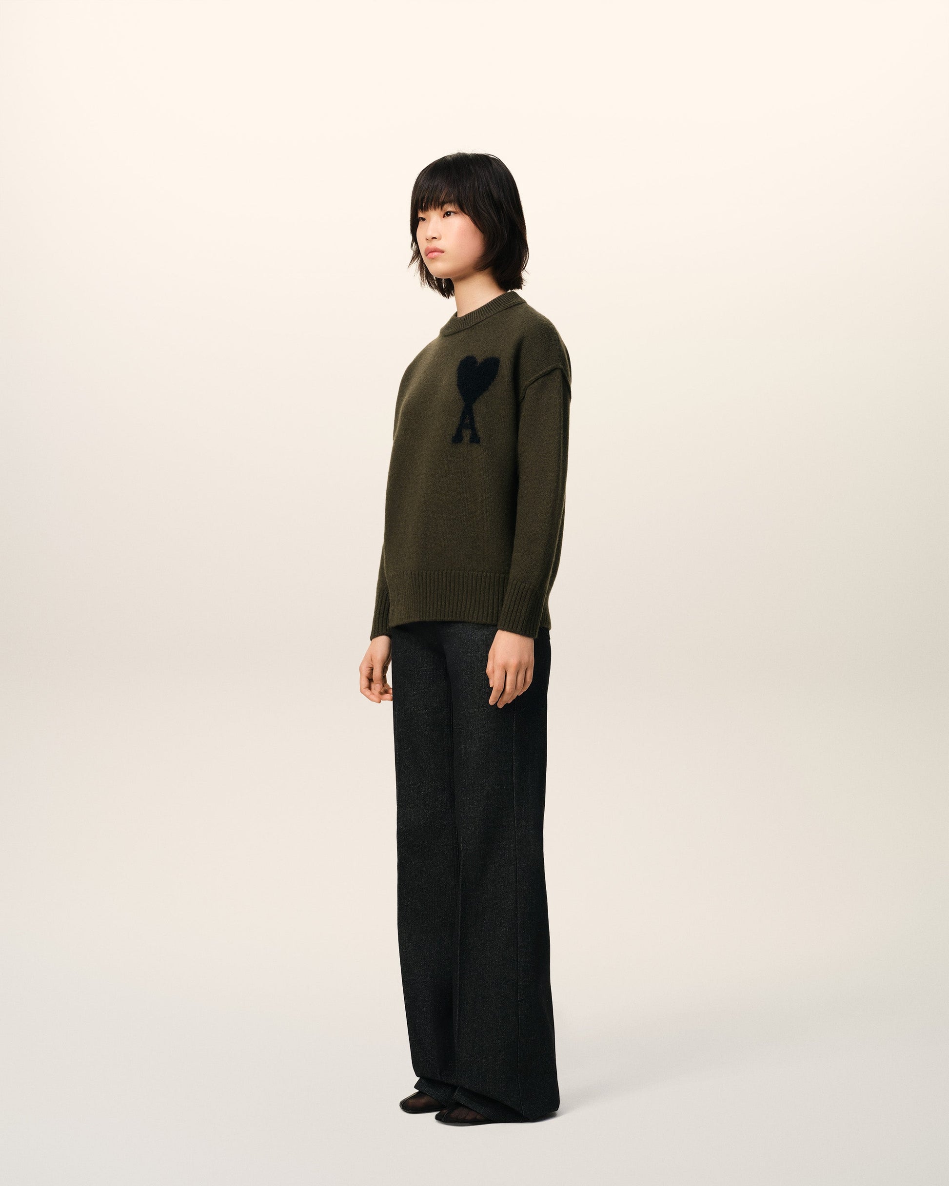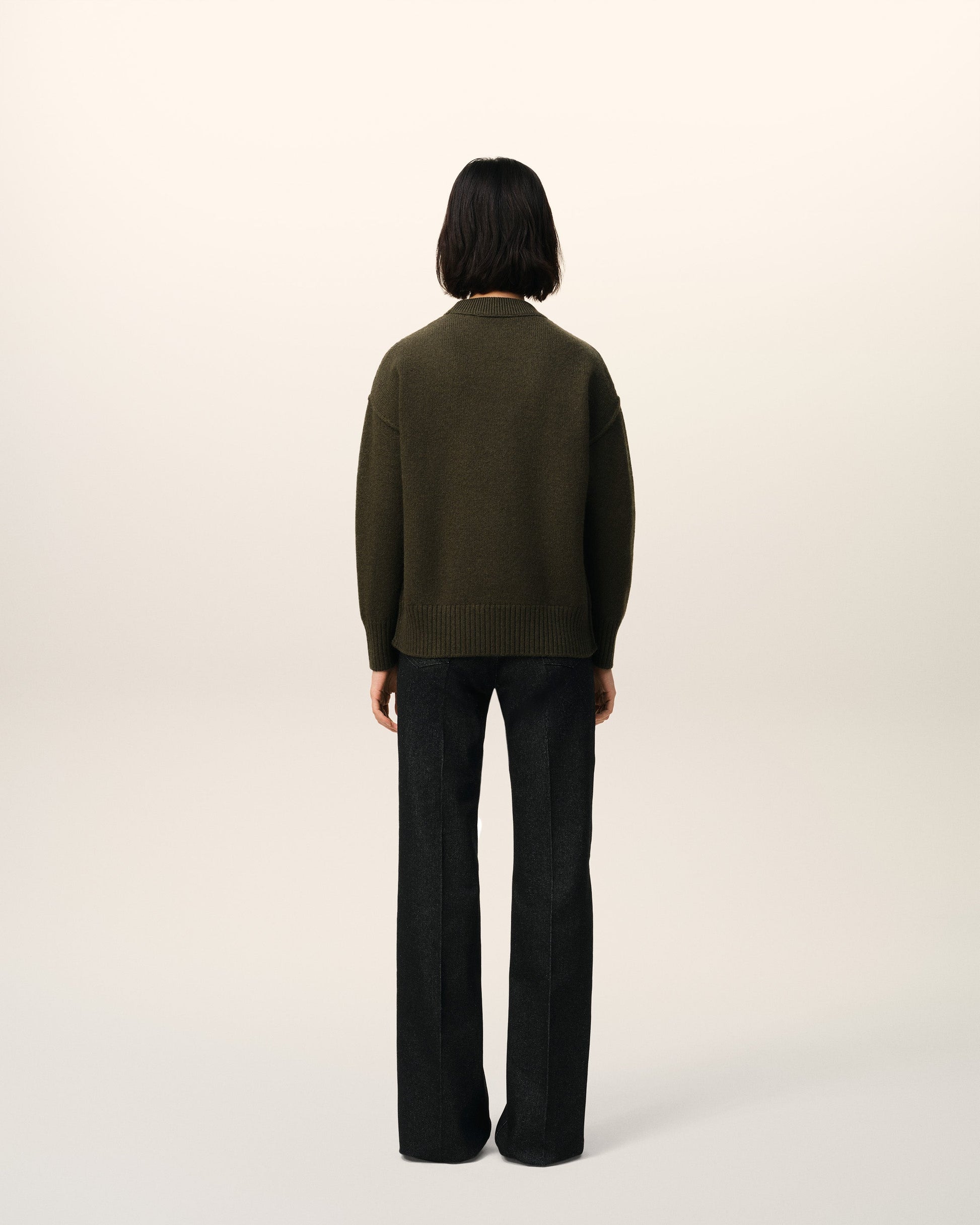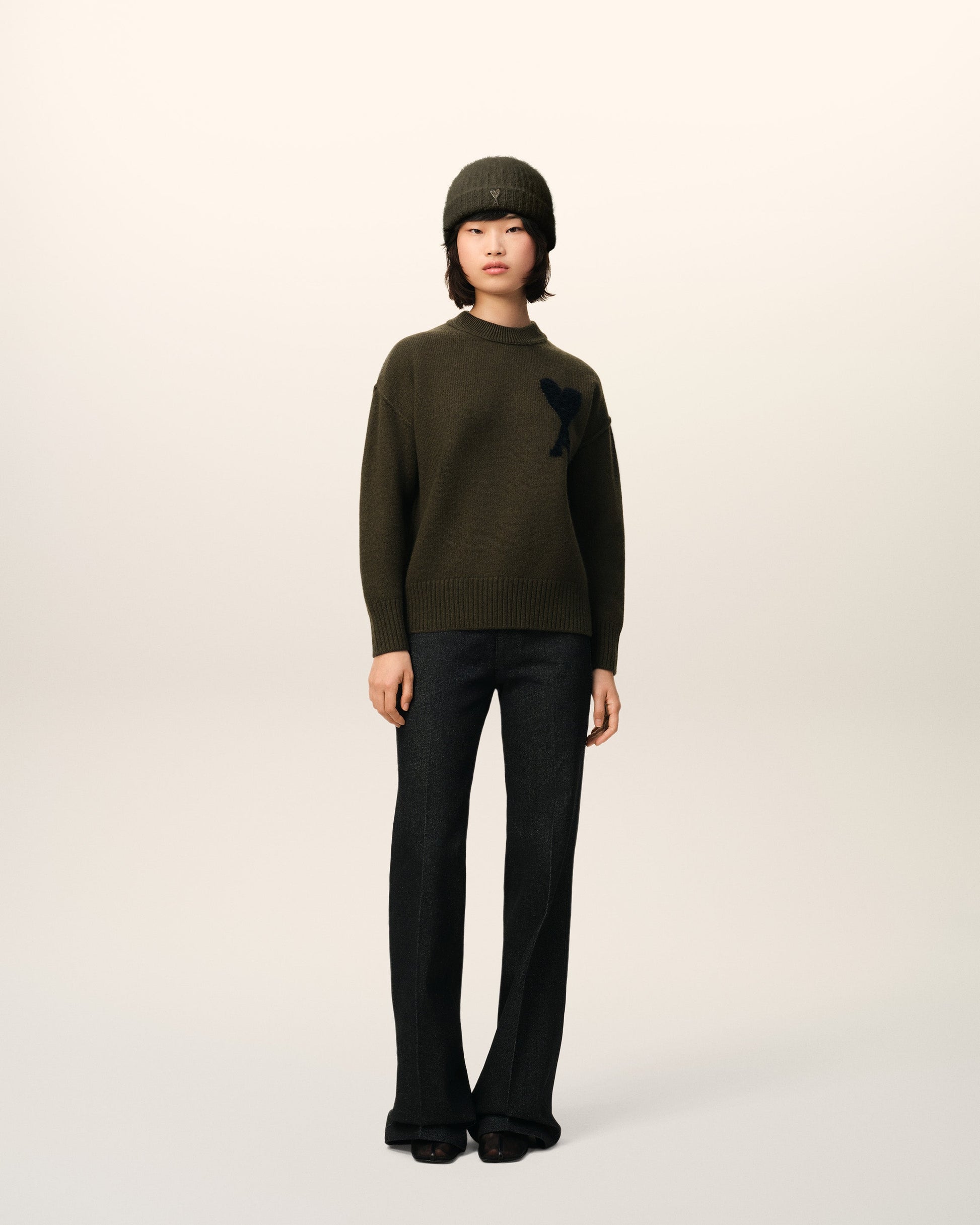 Sweater in felted merino wool. Unisex product Intarsia knitted black Ami de Coeur on the chest Inside out seams 62 cm center back length (size M) 56 cm center back length (size XS) Made in Italy (with love) REF: SPUKS018.018.024
