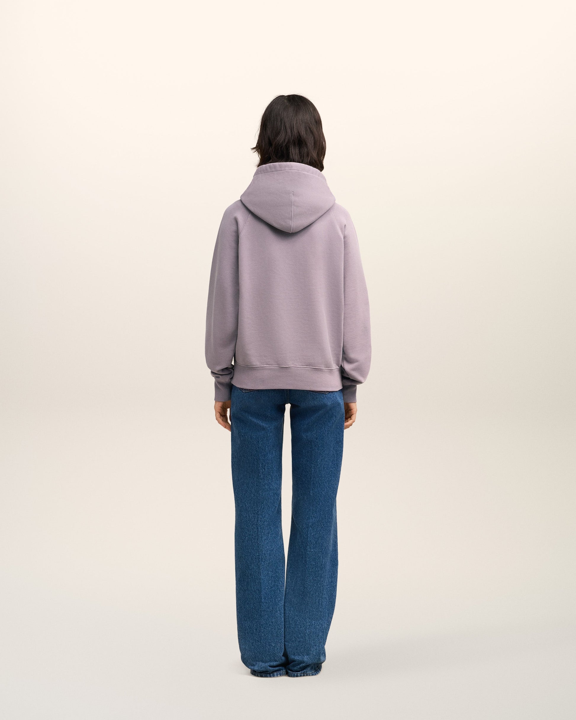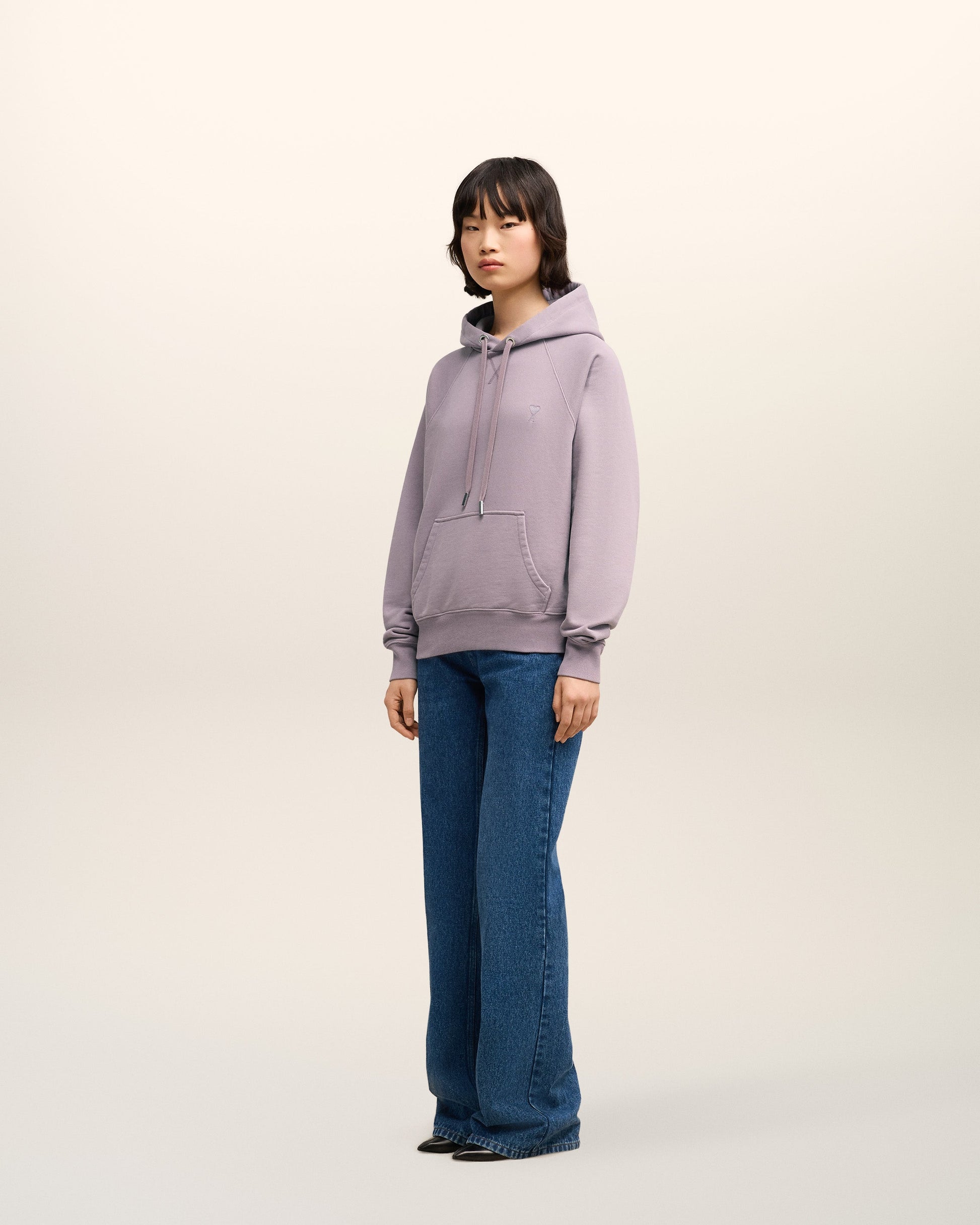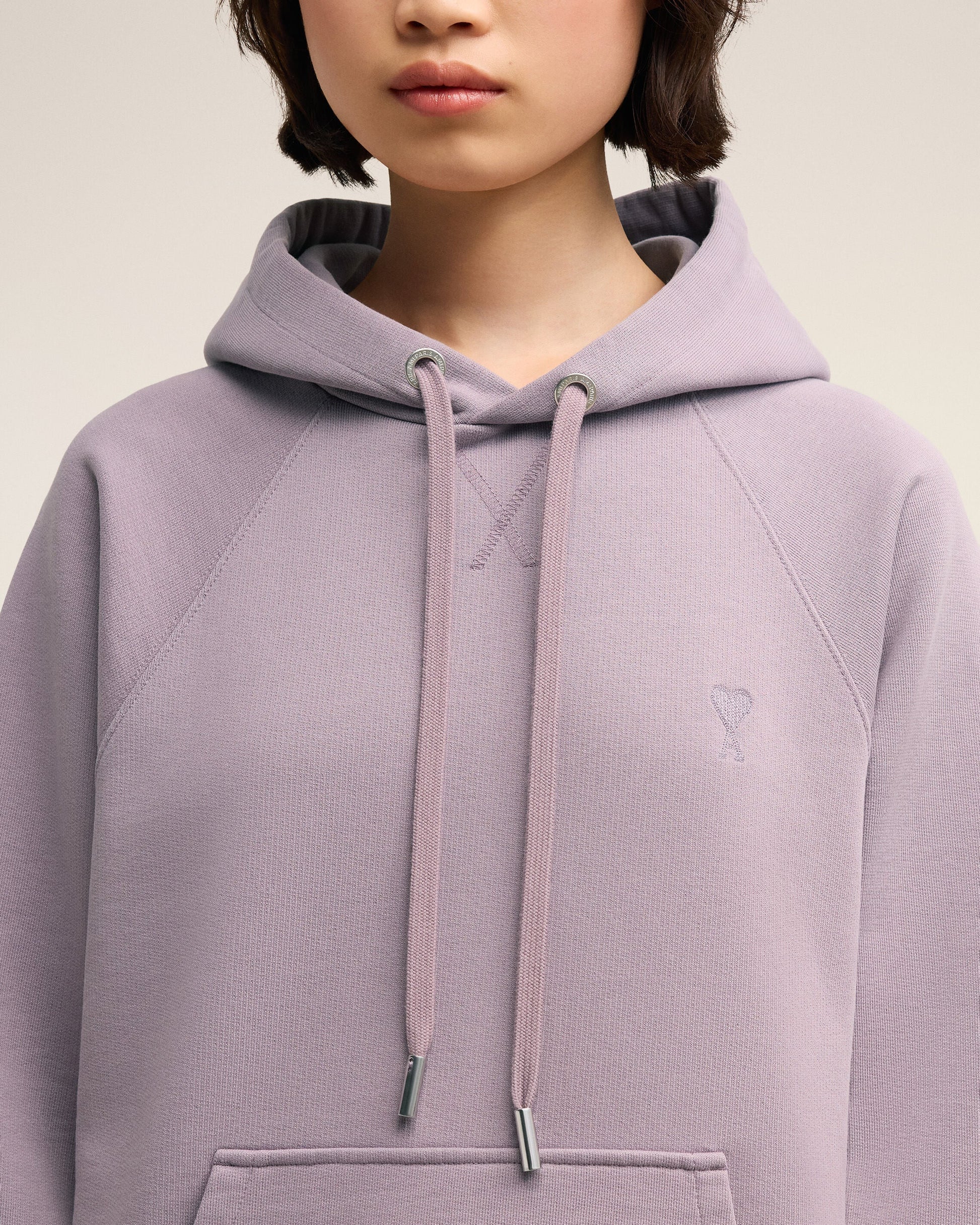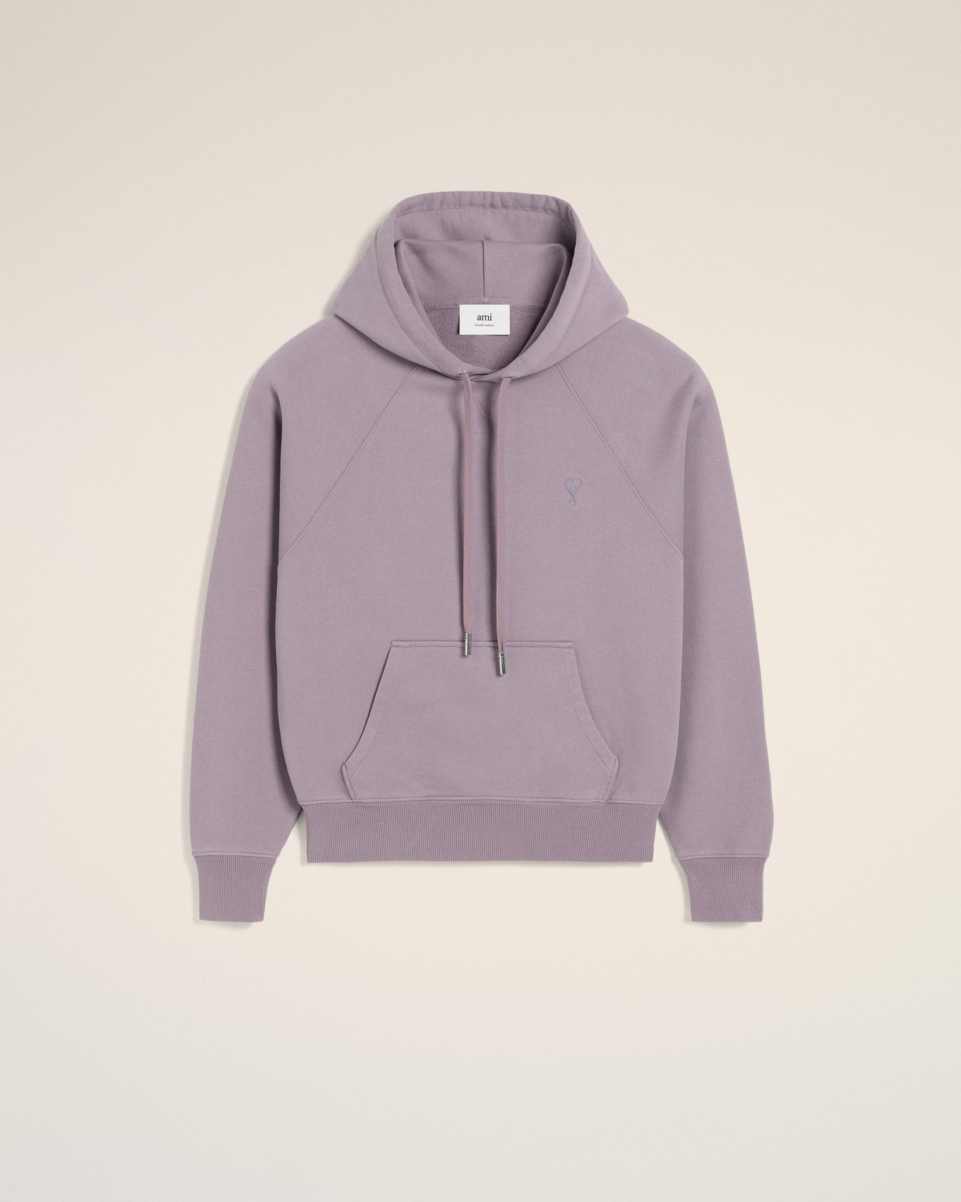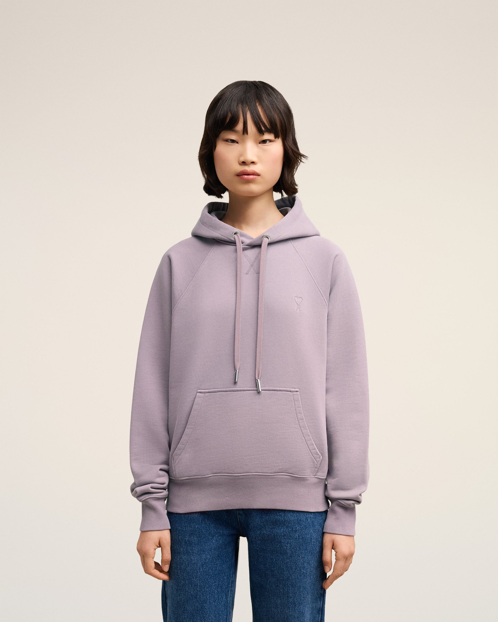 Hoodie in heavy loopback organic cotton fleece. Boxy fit Unisex product 61 cm center back length (XS size) 65 cm center back length (M size) Tonal Ami de Coeur chest embroidery Tonal "AMI" embroidery on the back Raglan sleeves Nickel color metal ends and "ami" engraved eyelets Garment dye style with a wash effect Made in Portugal (with love) REF : USW240.JE0091.504