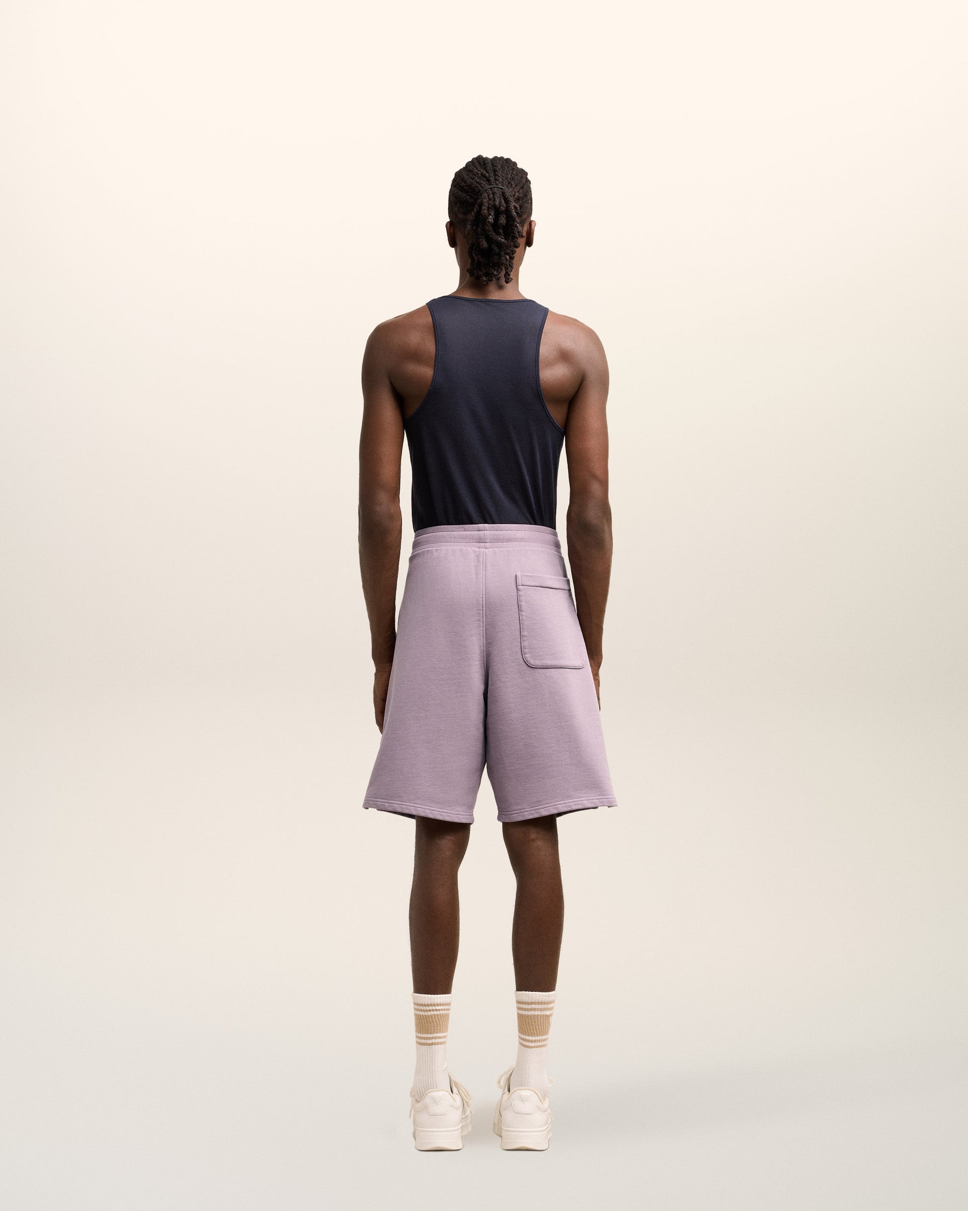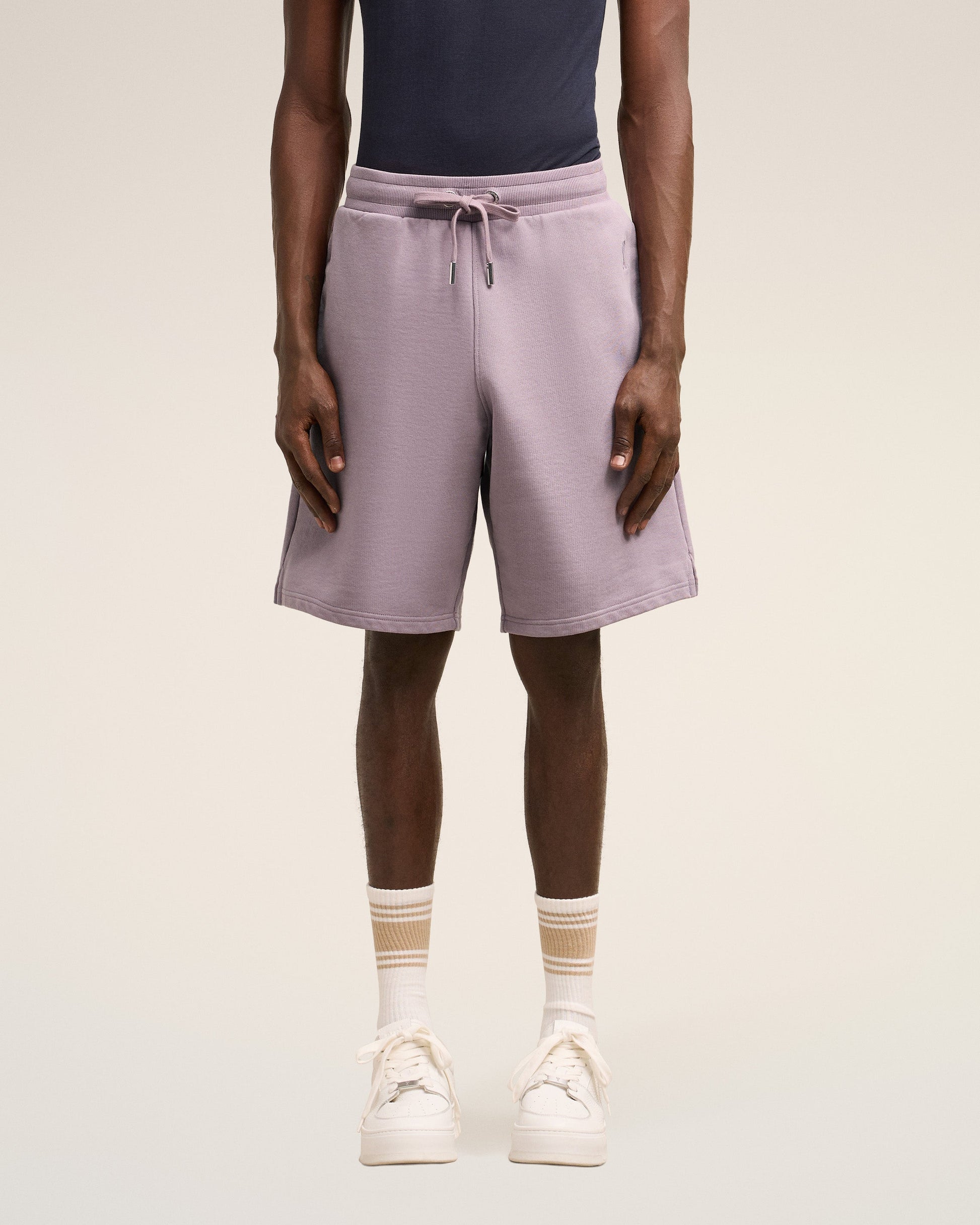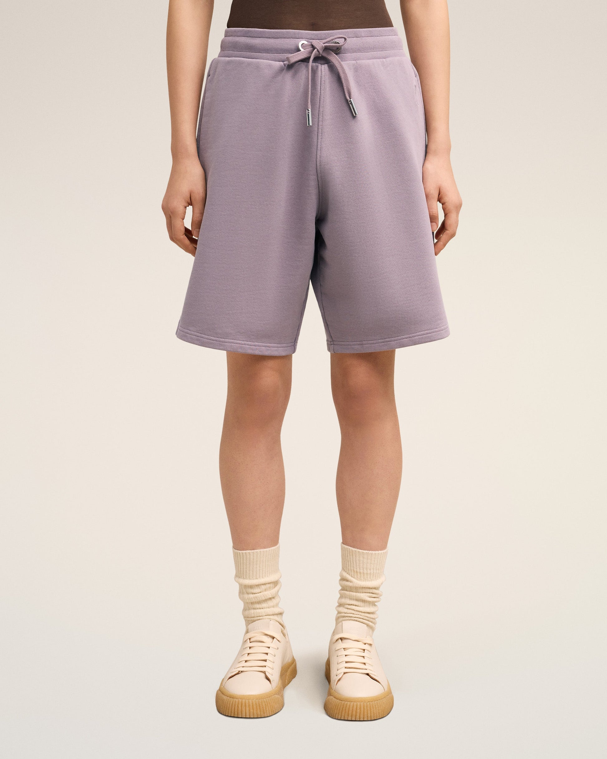 Ami de Coeur short in heavy loopback organic cotton fleece. Boxy fit Unisex product 27 cm bottom leg width (XS size) 29 cm bottom leg width (M size) Tonal Ami de Coeur embroidery Side pockets External waist drawstring Tonal color metal ends and "ami" engraved eyelets Garment dye style with a wash effect Made in Portugal (with love) REF : USO640.JE0091.504