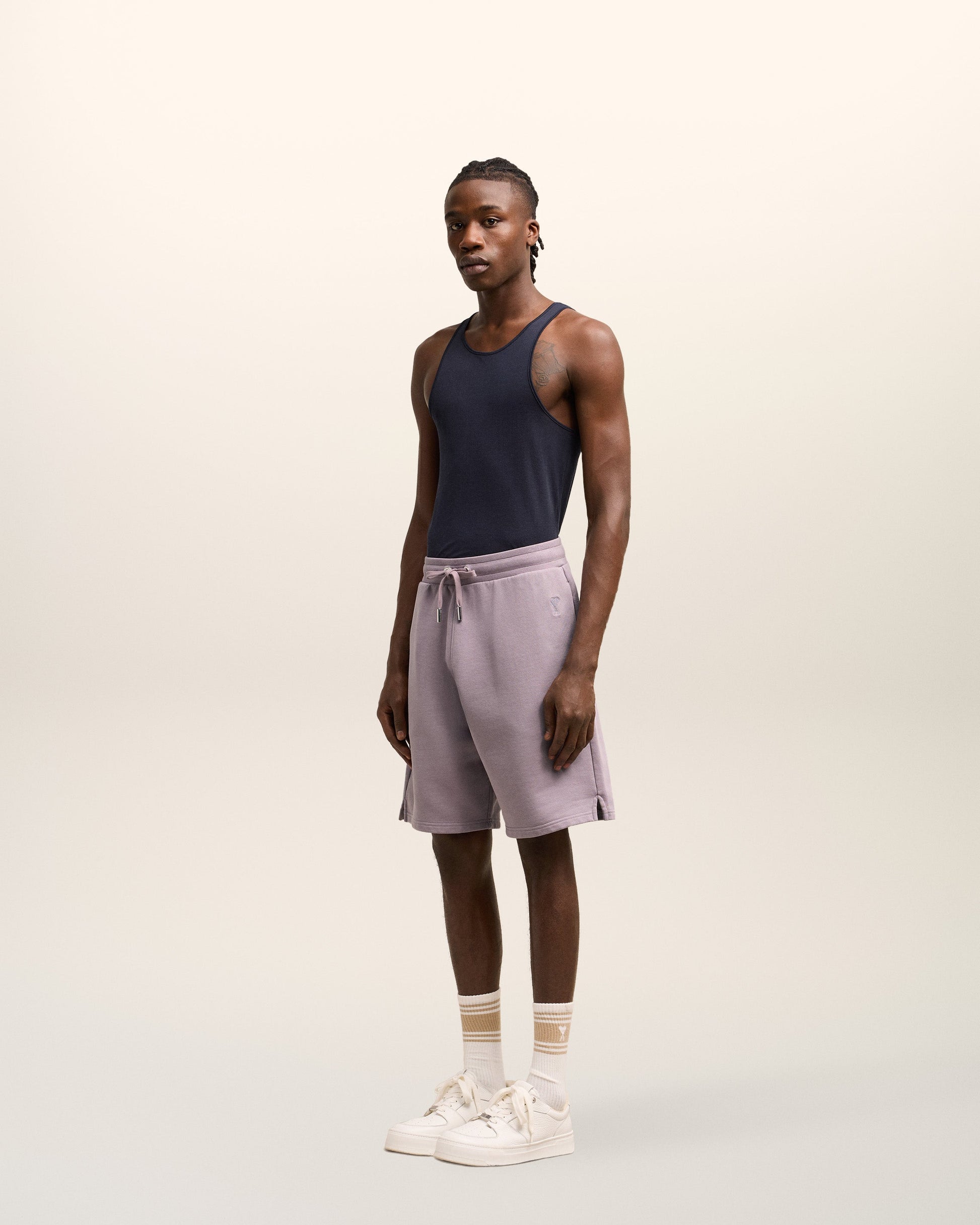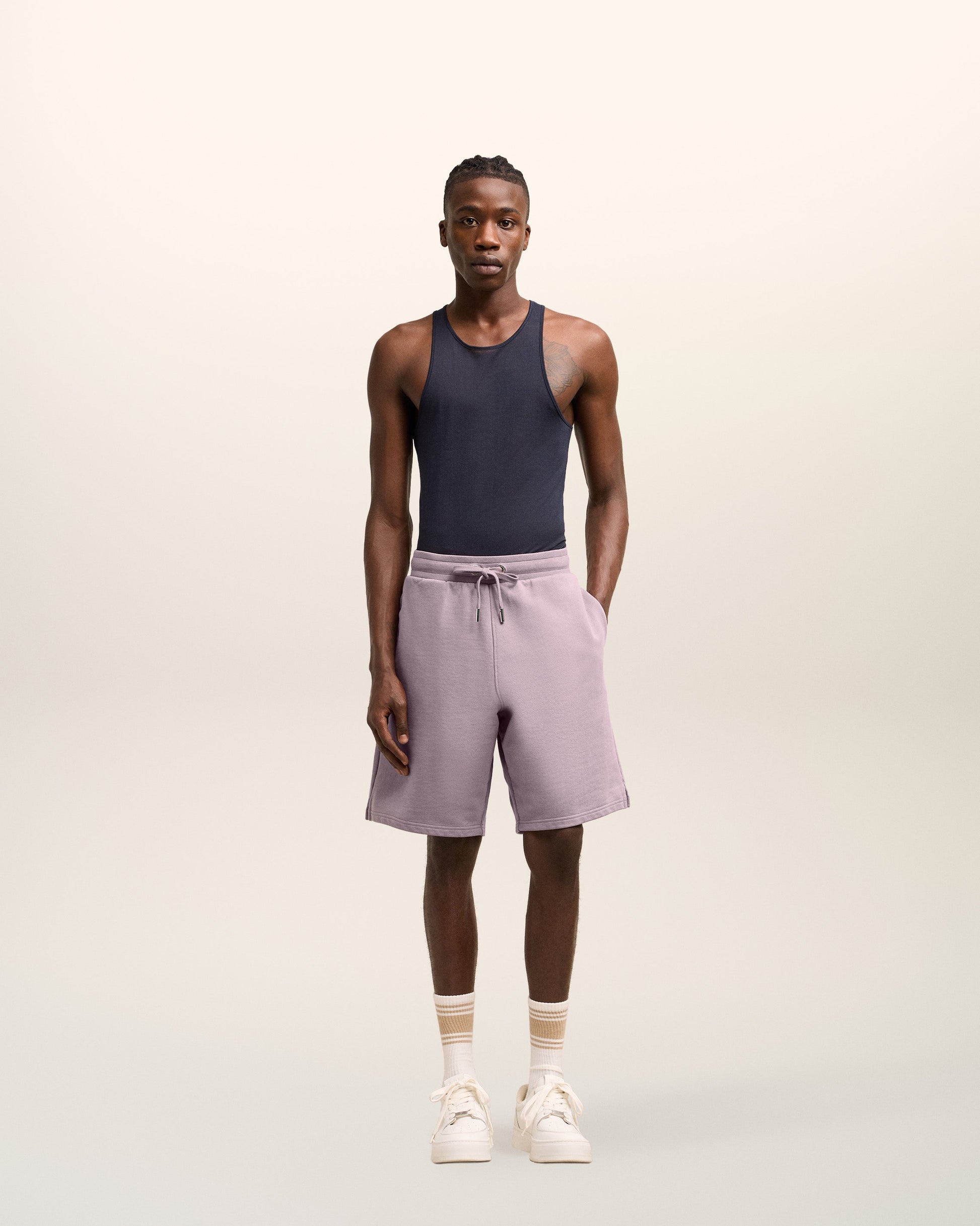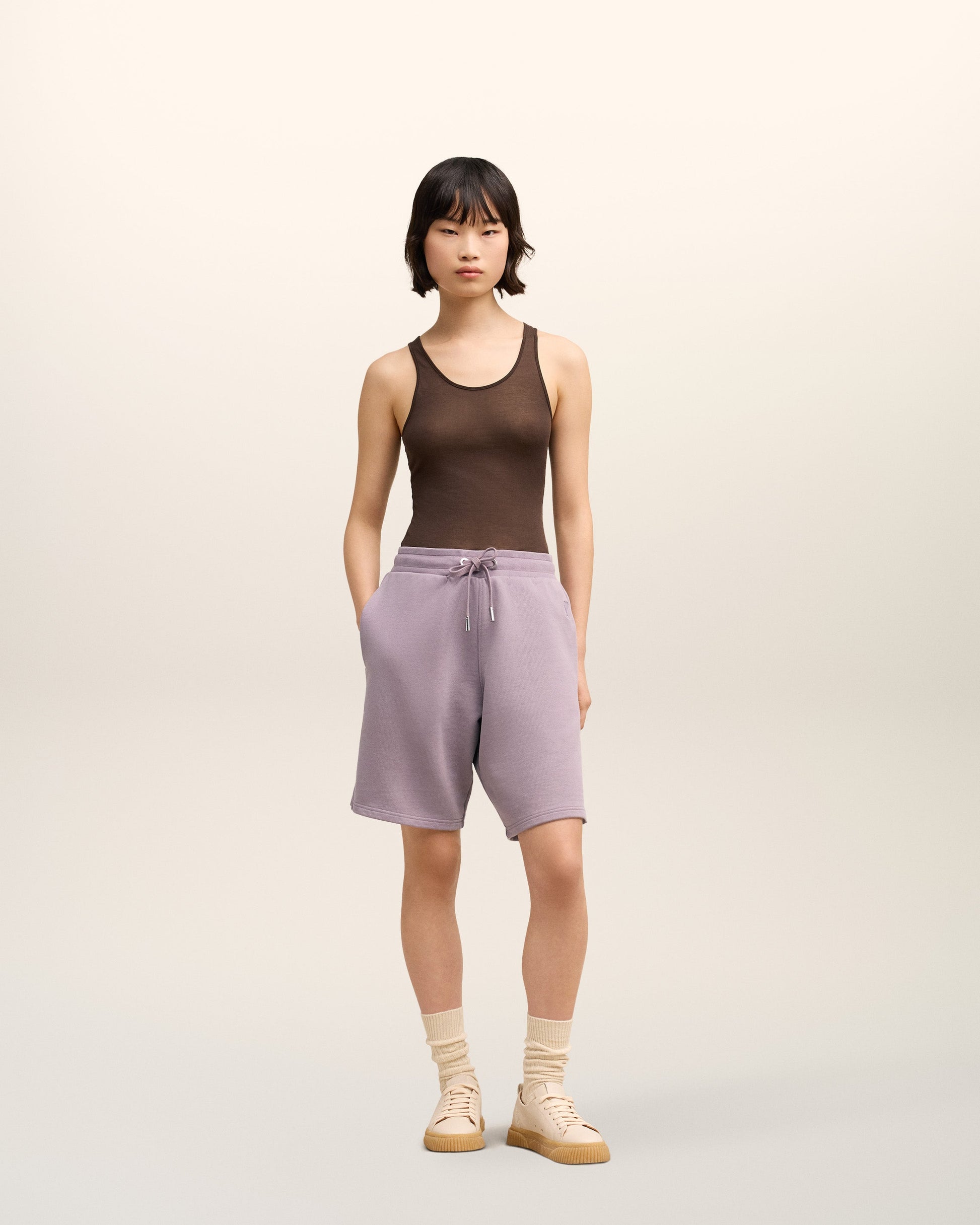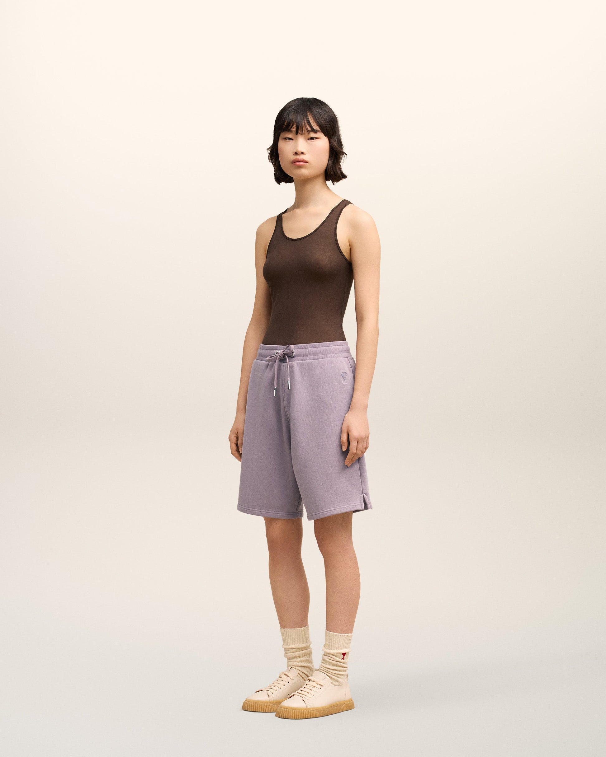 Ami de Coeur short in heavy loopback organic cotton fleece. Boxy fit Unisex product 27 cm bottom leg width (XS size) 29 cm bottom leg width (M size) Tonal Ami de Coeur embroidery Side pockets External waist drawstring Tonal color metal ends and "ami" engraved eyelets Garment dye style with a wash effect Made in Portugal (with love) REF : USO640.JE0091.504