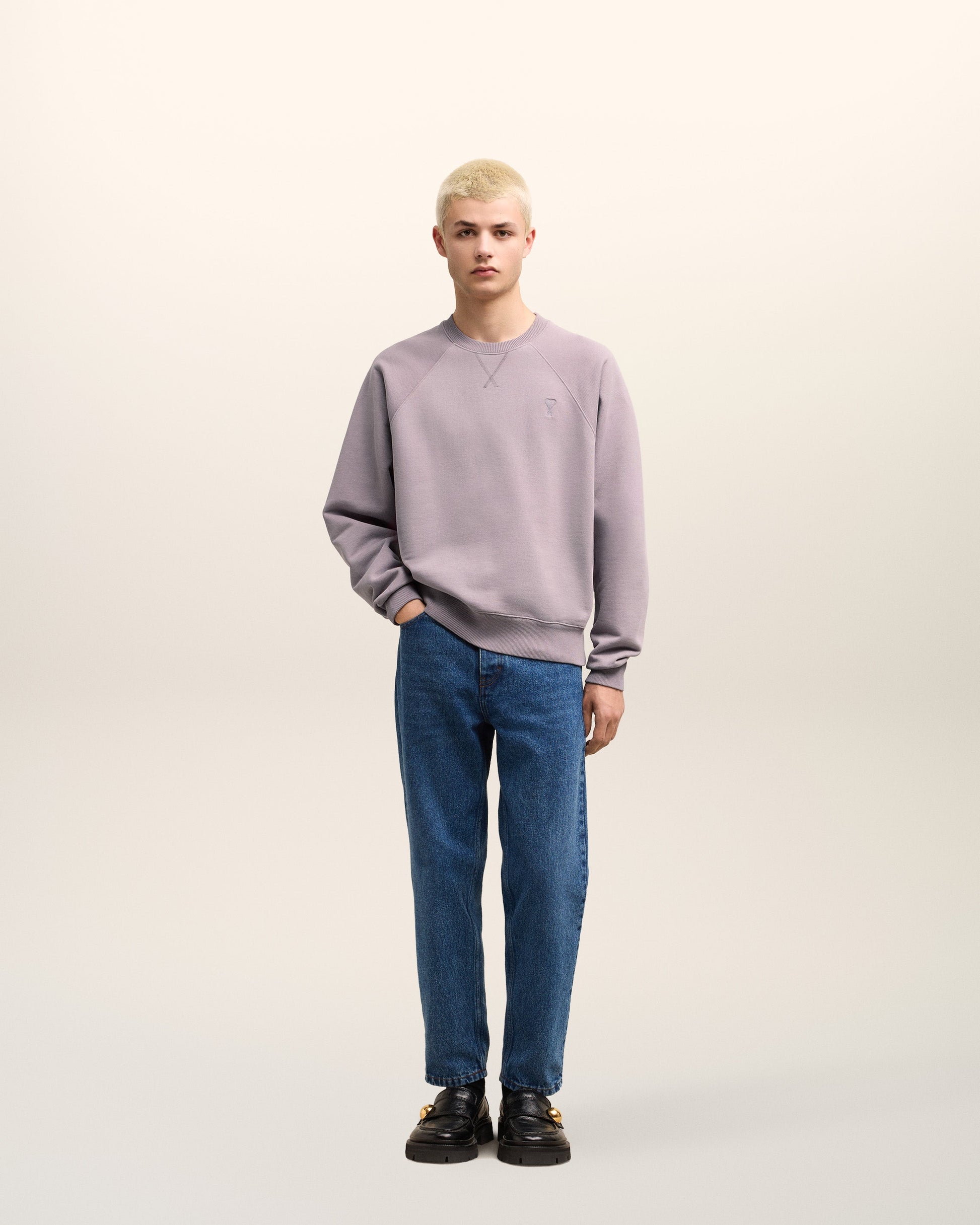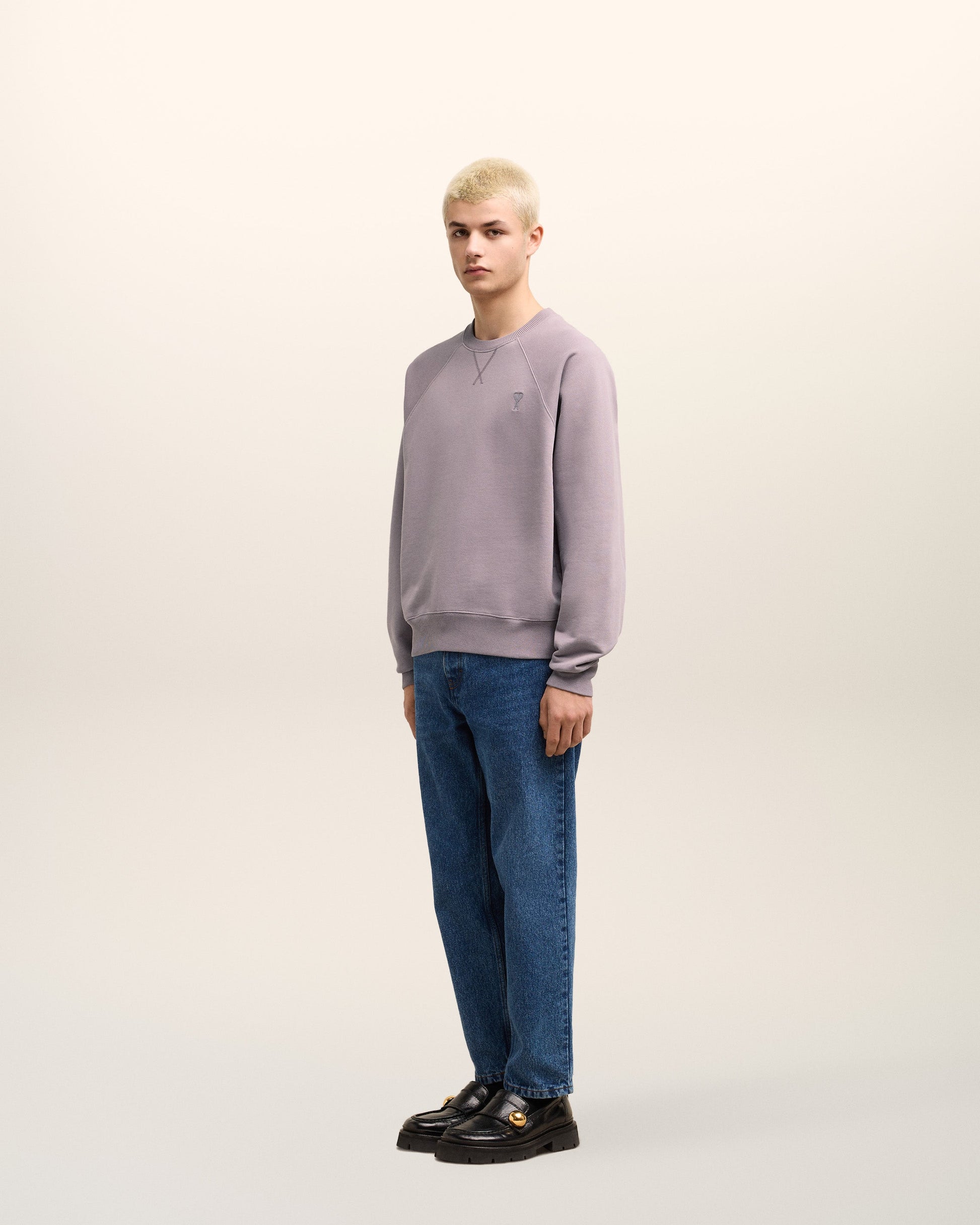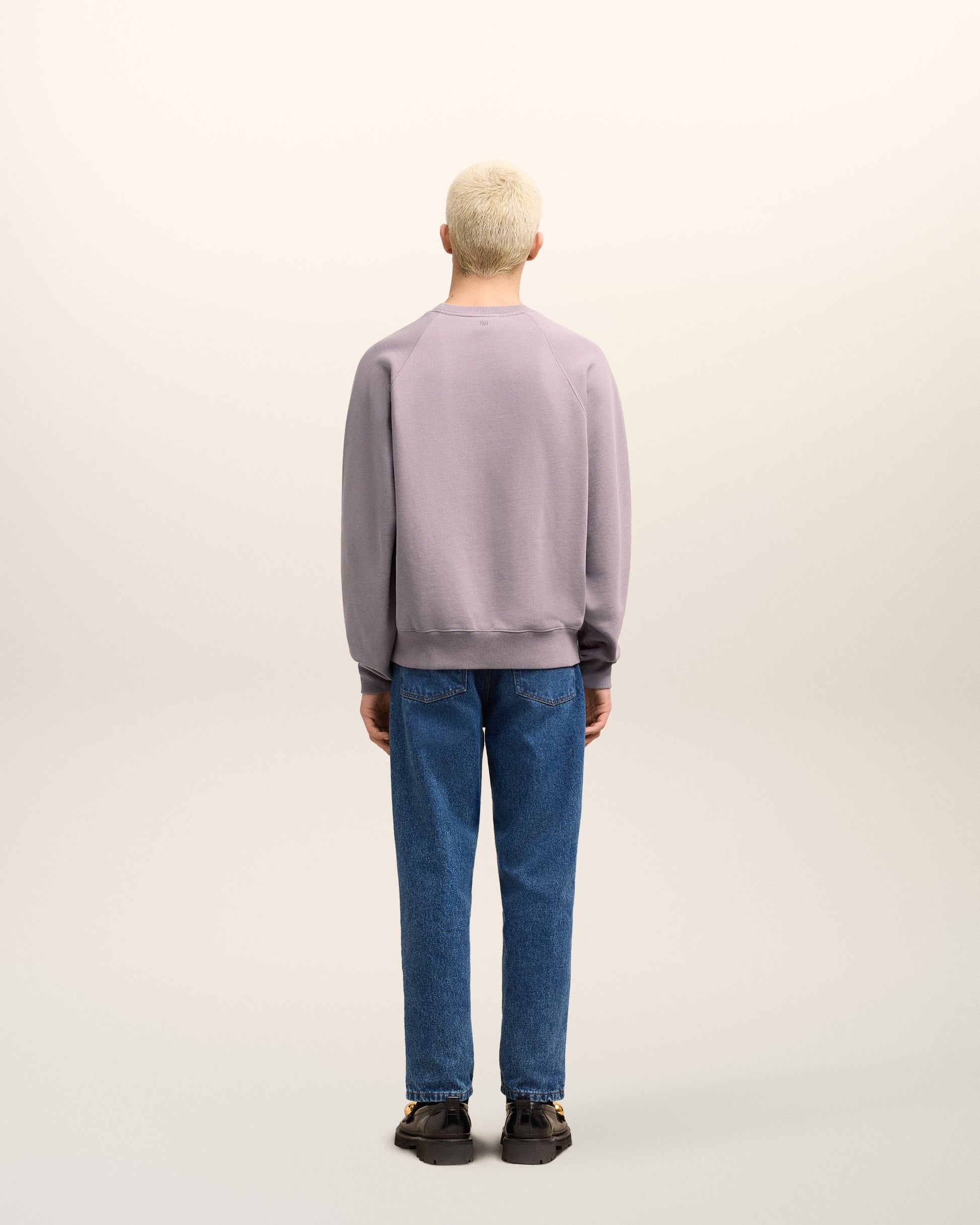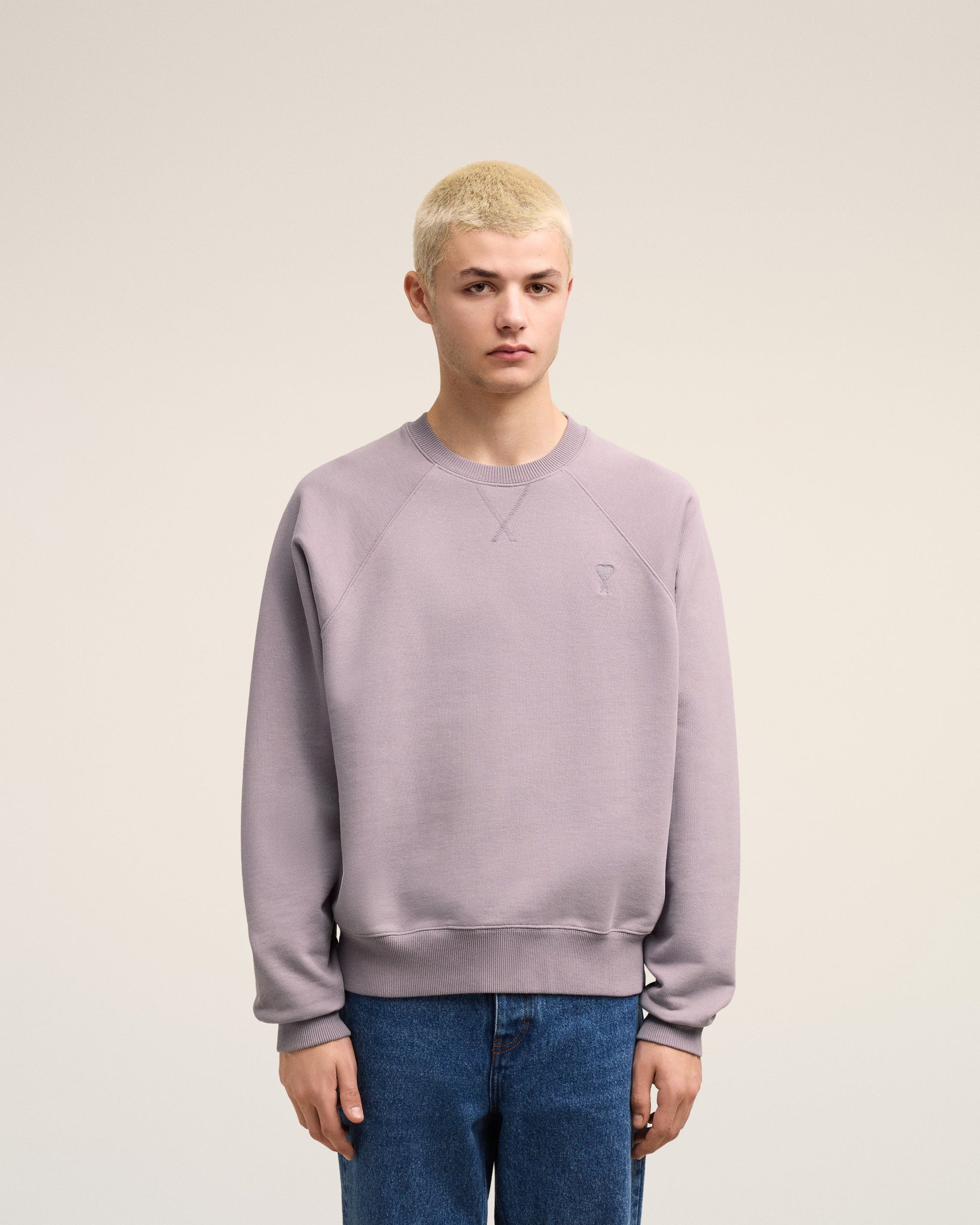 Sweatshirt in heavy loopback organic cotton fleece. Boxy fit Unisex product 61 cm center back length (XS size) 65 cm center back length (M size) Tonal Ami de Coeur chest embroidery Tonal "AMI" embroidery under back neckline Raglan sleeves Garment dye style with a wash effect Made in Portugal (with love) REF : USW040.JE0091.504