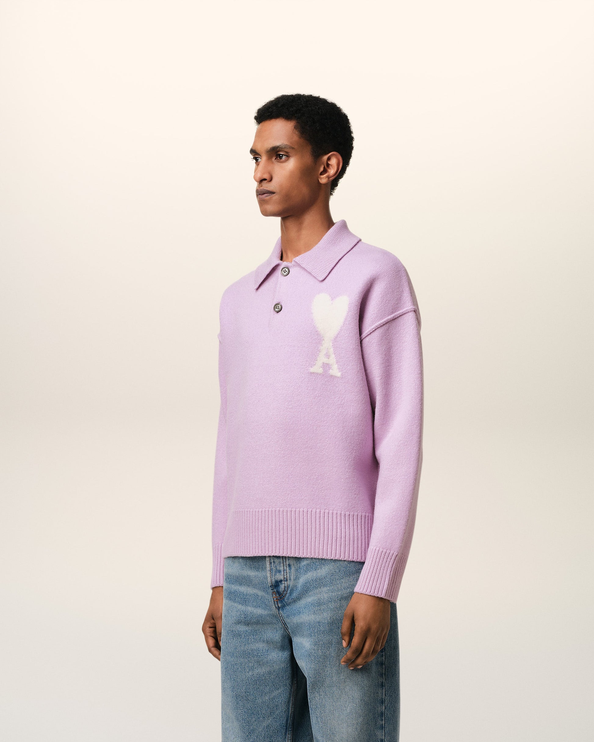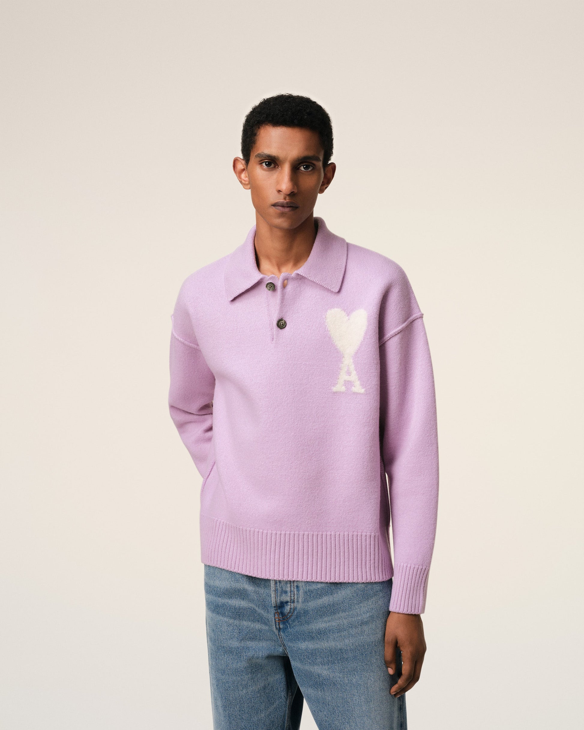Polo in felted merino wool. Unisex product Jersey stitch Textured intarsia-knitted off white Ami de Coeur on the chest Inside out seams 64 cm center back length (size M) 58 cm center back length (size XS) Made in Portugal (with love) REF: UPL390.KN0090.505