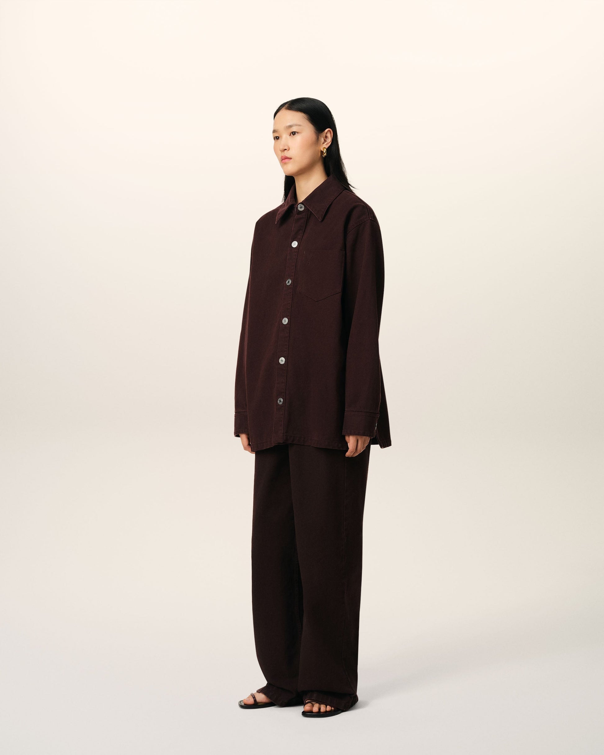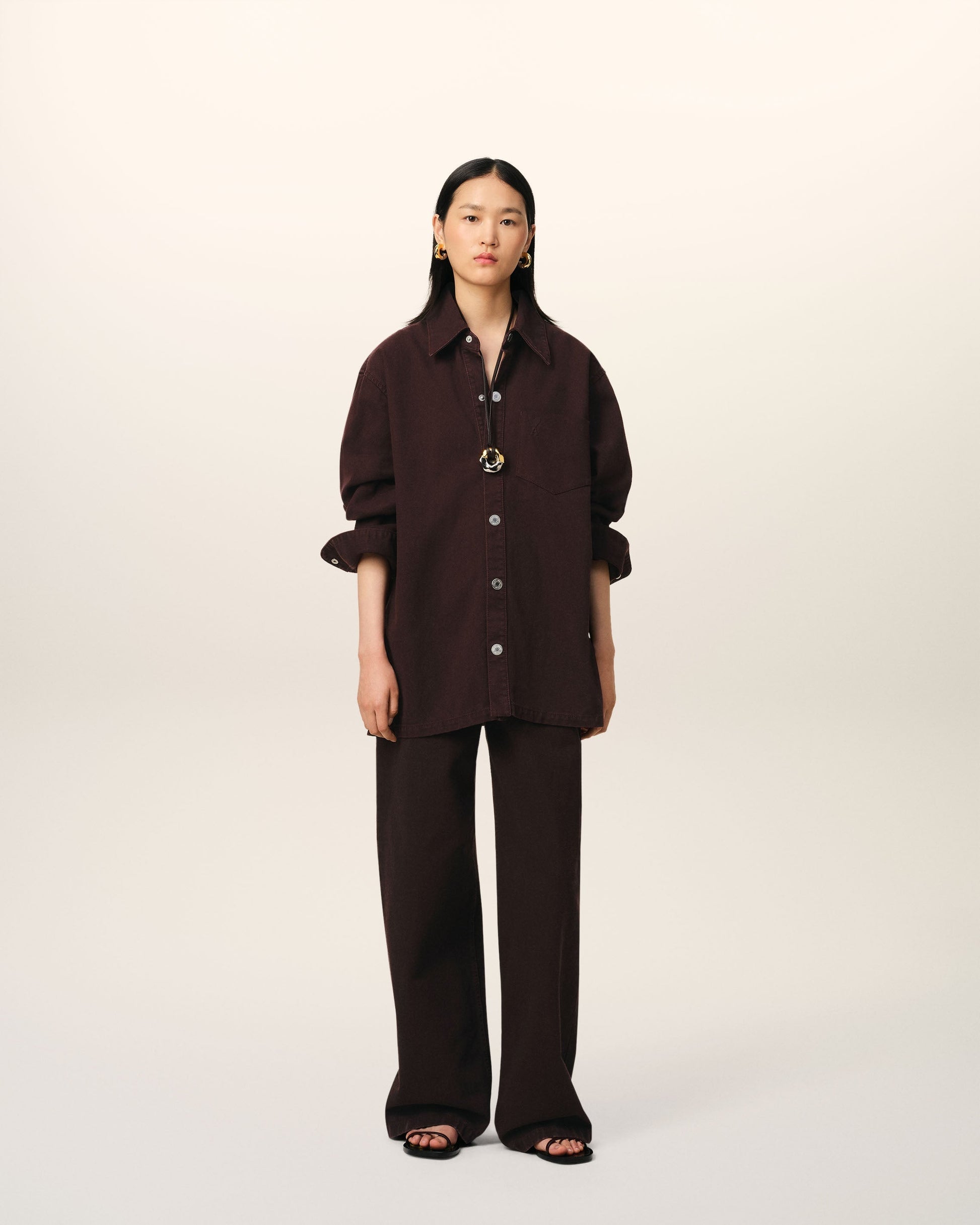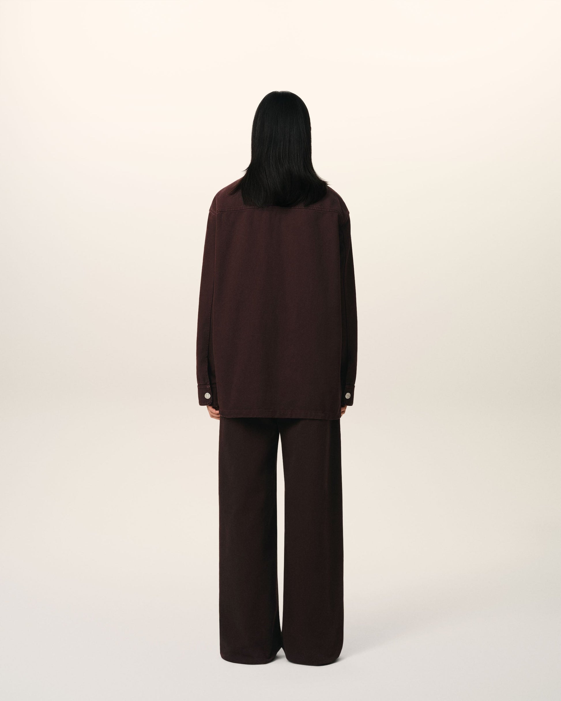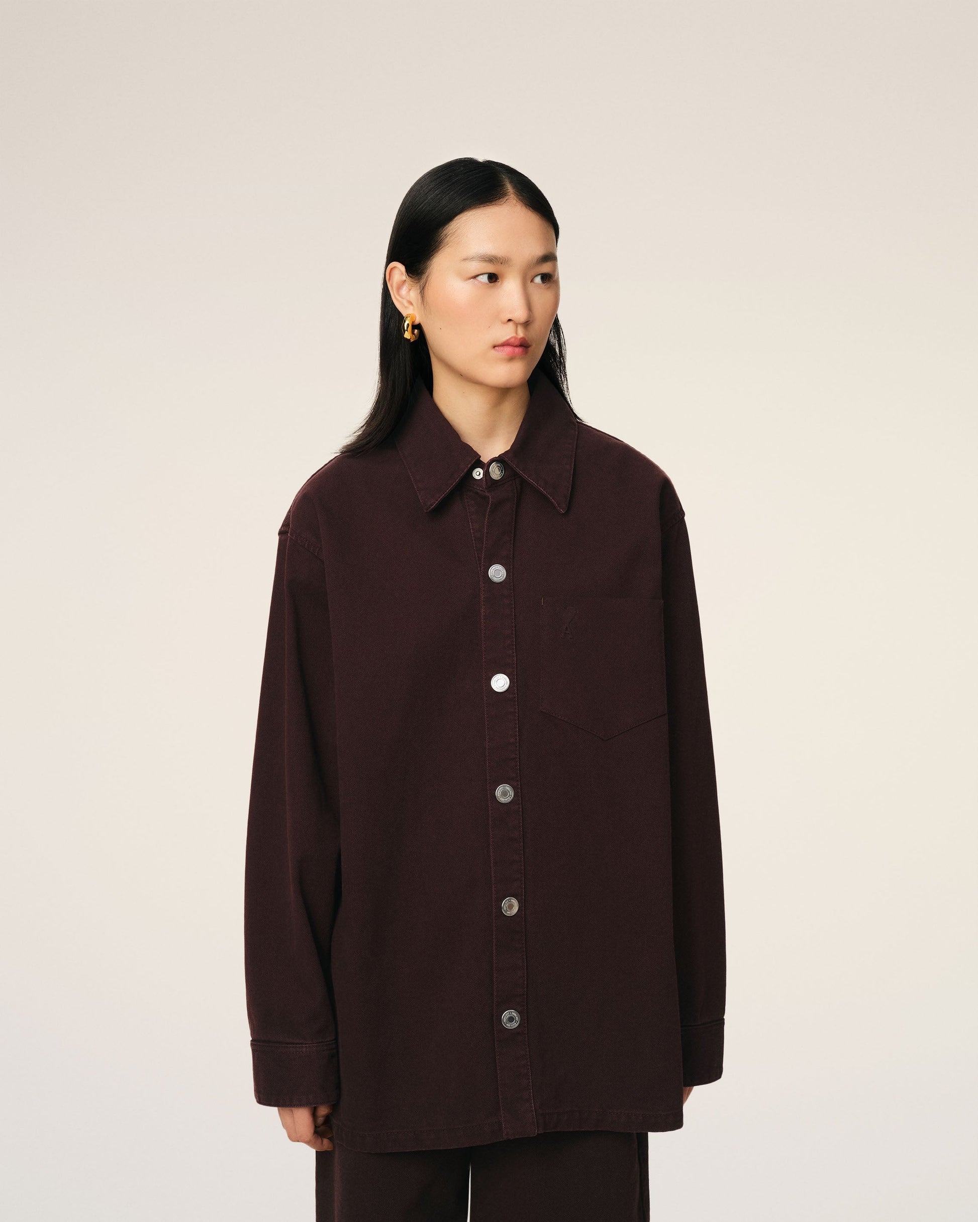 Overshirt in colored cotton twill. Oversize fit 77 cm center back length (size M) Embossed Ami de Coeur on chest pocket Denim snap buttons in nickel color Tonal topstitches Made in Tunisia (with love) REF: FJK273.DE0034.633