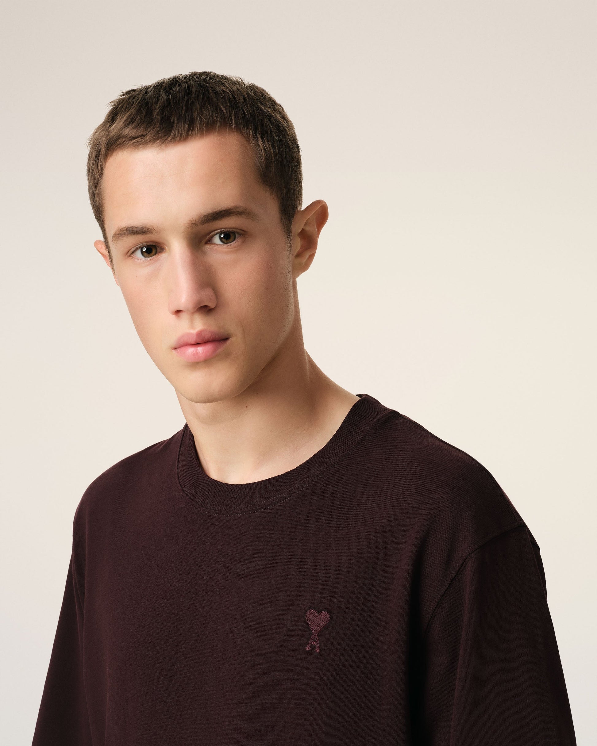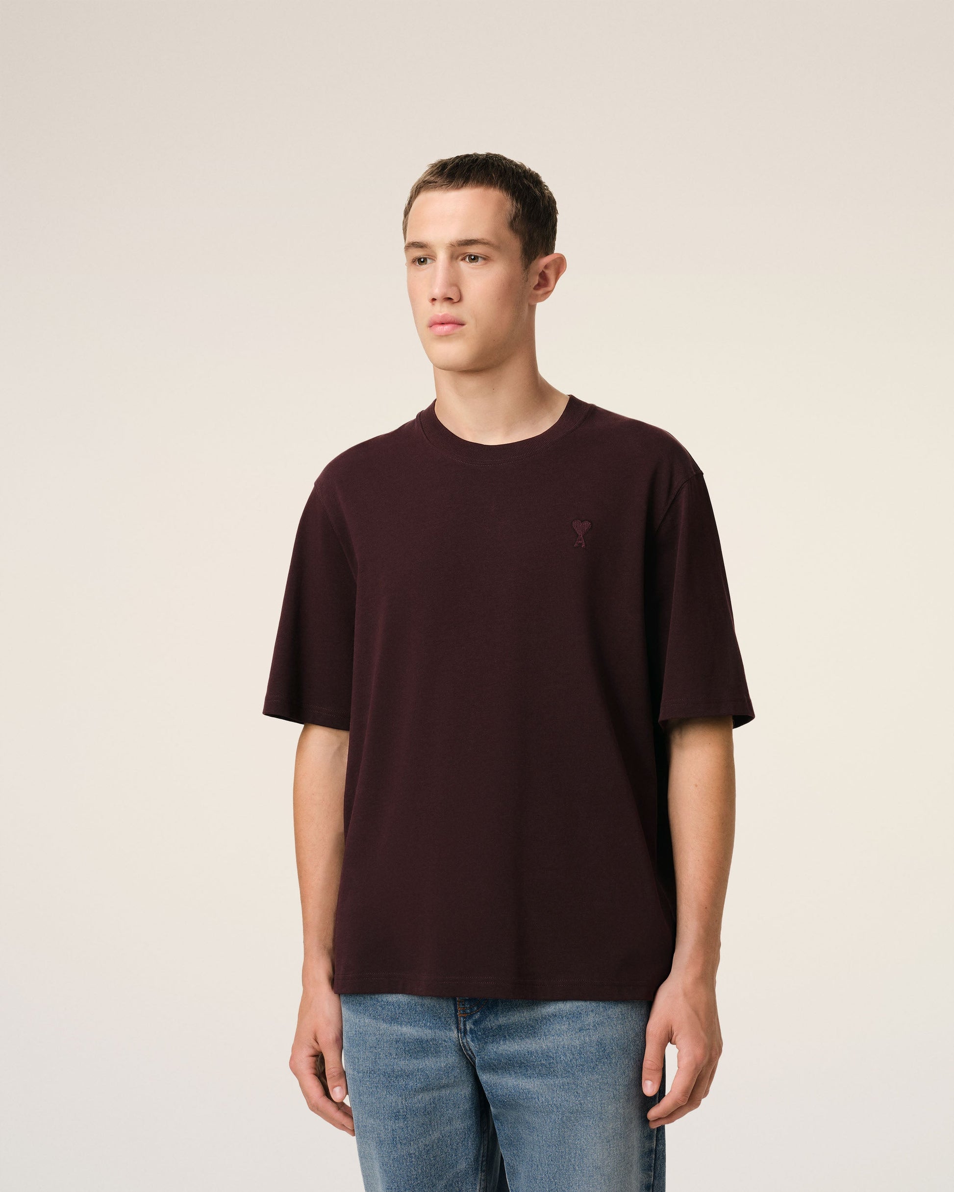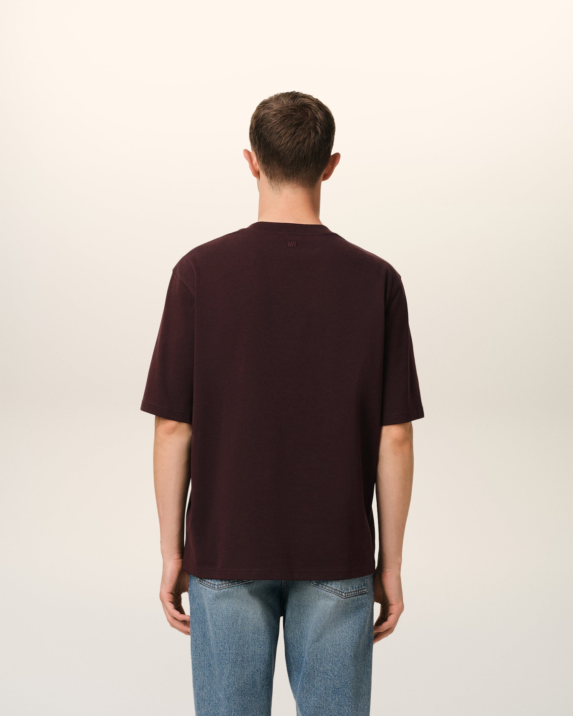 Ami de Coeur t-shirt in organic cotton jersey. Boxy fit Unisex product 66 cm center back length (size XS) 70 cm center back length (size M) Tonal Ami de Coeur chest embroidery Tonal "AMI" embroidery under back neckline Made in Portugal (with love) REF: UTS074.726.633