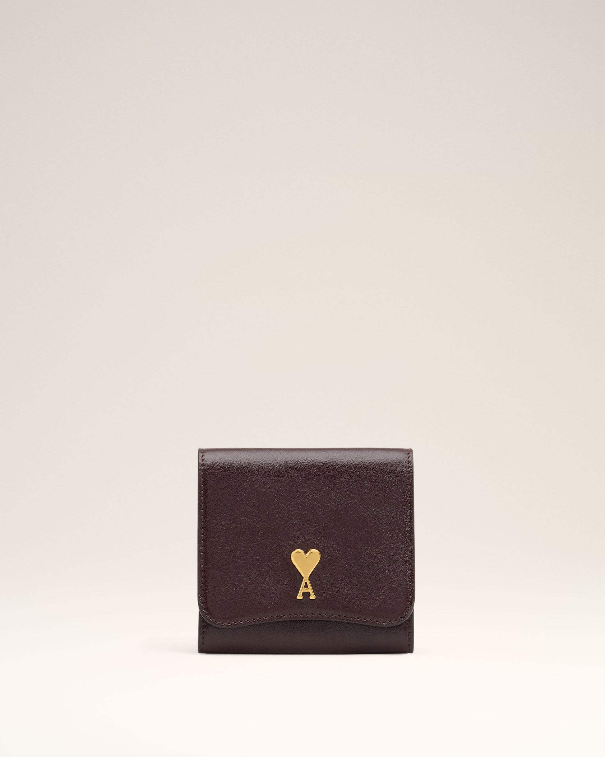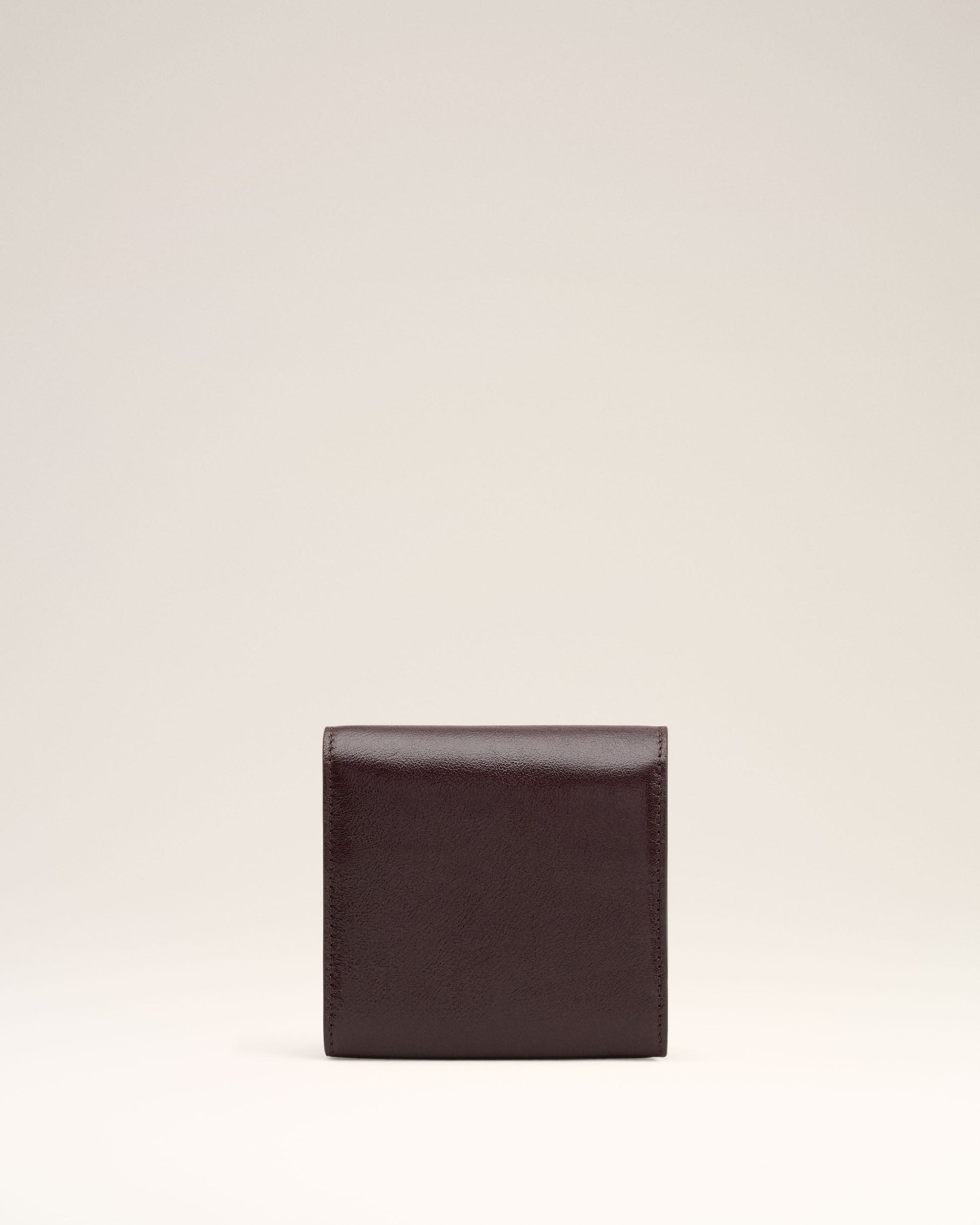 Paris Paris compact wallet in vegetable-tanned shiny textured leather. Natural patina of the leather Cotton canvas lining Ami de Coeur stud One central zipped coin pocket, six card compartments and one front compartment Snap button fastening Metal hardware in vibrated brass color Size: 11x10 cm Made in Morocco (with love) REF: USL203.AL0051.633