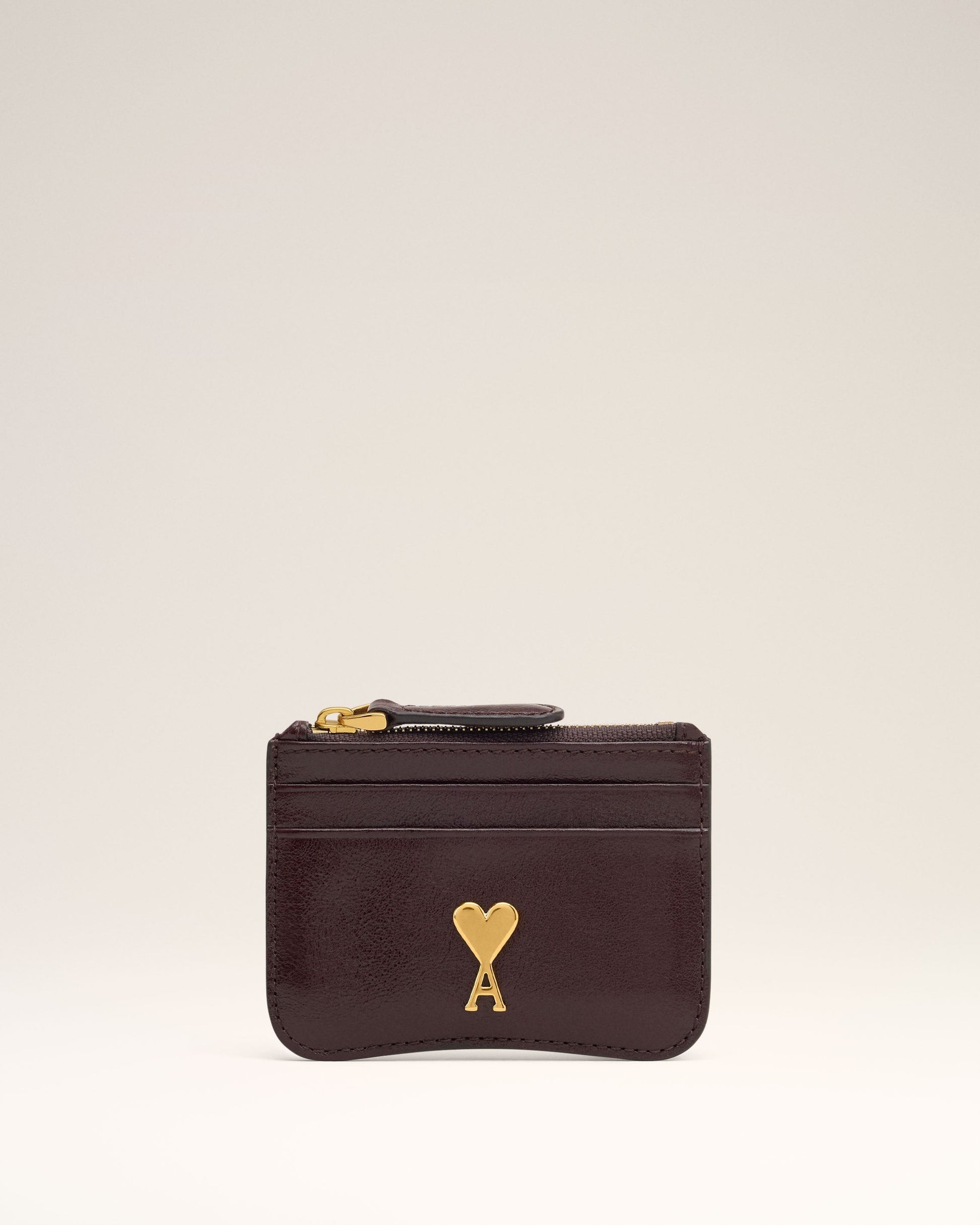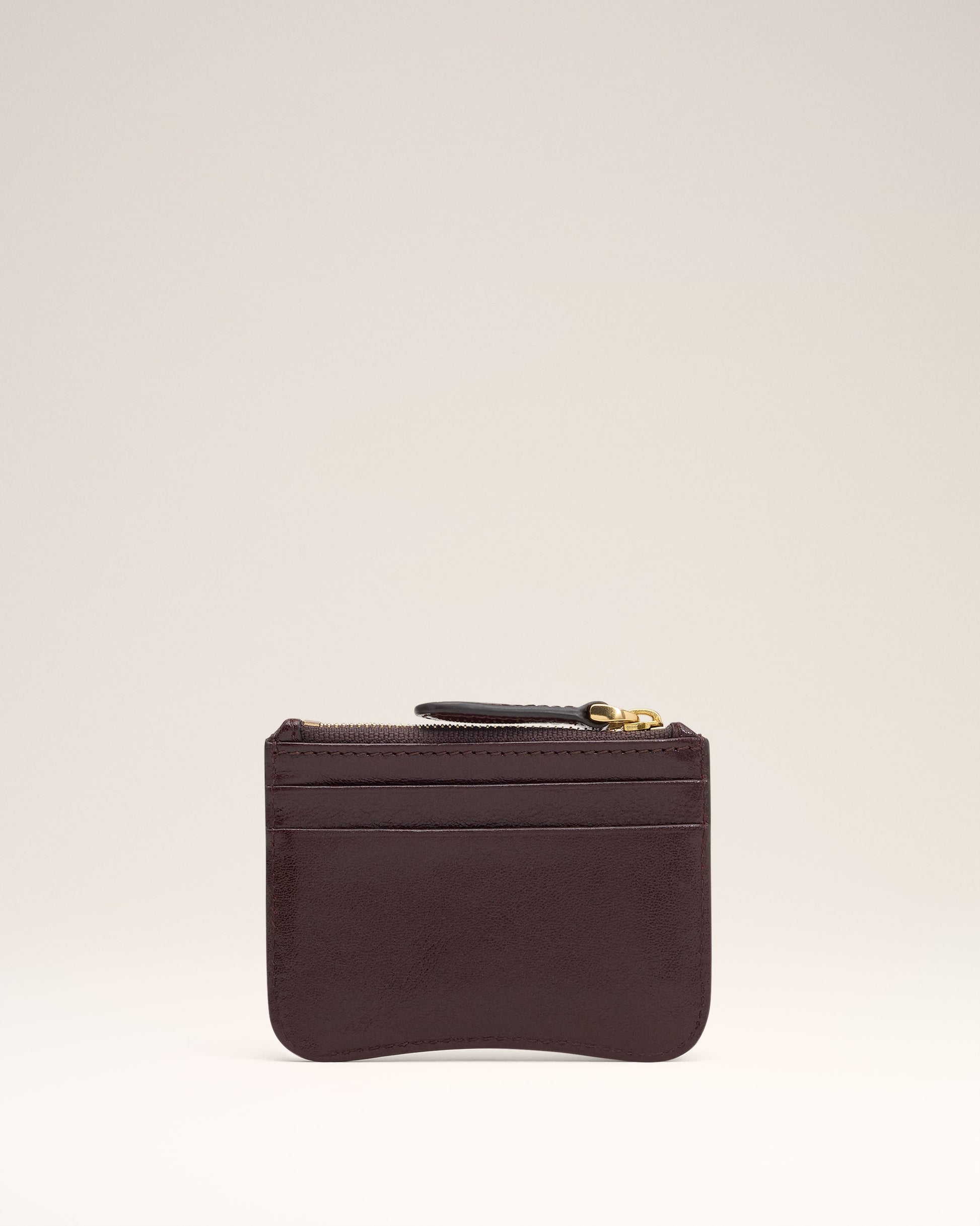 Paris Paris zipped card holder in vegetable-tanned shiny textured leather. Natural patina of the leather Cotton canvas lining Ami de Coeur rivet Two card compartments on each side One zipped coin pocket Metal hardware in vibrated brass color Size: 10.5x7.5 cm Made in Morocco (with love) REF: USL105.AL0051.633