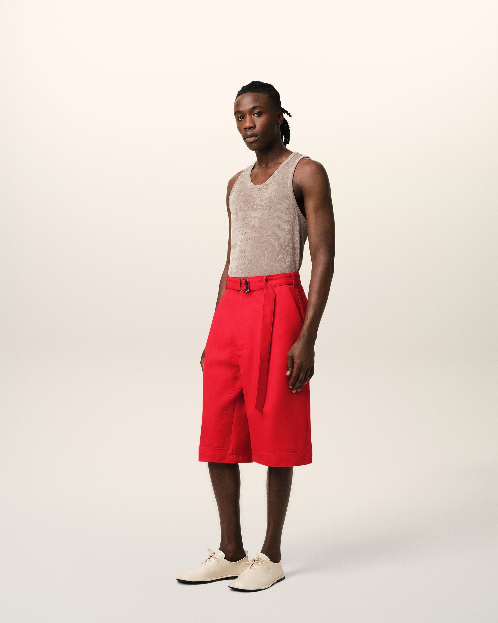 Cargo bermuda shorts in fluid wool canvas. 32 cm bottom leg width (size M) Classic waist Wide leg Belt with buckle in gold color Front pleats Horn button Zipped fly Made in Portugal (with love) REF: HSO417.WV0068.632