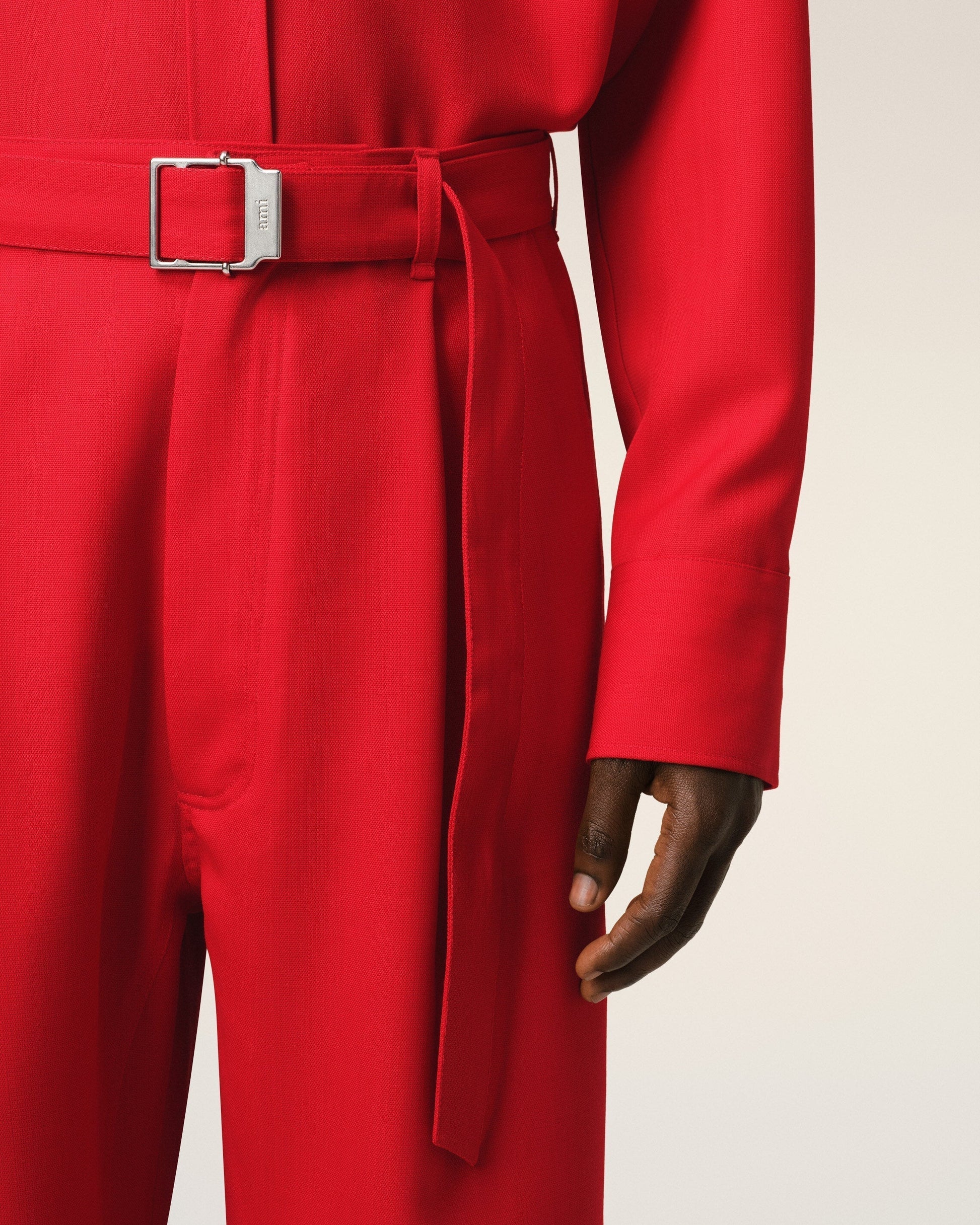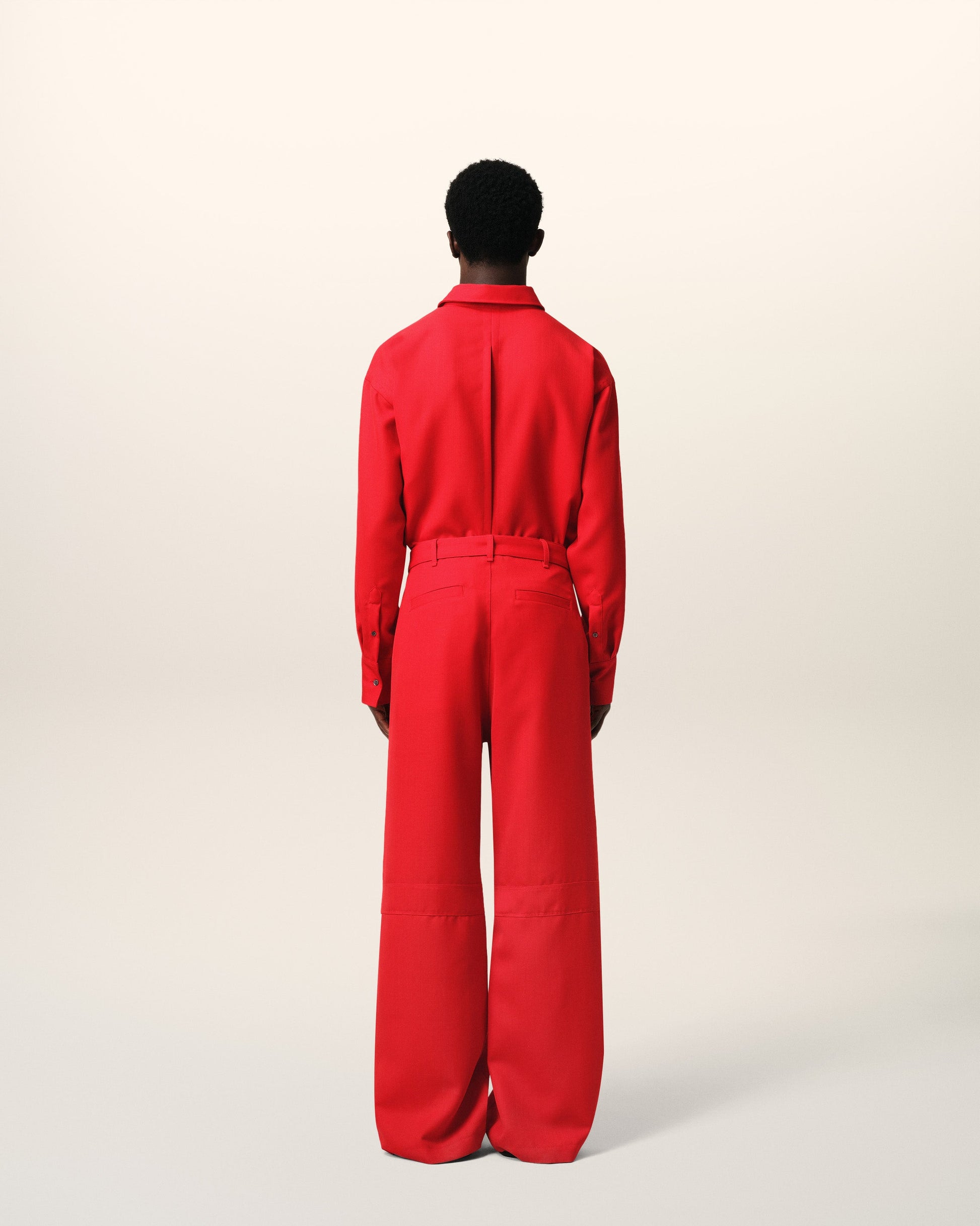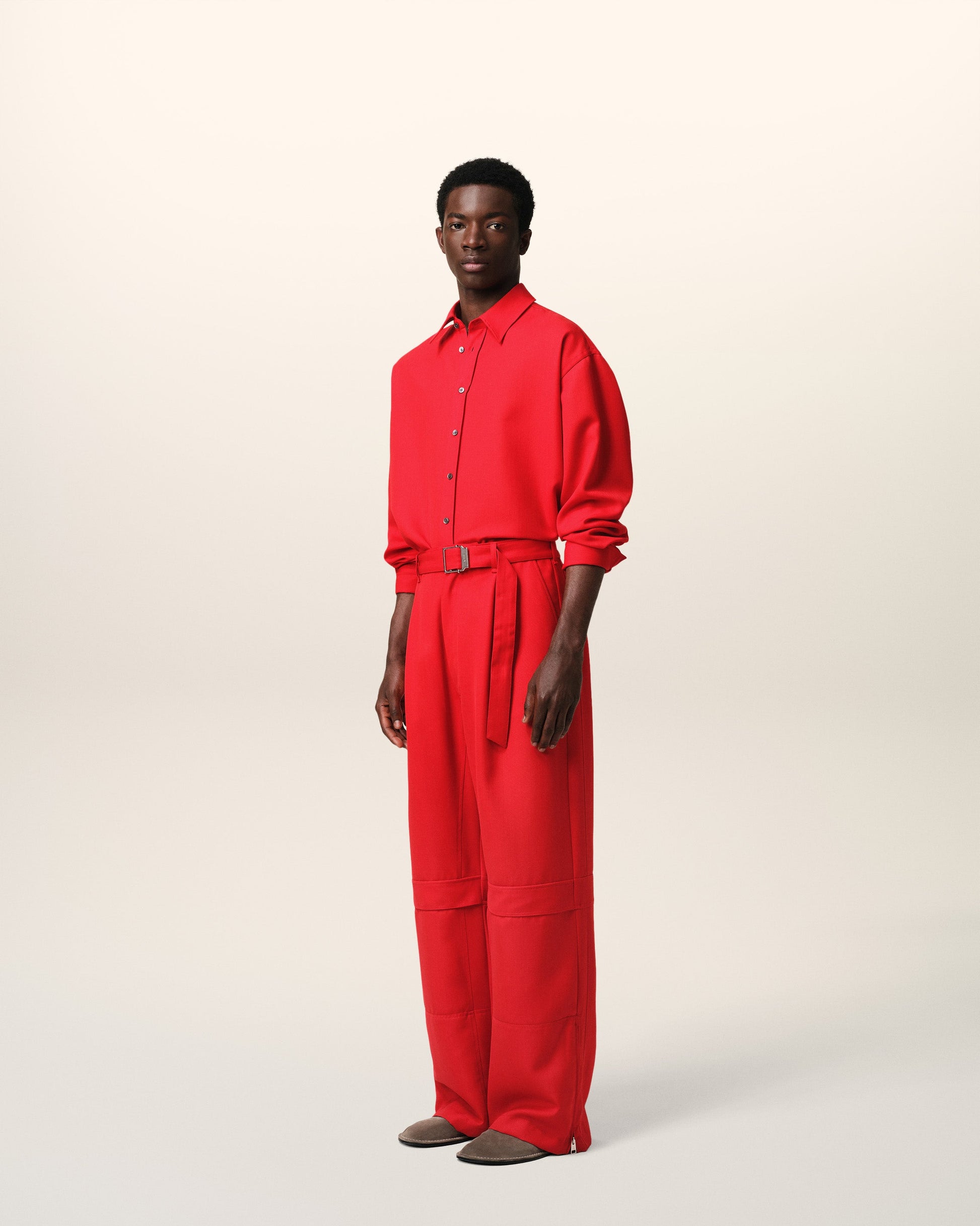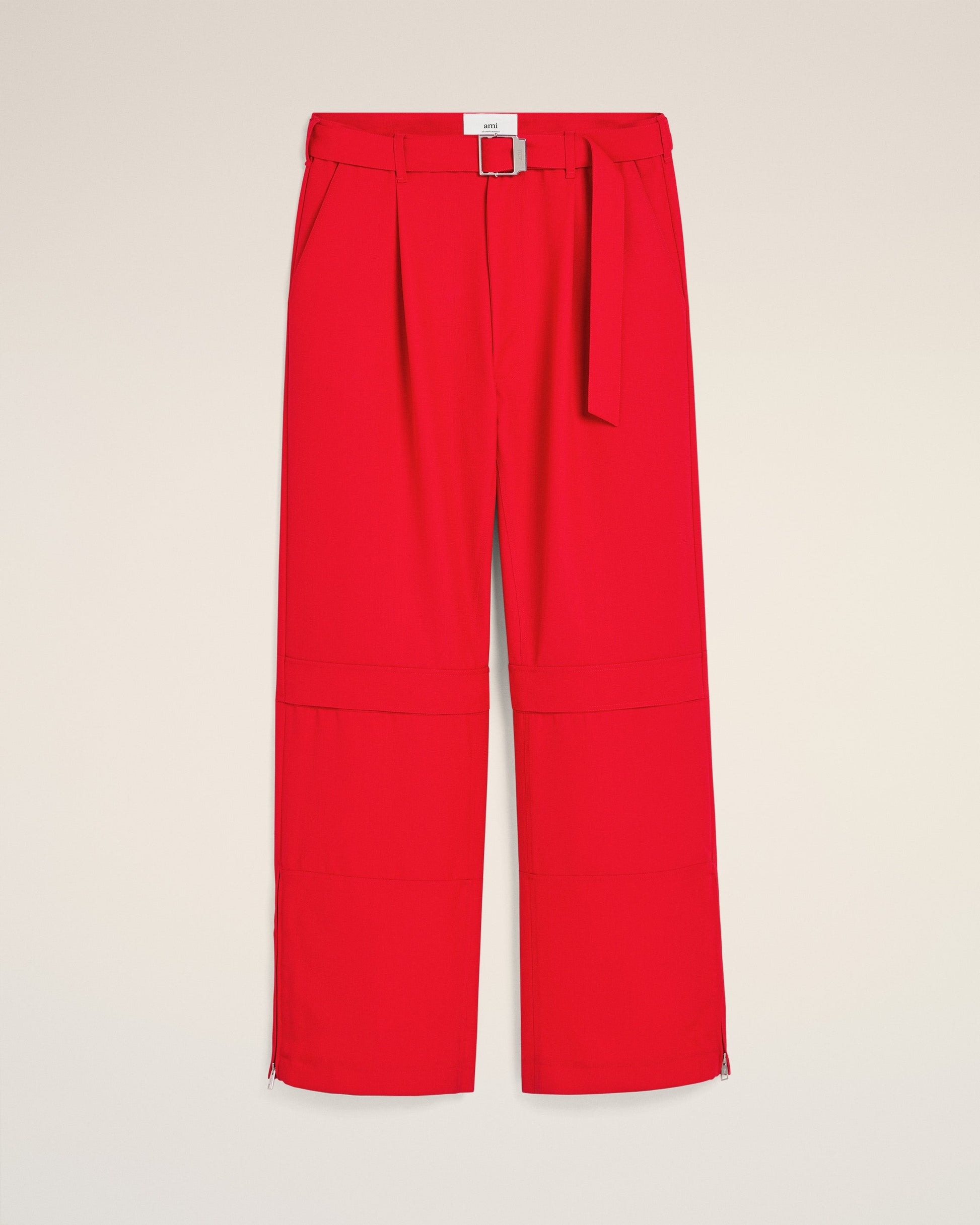 Cargo trousers in fluid wool canvas. 32 cm bottom leg width (size M) Classic waist Wide leg Belt with buckle in gold color Front pleats Zipped bottom legs Decorative flap pockets Horn button Zipped fly Made in Portugal (with love) REF: HTR307.WV0068.632