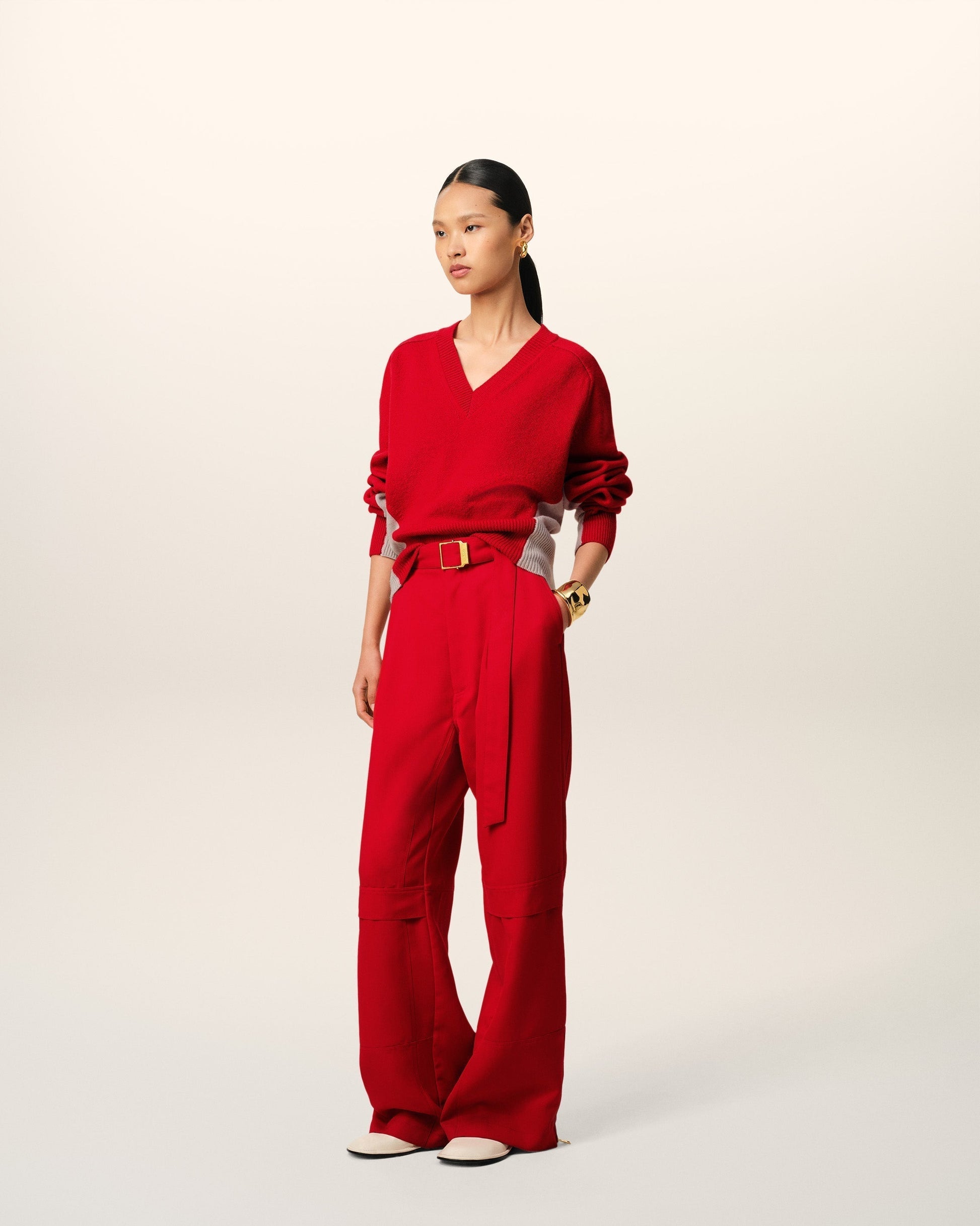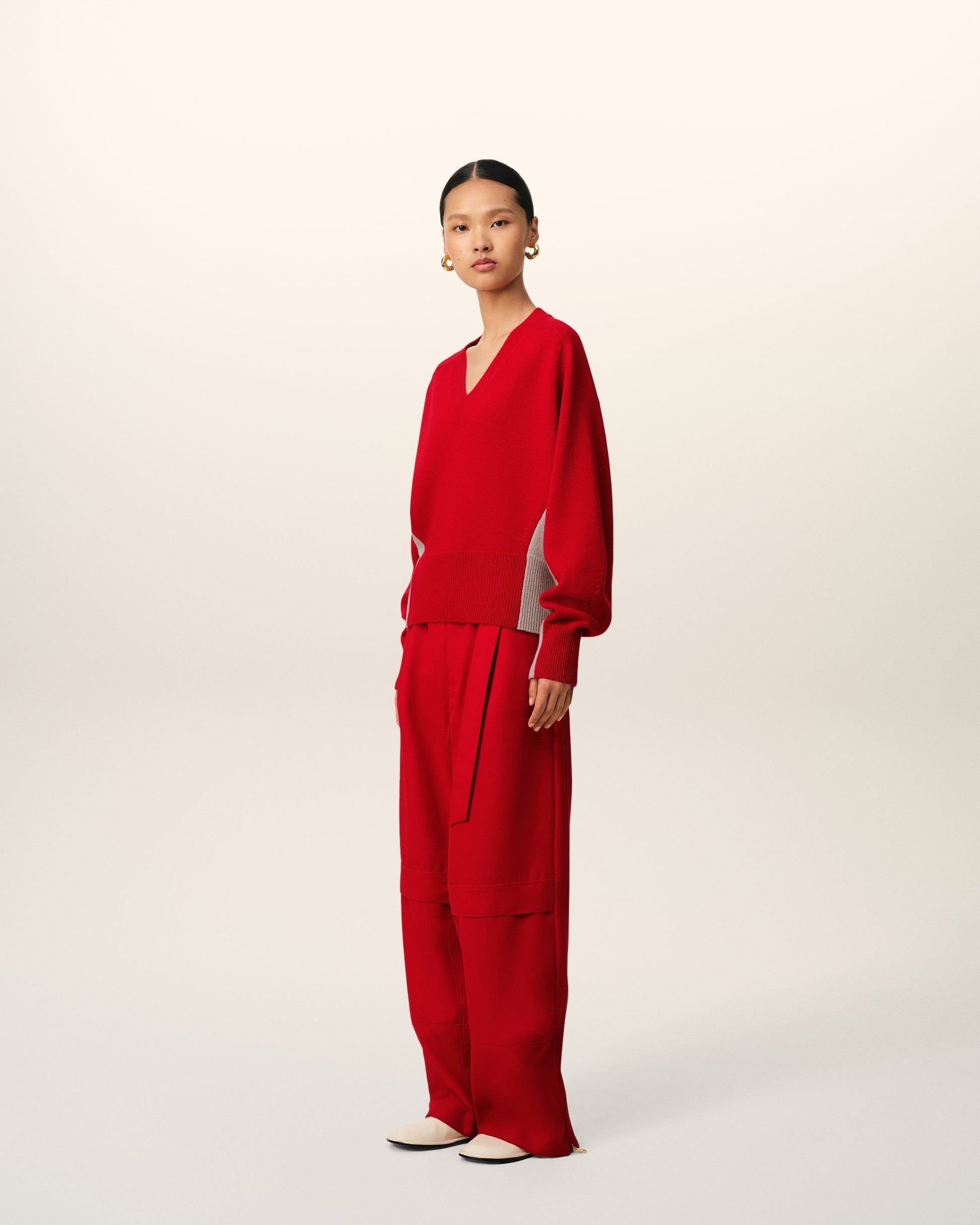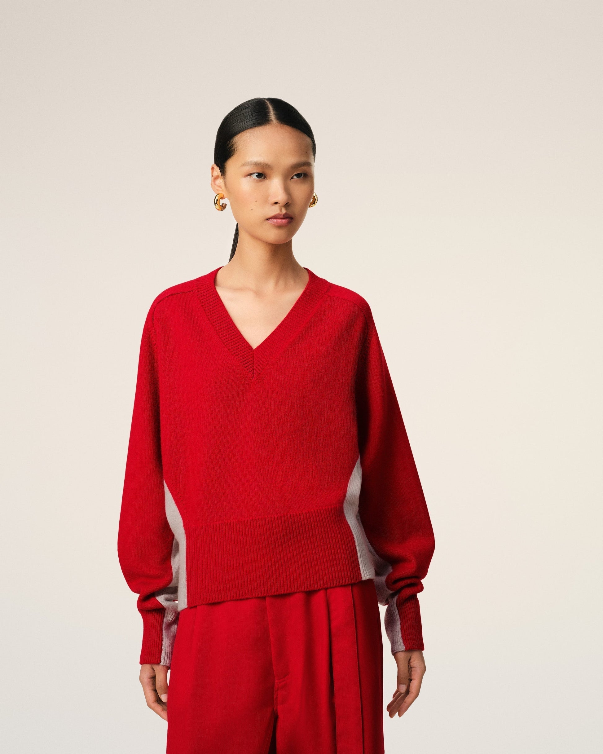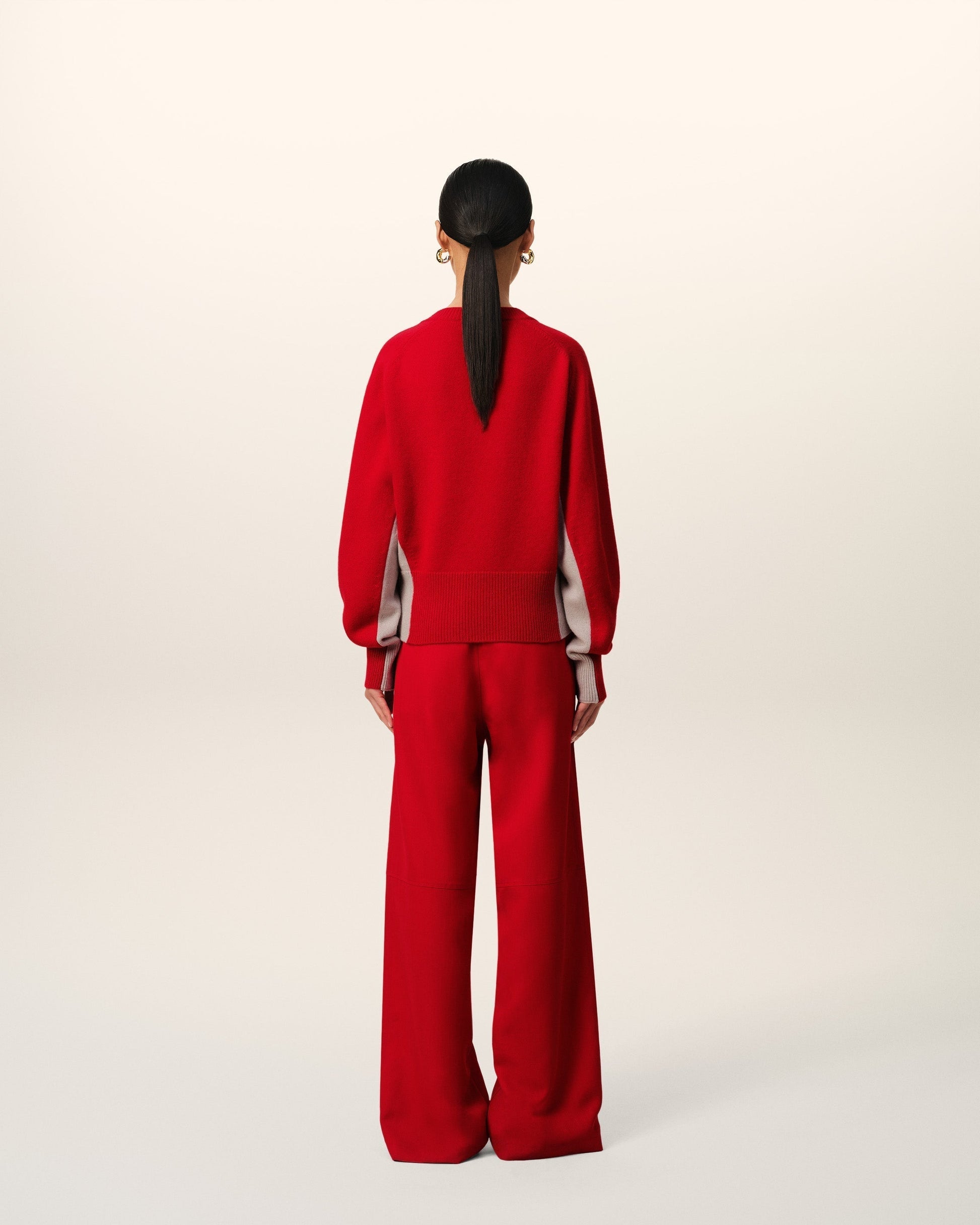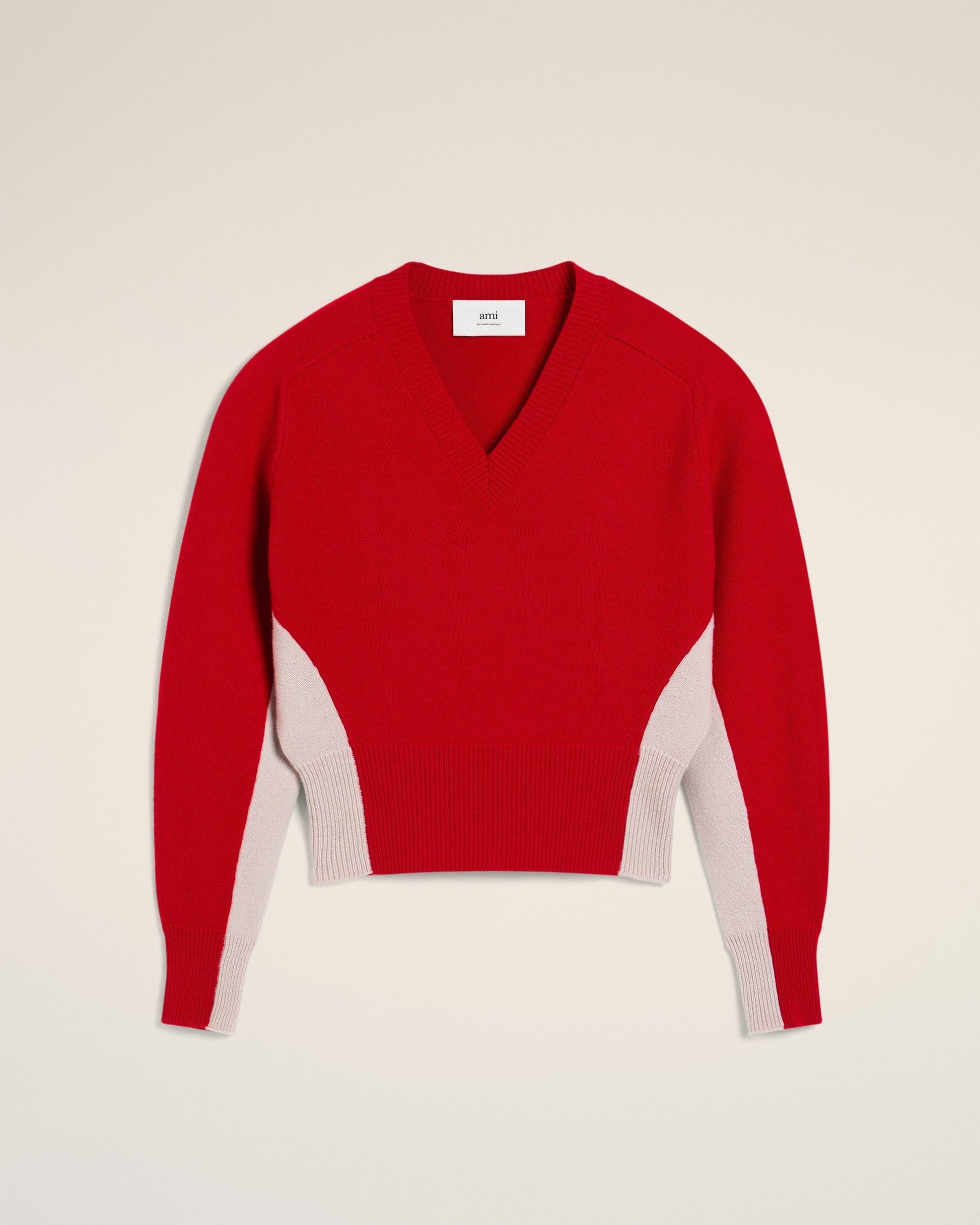 Sweater in bicolor wool and cashmere knit. Jersey stitch Tonal Ami de Coeur embossed embroidery on the back under collar 58 cm center back length (size S) Made in Italy (with love) REF: FKS277.KN0077.6324