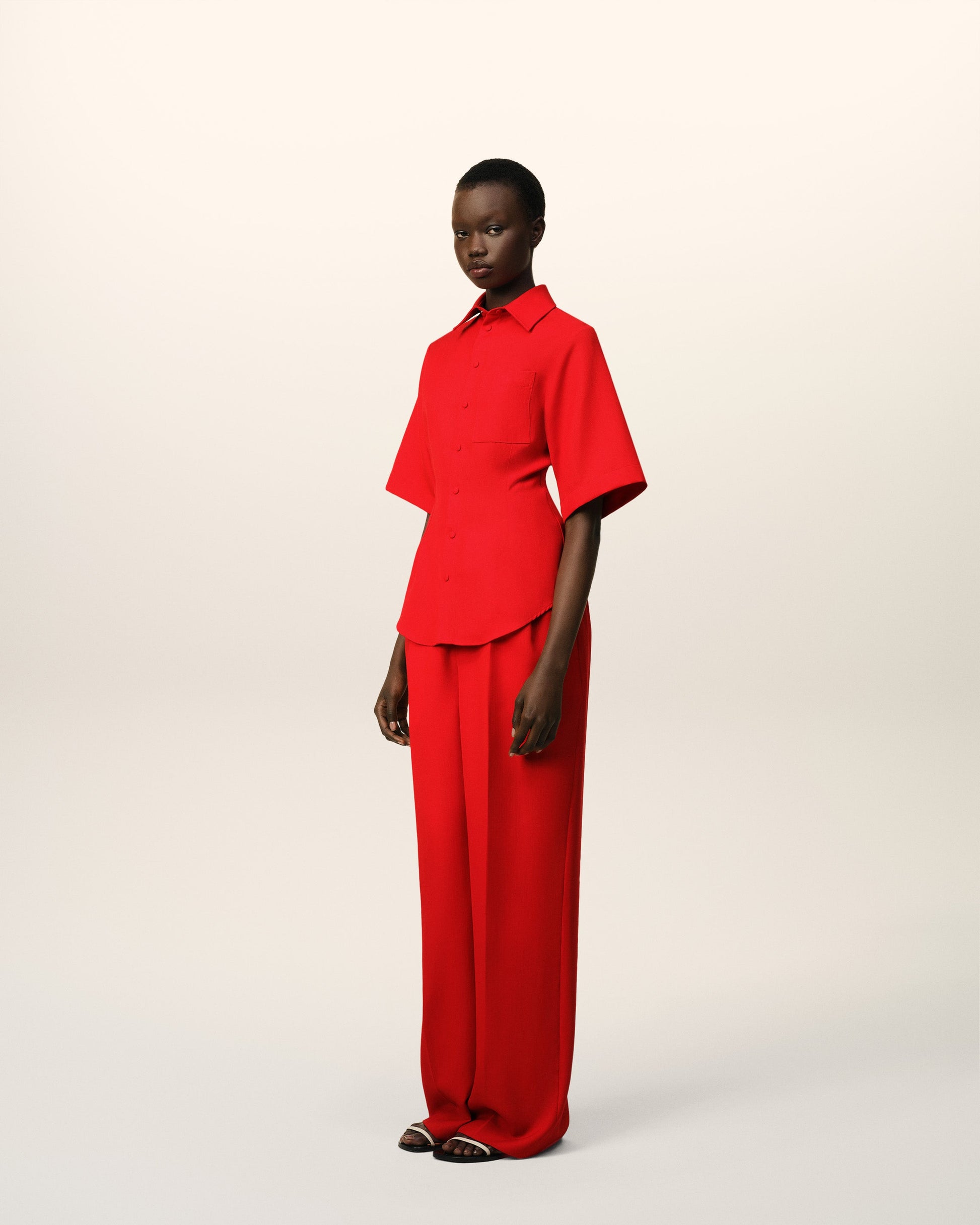 Red Wool Short Sleeves Shirt