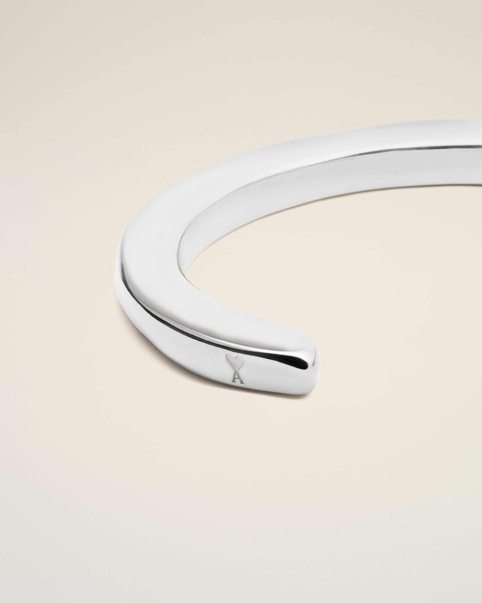 Small size hammered cuff in palladium-plated brass. Engraved Ami de Coeur Size 1 : 4 cm x 6 cm Size 2 : 4.5 cm x 6.5 cm Made in Italy (with love) REF: UJW016.361.900