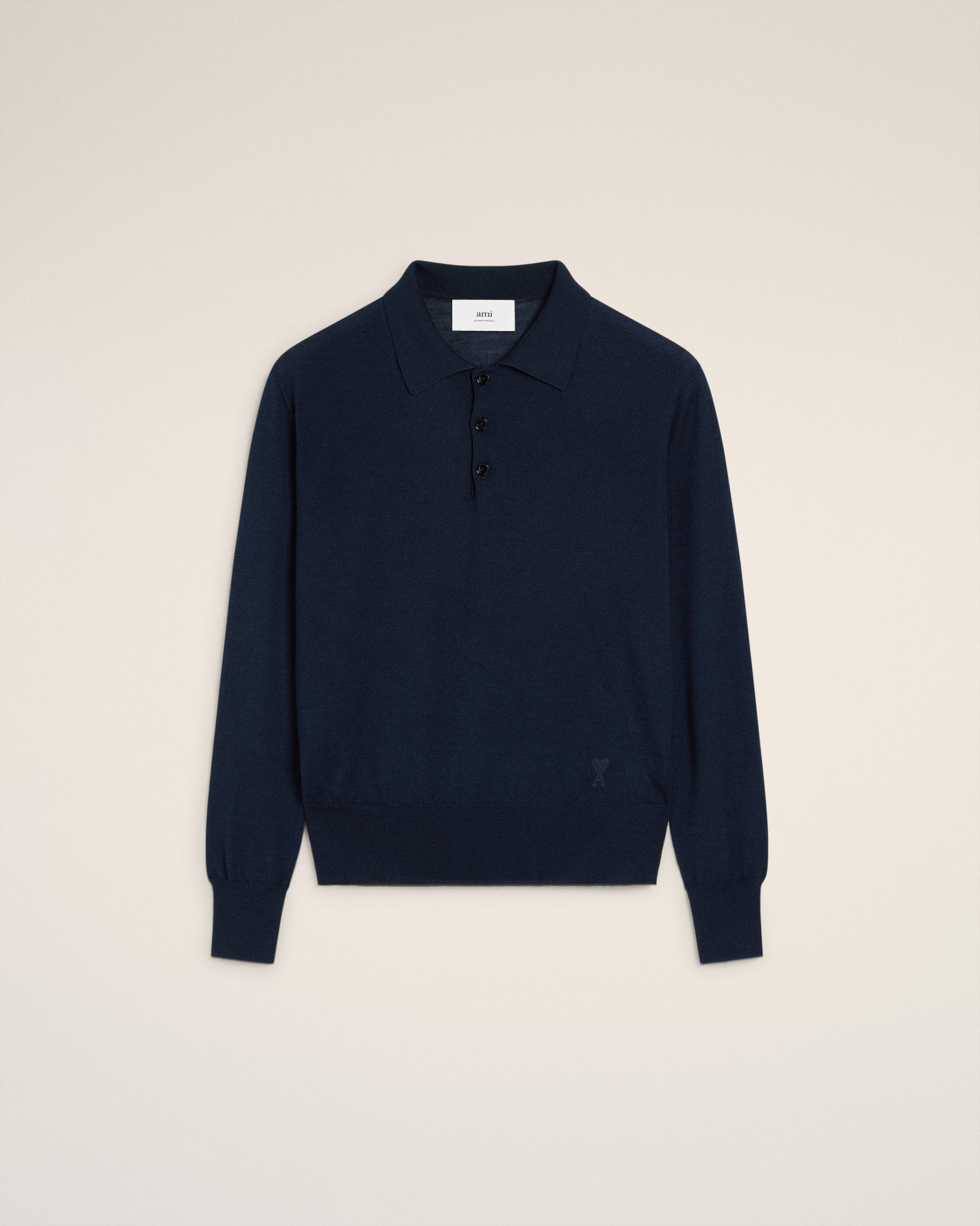 Polo in extrafine wool silk. Jersey stitch Tonal Ami de Coeur embroidery on body bottom 64 cm center back length (size M) Made in Italy (with love) REF: HPL366.KN0066.4011