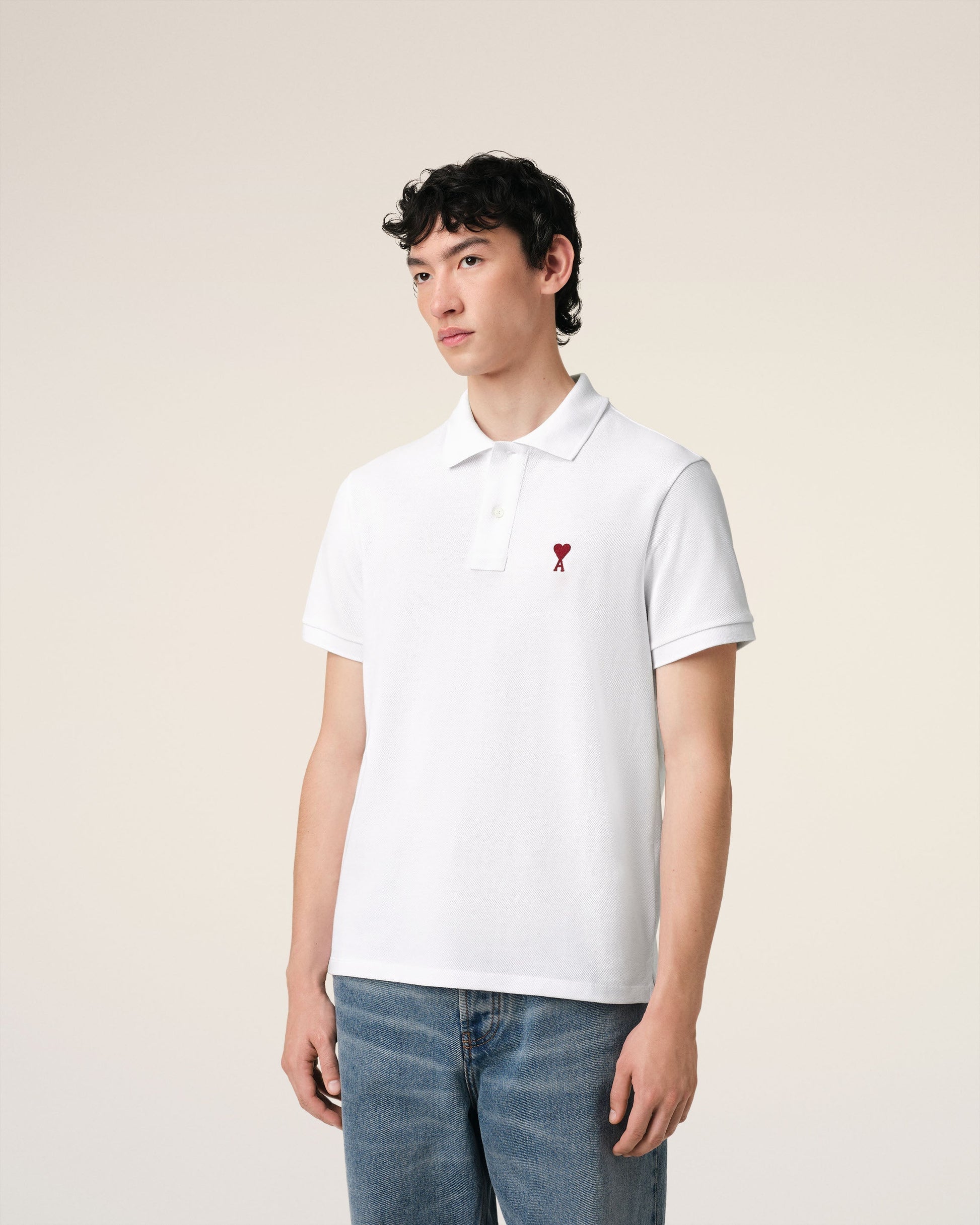 Ami de Coeur polo shirt in organic cotton pique. Unisex product Classic fit Classic collar Short sleeves Red Ami de Coeur chest embroidery Tonal Ami embroidery under back neckline 63,5 cm center back length (size XS) 67,5 cm center back length (size M) Made in Portugal (with love) REF: BFUPL001.760.100